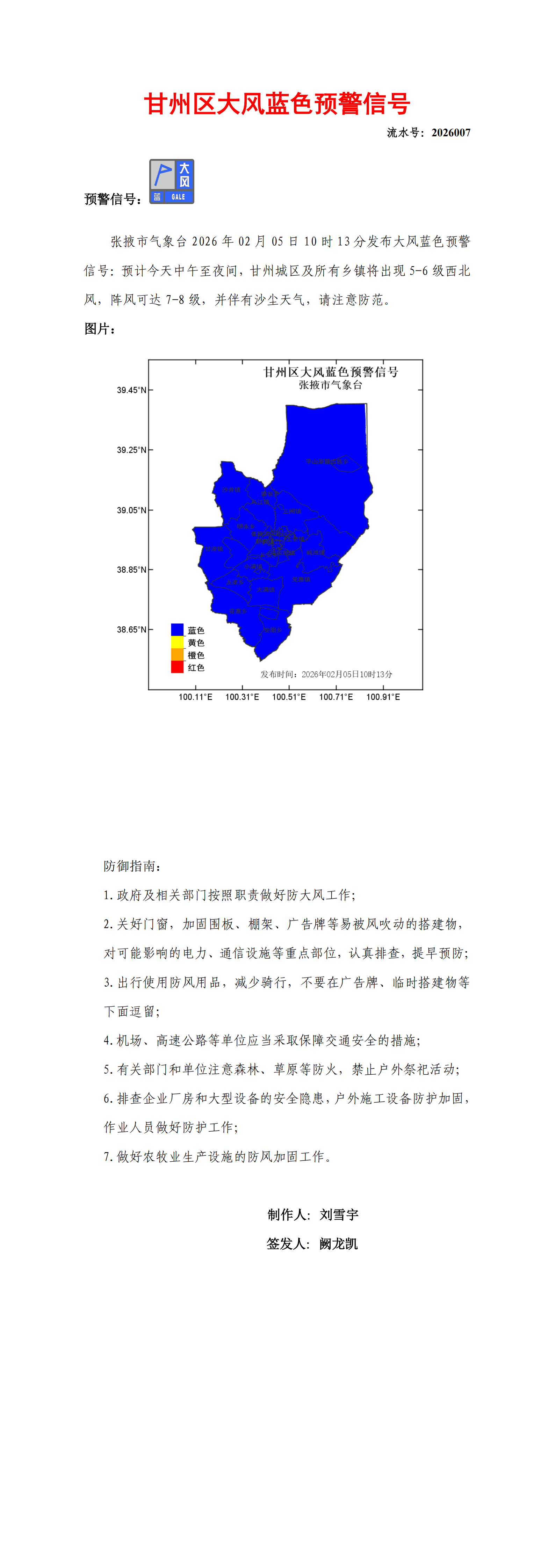甘州区大风蓝色预警信号