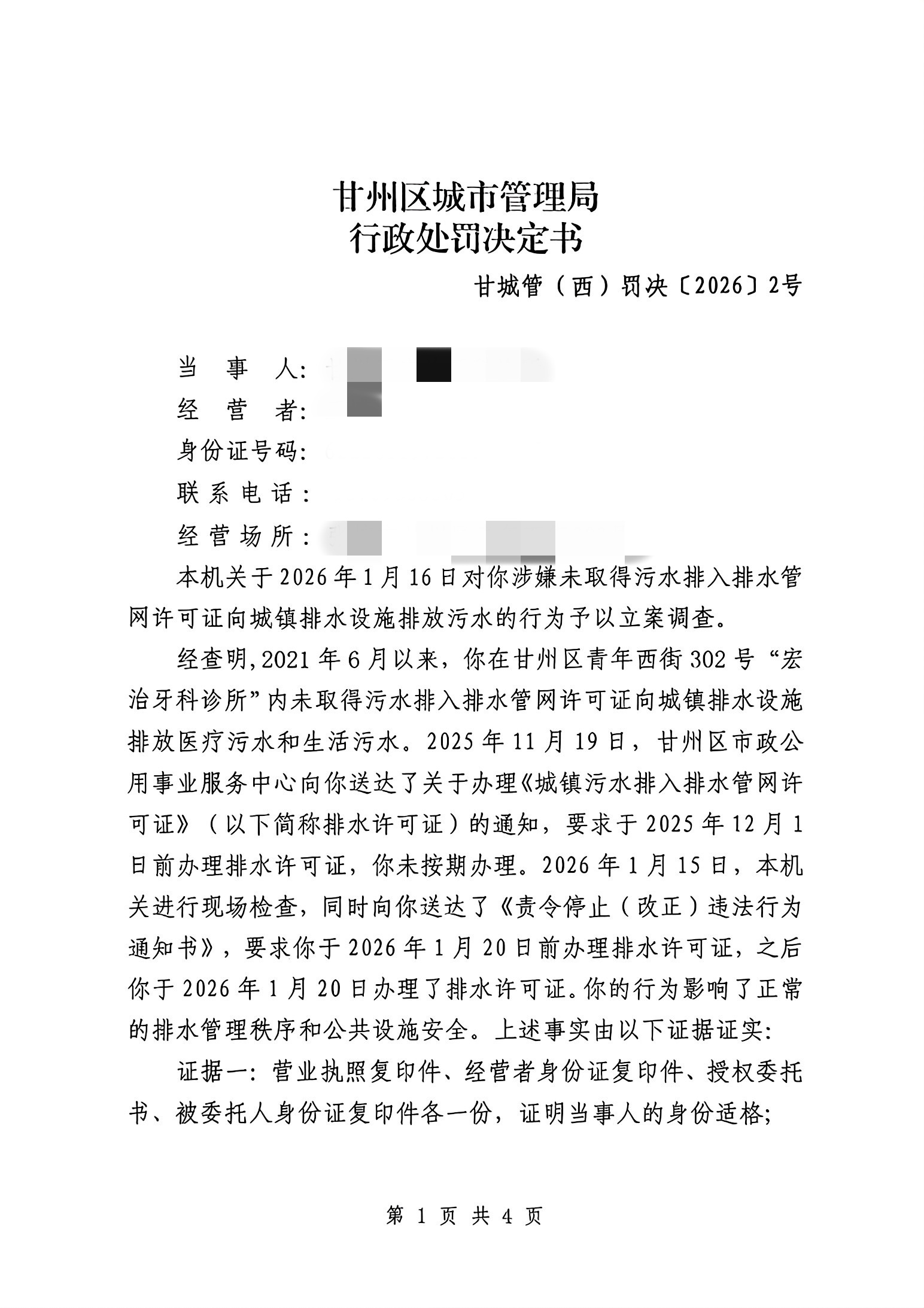 甘城管(西)罚决〔2026〕2号