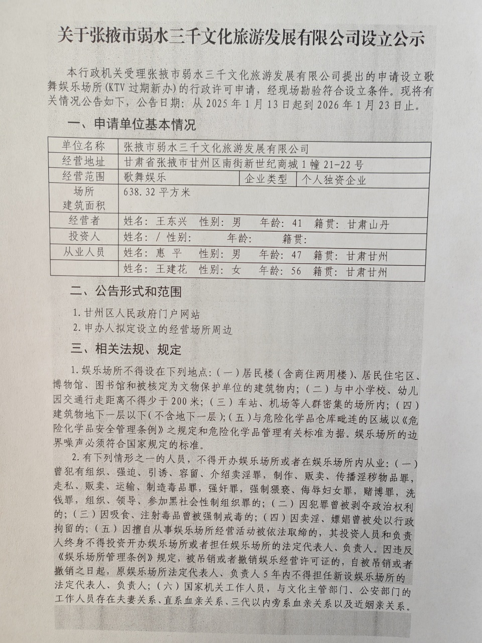 关于张掖市弱水三千文化旅游发展有限公司设立公式