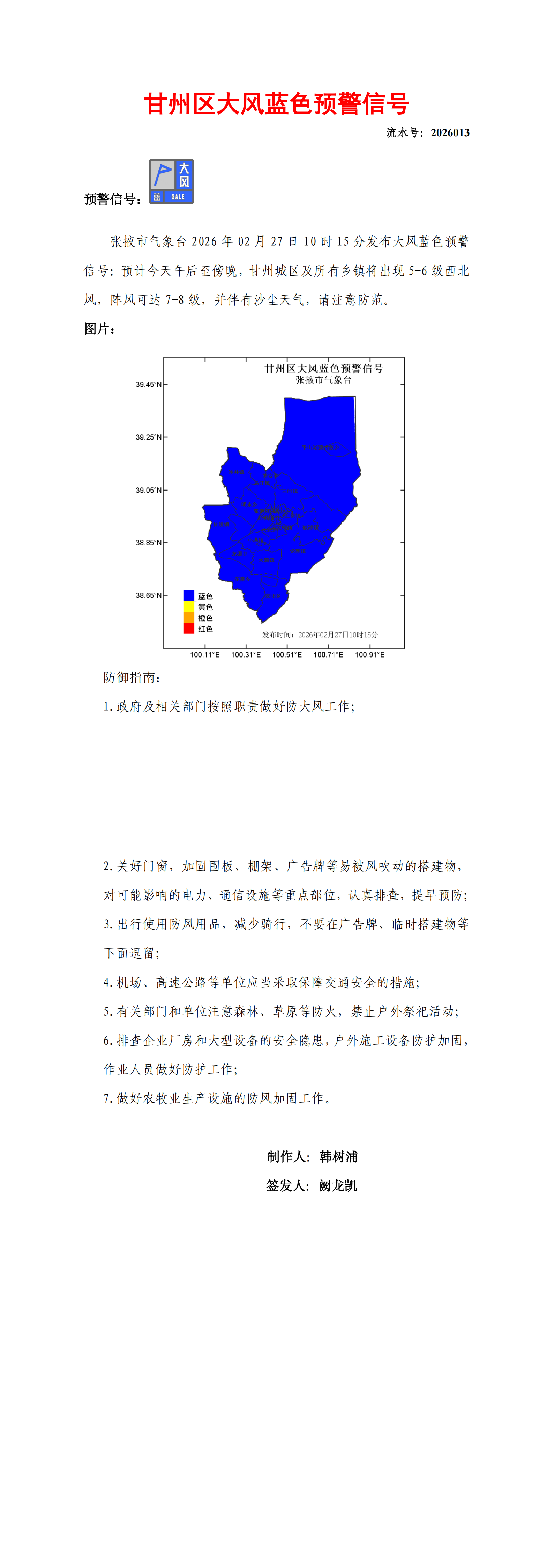 甘州区大风蓝色预警信号