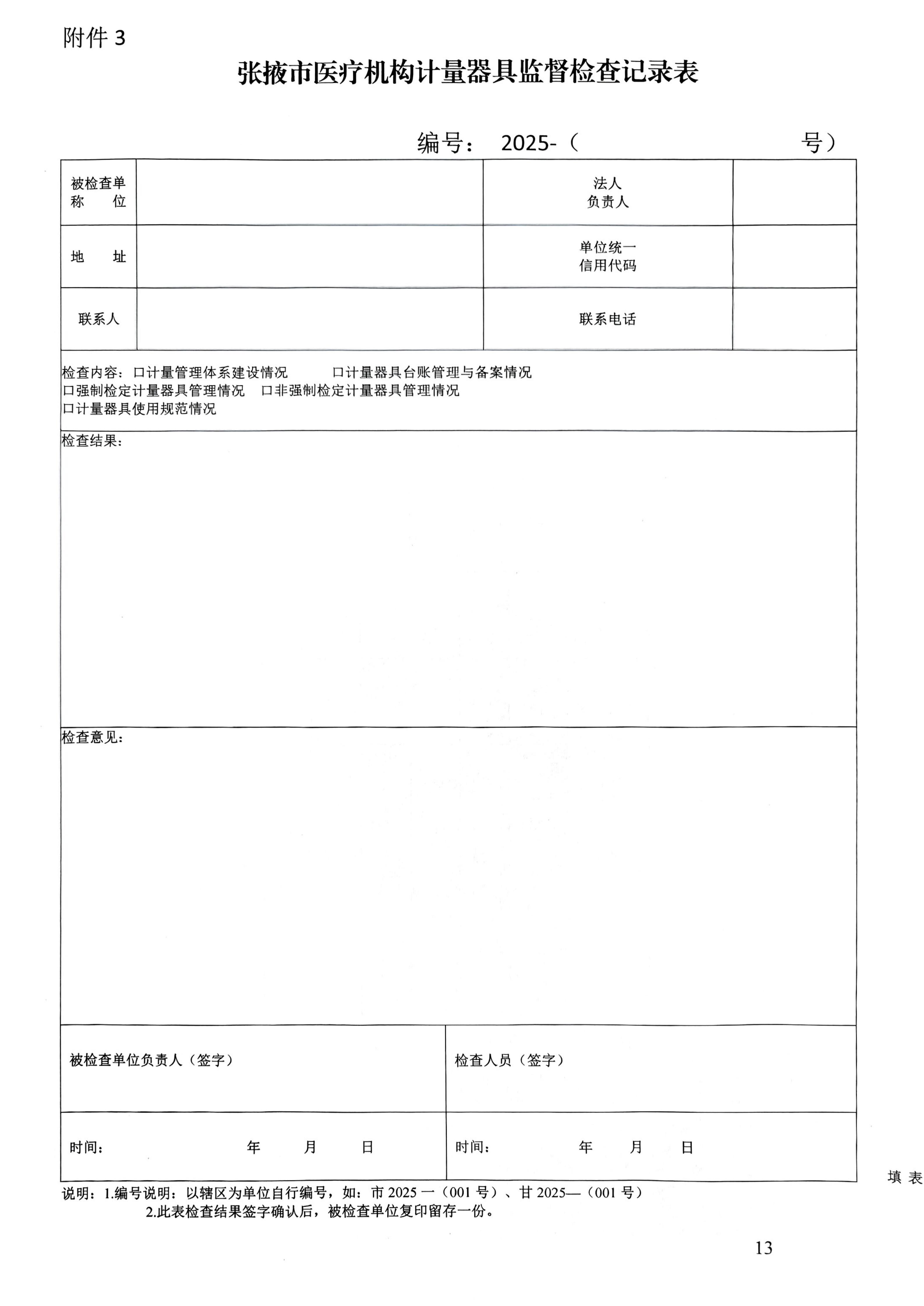 甘州区市场监督管理局关于开展医疗卫生机构计量器具监督检查的通知