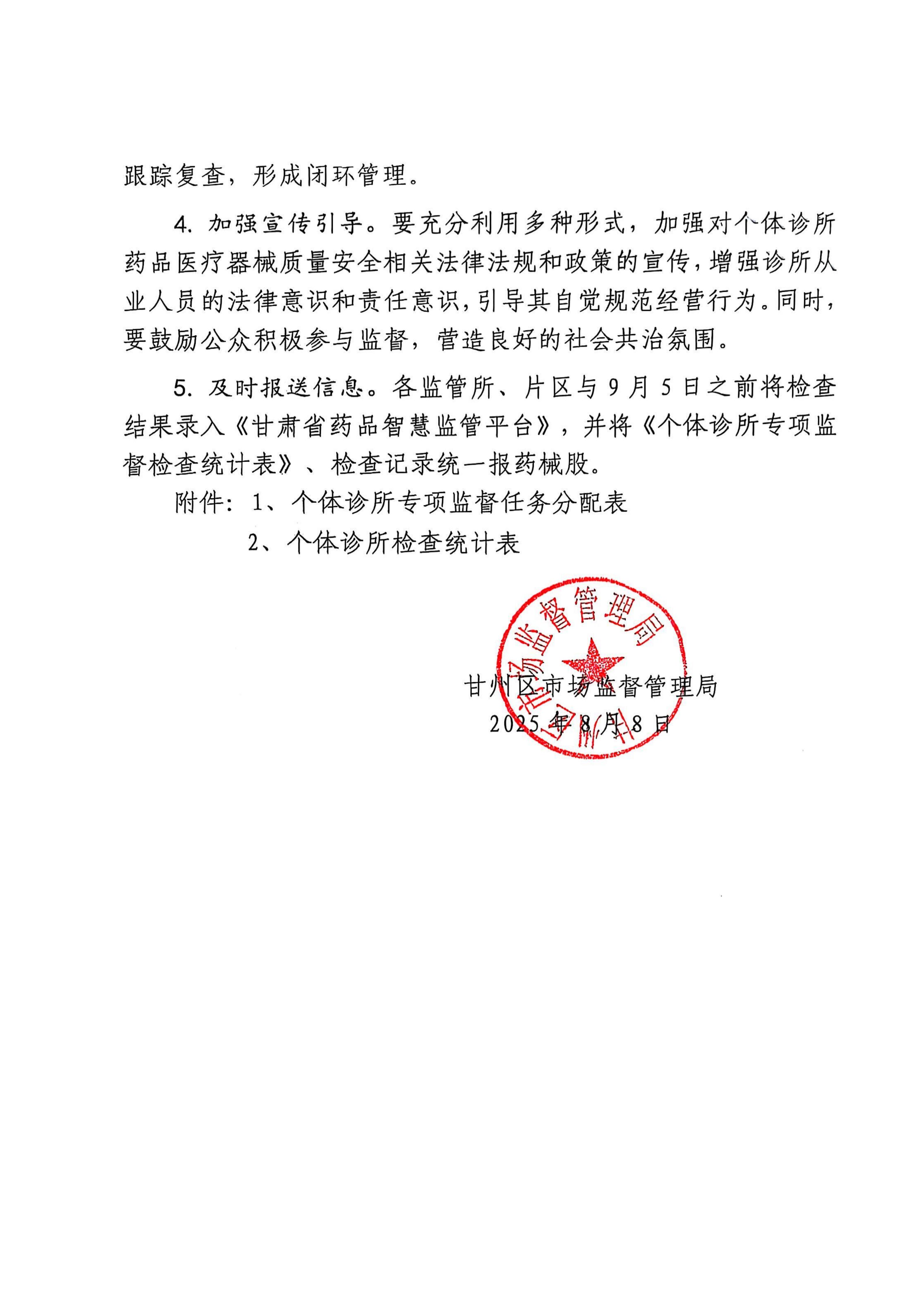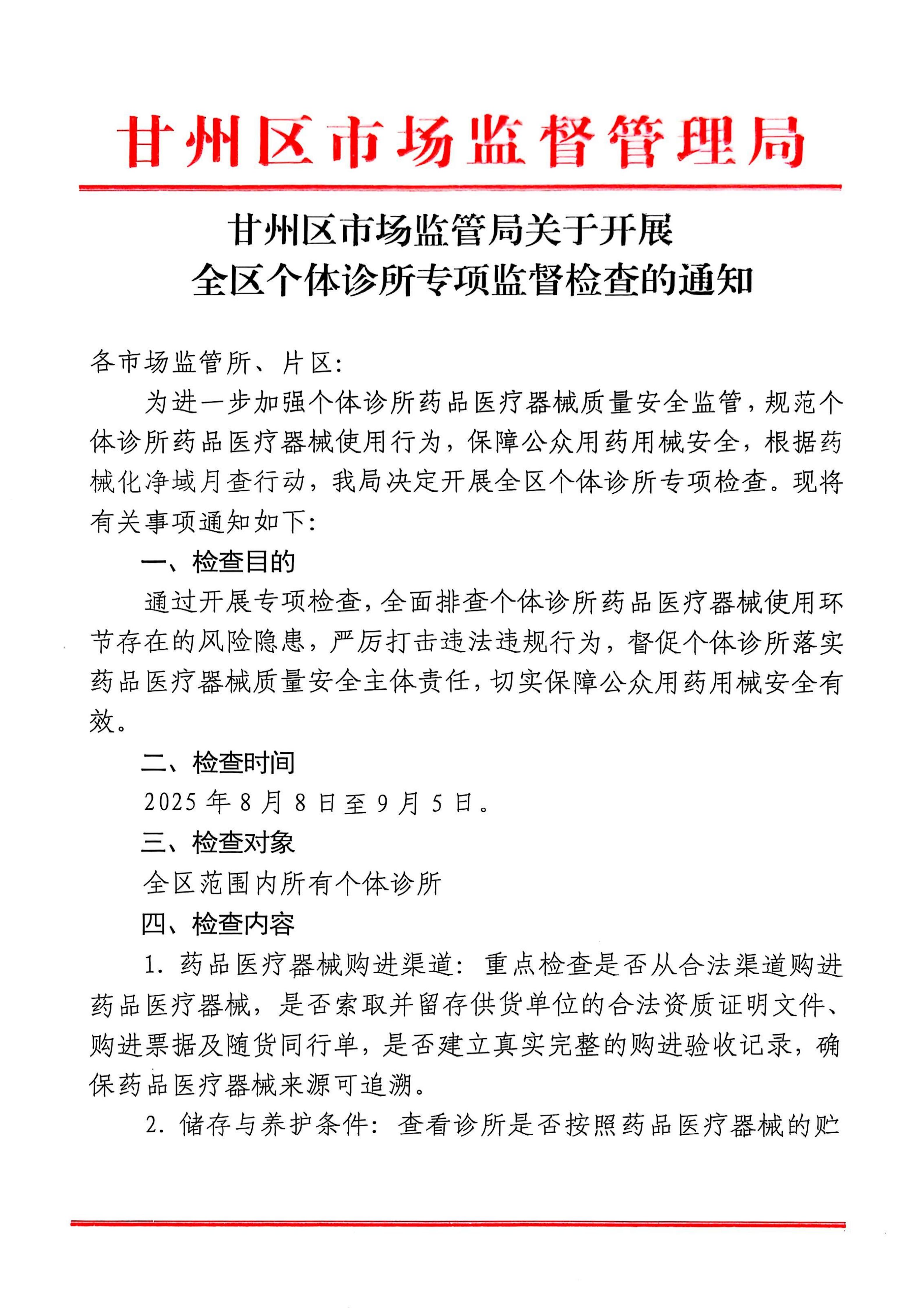甘州区市场监督管理局关于开展全区个体诊所专项监督检查的通知