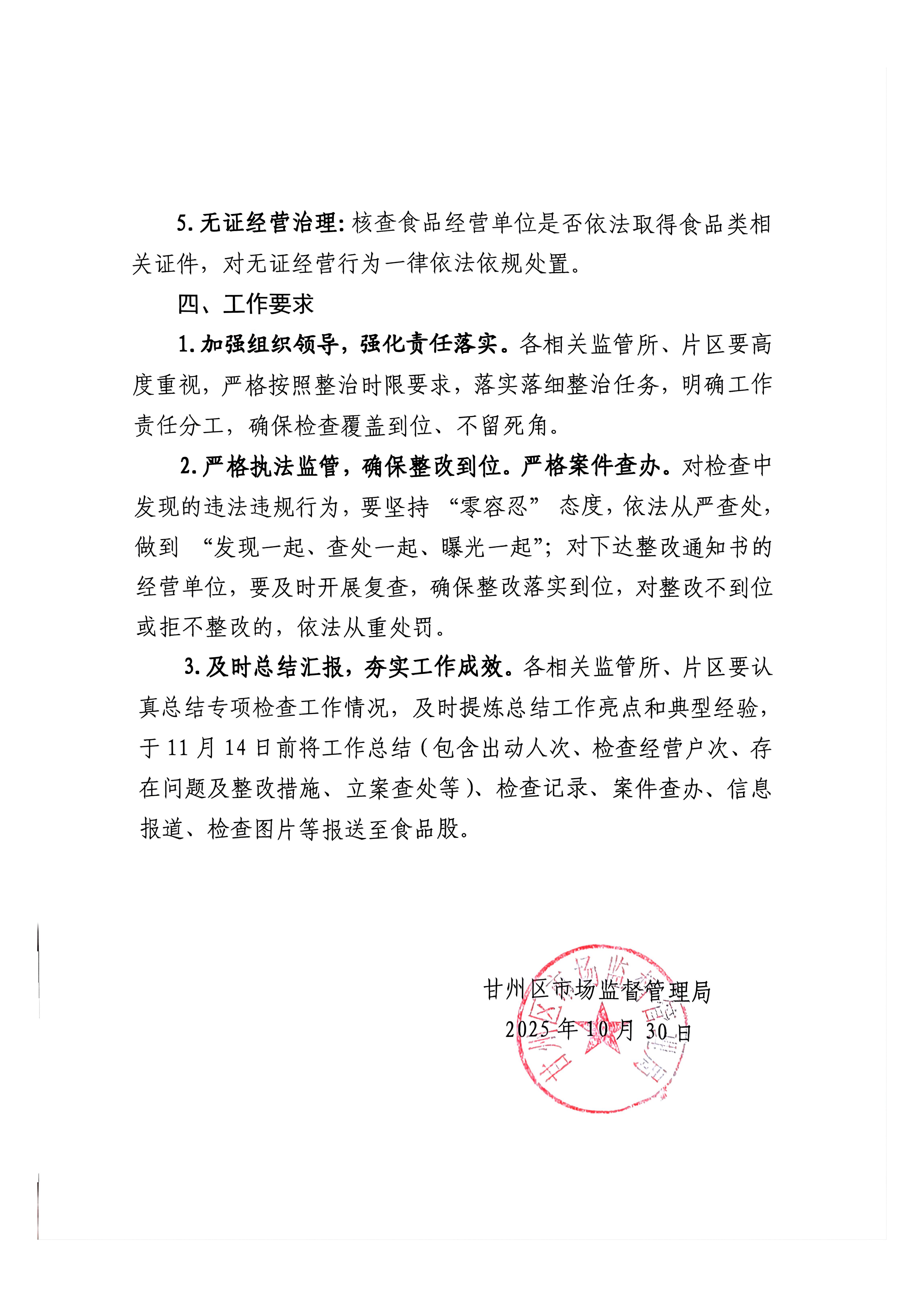 甘州区市场监督管理局关于开展城乡结合部食品安全专项检查的通知