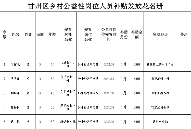 党寨镇村级公益性岗位人员2026年1月份工资发放花名册