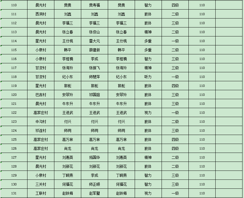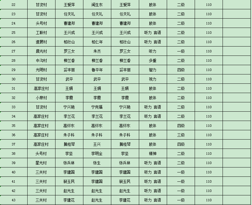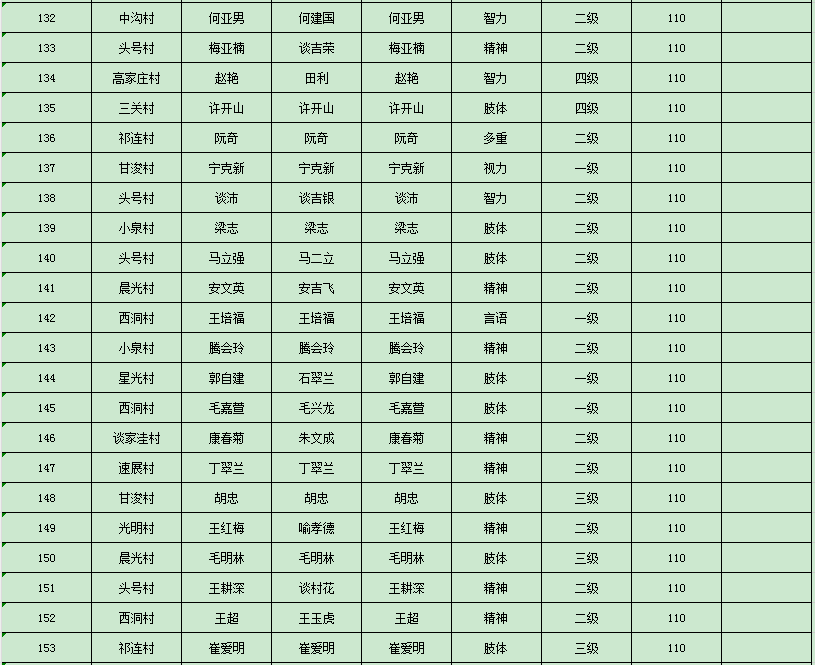甘浚镇2025年10月份困难残疾人生活补贴发放花名册