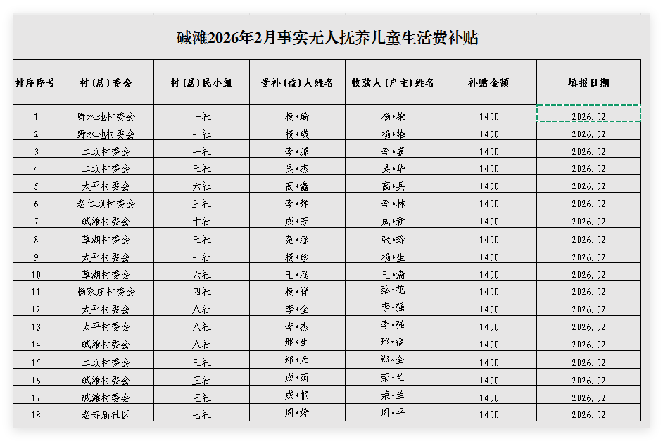 碱滩2026年2月事实无人抚养儿童生活费补贴