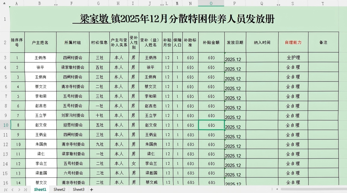 梁家墩镇2025年12月特困分散供养补助发放表