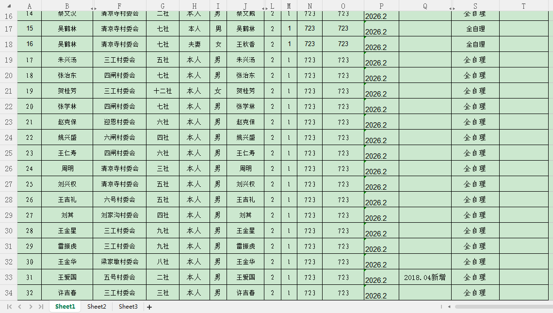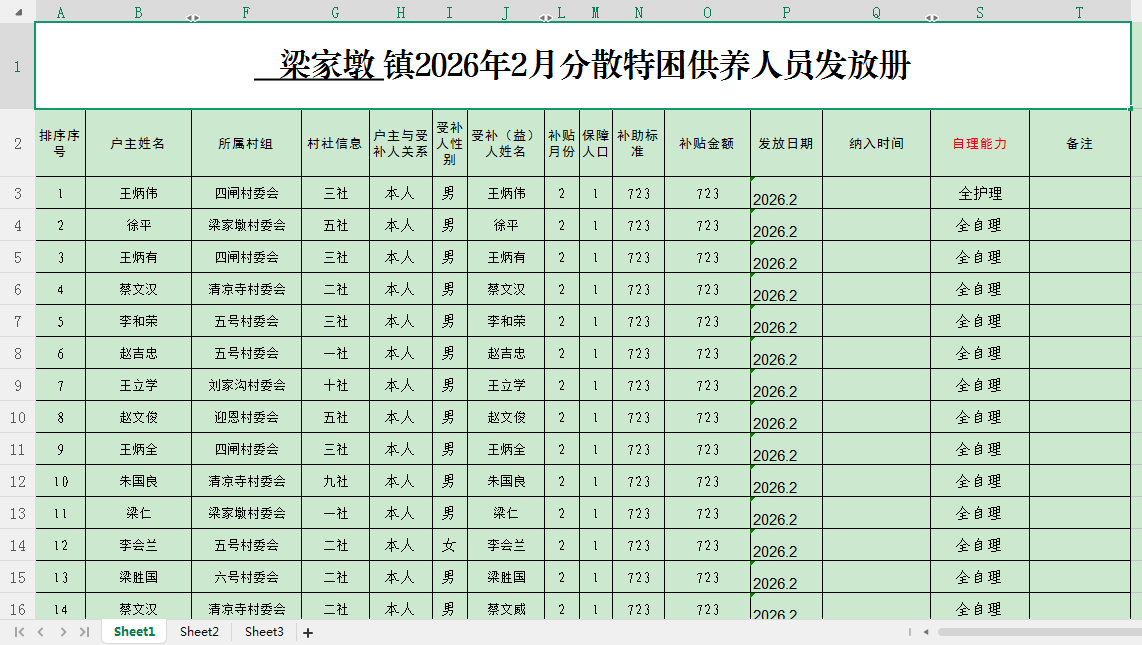 梁家墩镇2026年2月特困分散供养补助发放表