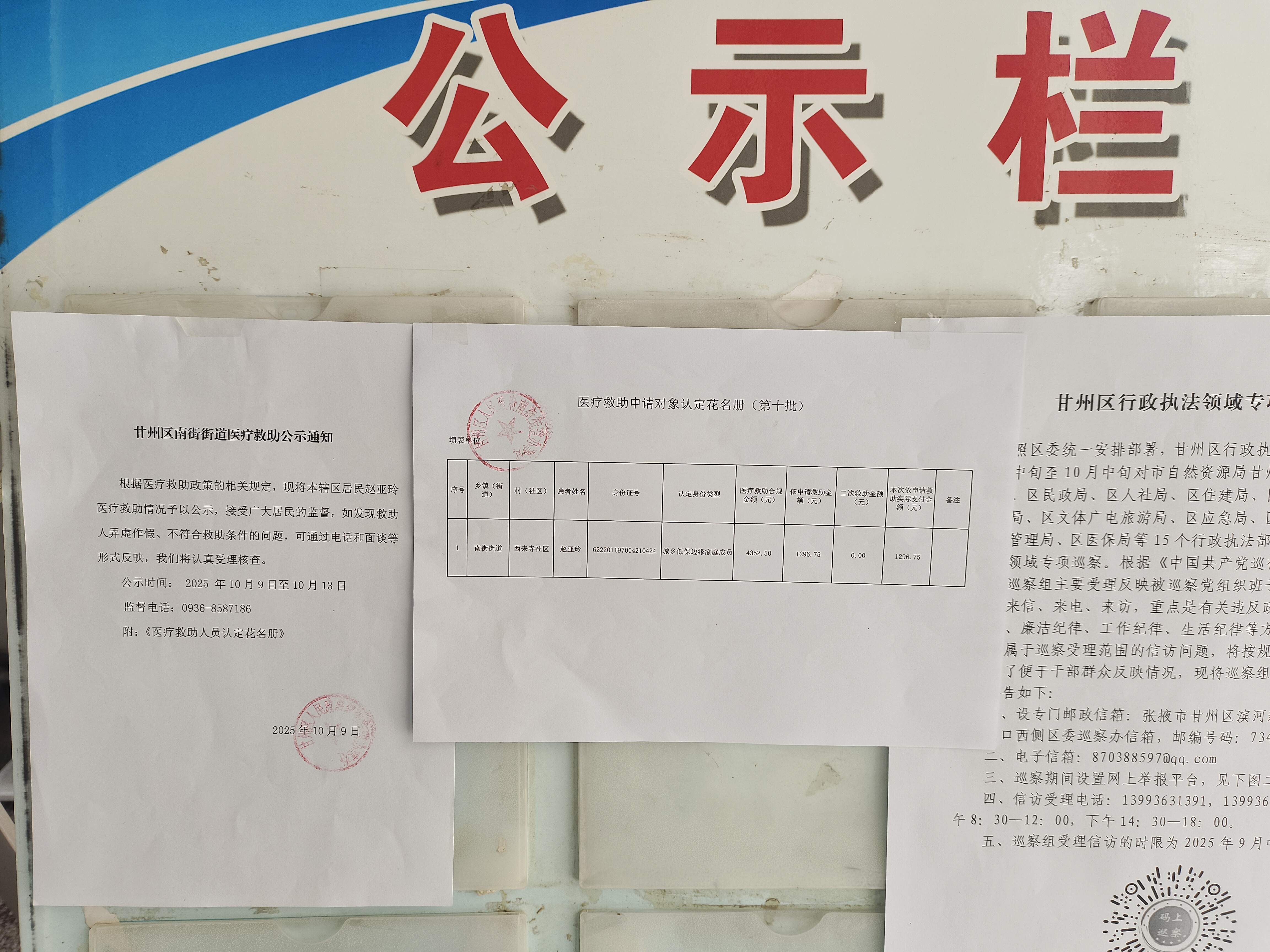 南街10月医疗救助公示