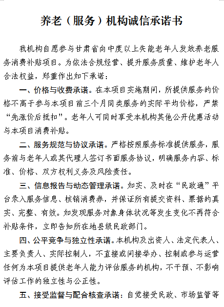 2.养老(服务)机构、能力评估机构诚信承诺书