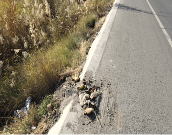 在张靖公路道路旁,一堆无主垃圾以土渣、碎砖头、大理石板为主,显得特别刺眼。主要是附近居民、商户装修时随意倒的建筑垃圾,不仅阻碍了车辆的正常出行,还造成了较大的环境影响。经查证无果后,执法人员联系环卫人员一起将垃圾清理干净。