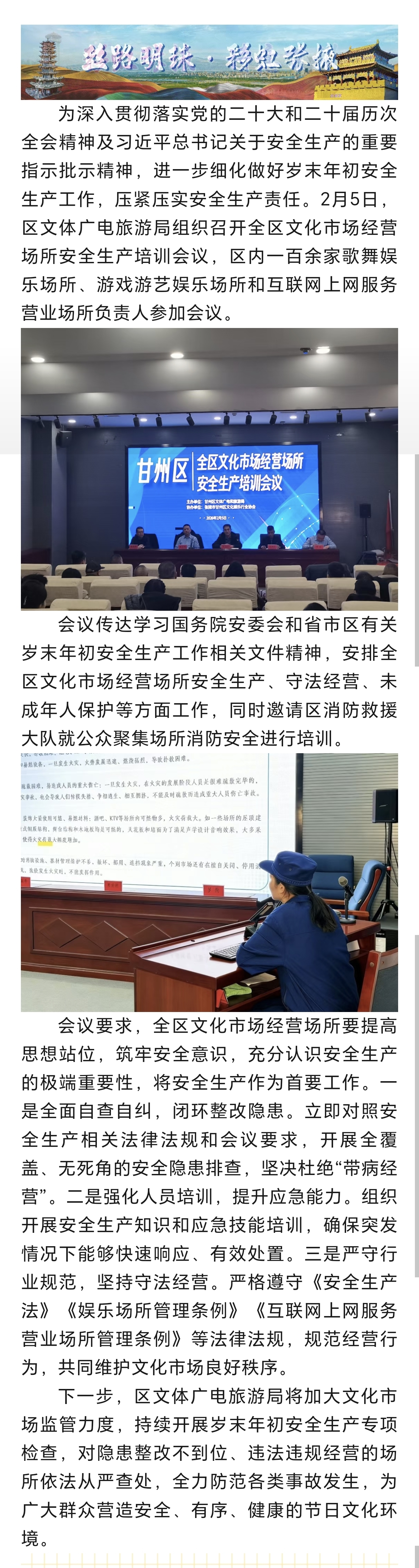 甘州区文体广电和旅游局组织召开全区文化市场经营场所安全生产培训会议