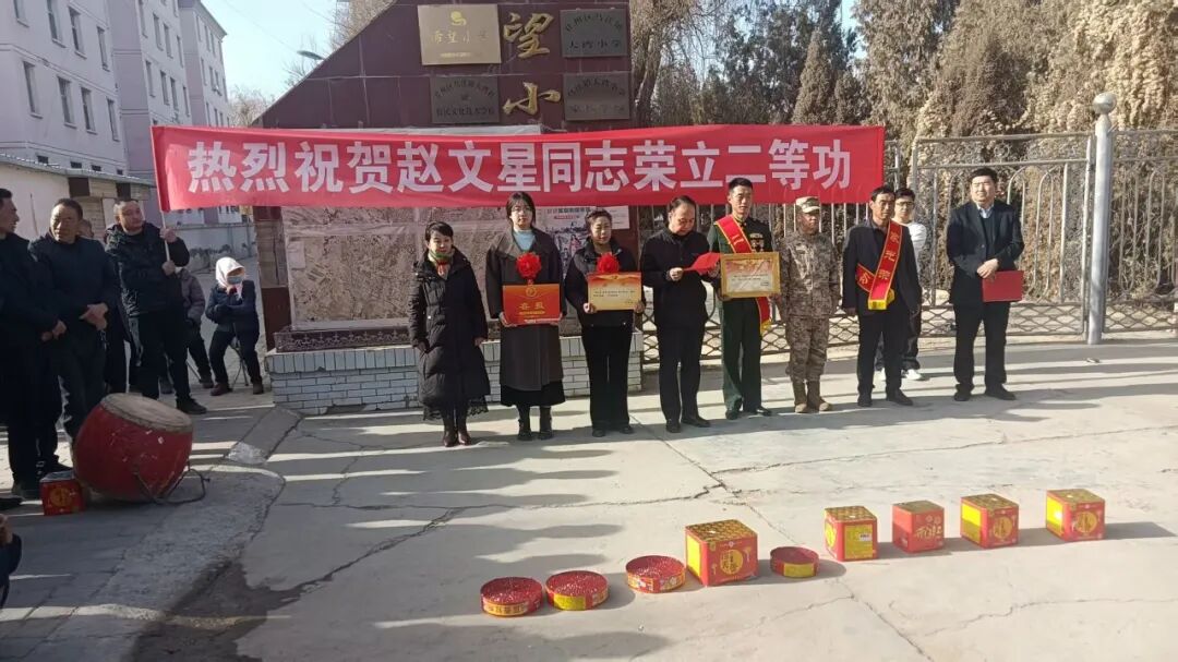 在赵文星曾就读的乌江镇大湾小学,乡亲们敲锣打鼓夹道欢迎。慰问组将立功喜报和荣誉证书亲手交到赵文星手中,并为他的家属披上“一人立功、全家光荣”绶带、佩戴大红花。仪式上还介绍了赵文星入伍八年来的优秀表现,他扎根军营、奋勇争先,专注狙击专业,苦练打赢本领,在各级比武中屡获佳绩,先后荣获陆军“狙击尖兵”、战区陆军“优秀狙击手”称号,三次获评“四有优秀士兵”,荣立个人二等功一次、三等功一次,以青春与实干践行强军使命,为家乡赢得了荣誉。