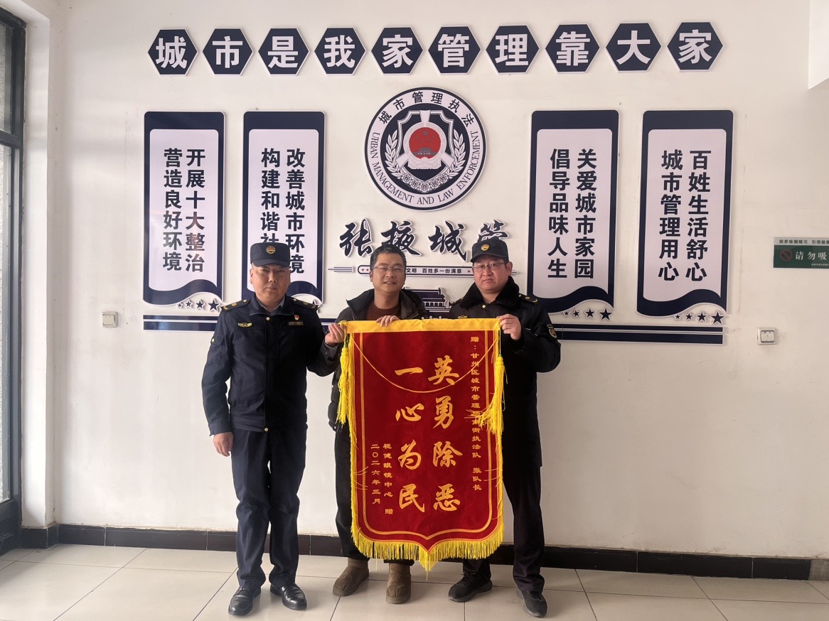 为切实解决群众反映强烈的沿街流动摊贩使用高音喇叭叫卖噪音扰民问题,不断提升辖区人居环境与市民生活品质。近日,甘州区城市管理局南街执法中队聚焦重点路段、紧盯关键时段,大力开展沿街流动摊贩专项整治行动,以高效治理回应民生期盼,赢得群众认可并获赠一面锦旗。