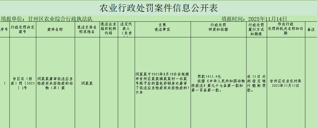 农业行政处罚案件信息公开