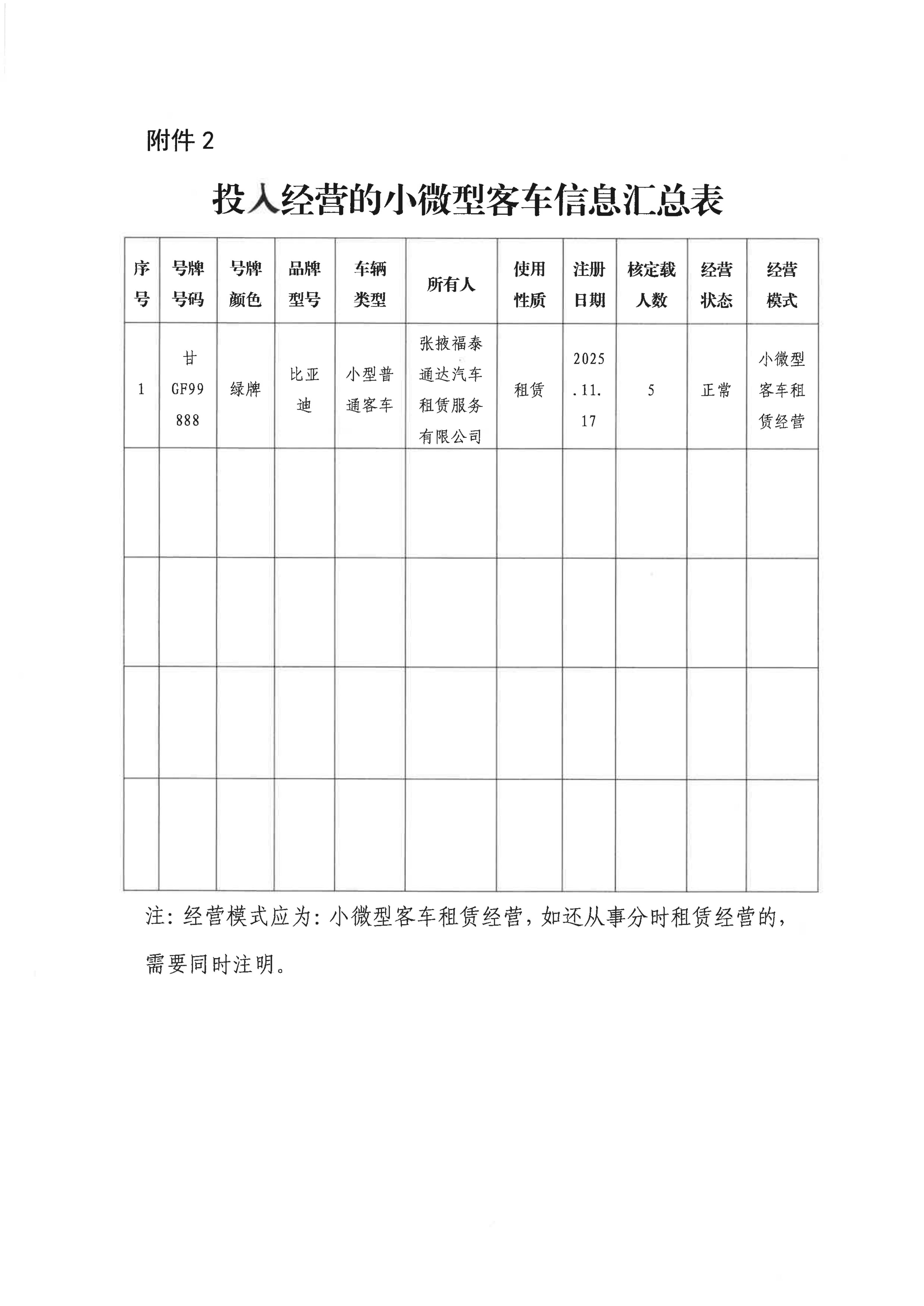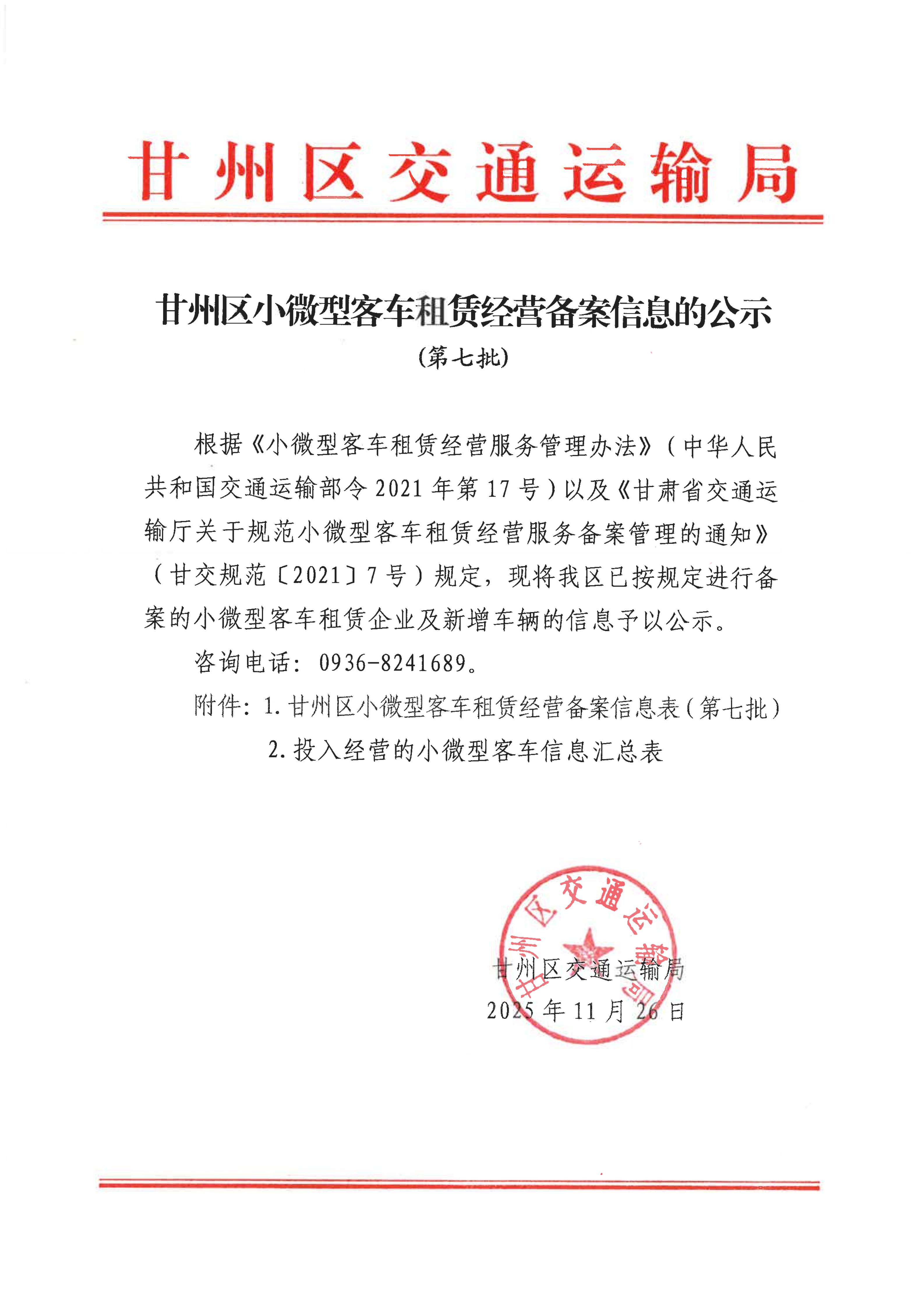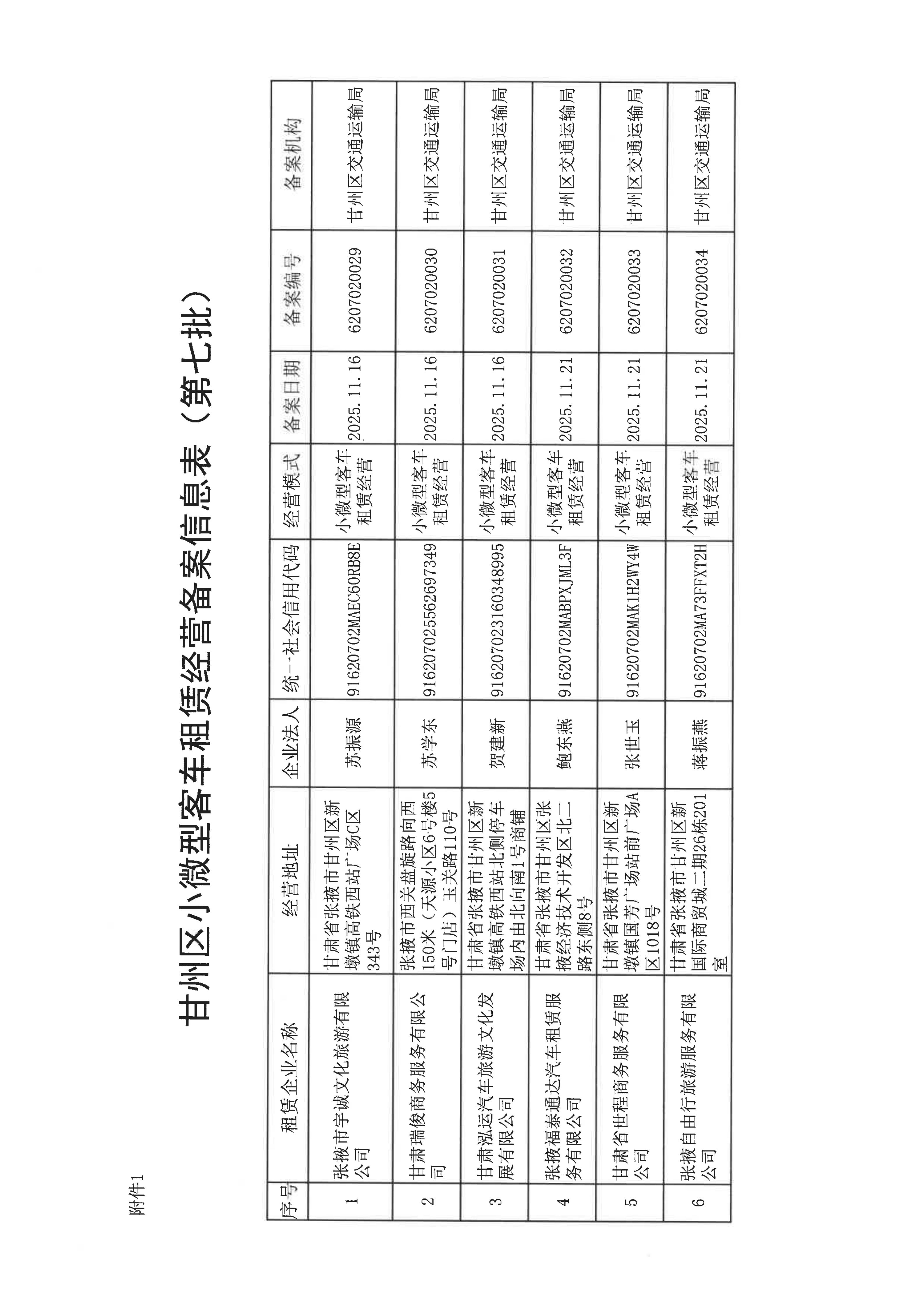 甘州区小微型客车租赁经营备案信息的公示(第七批)