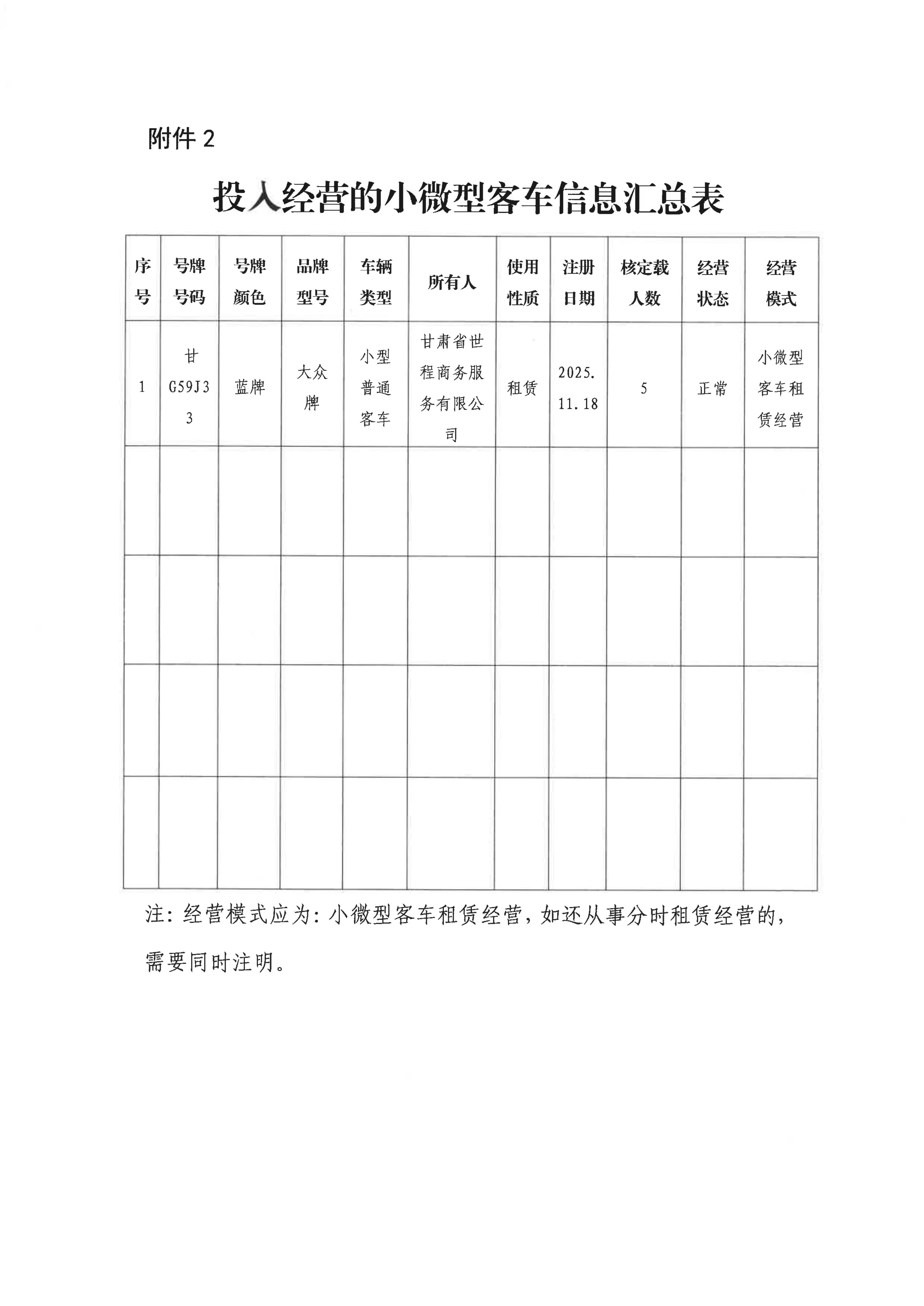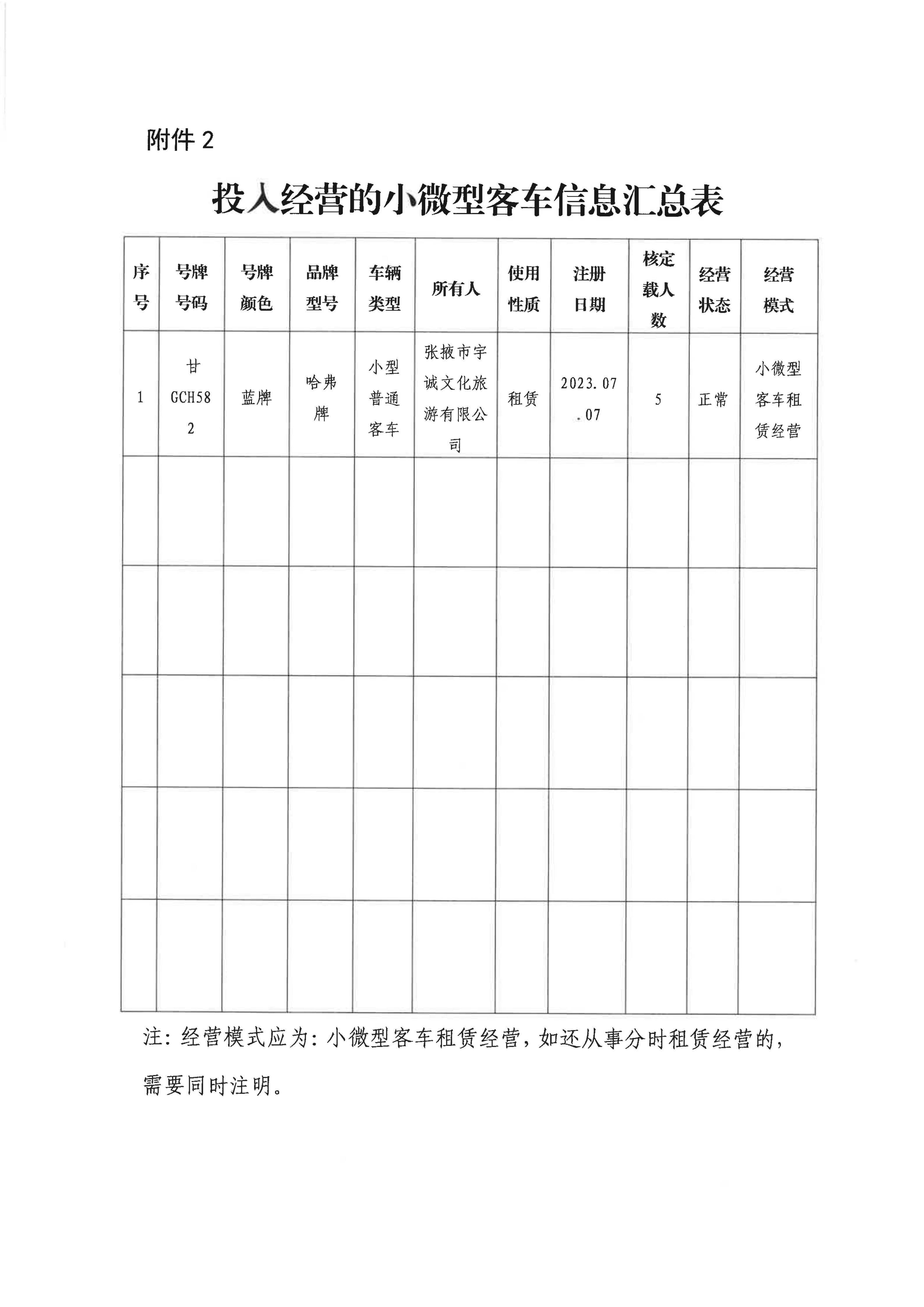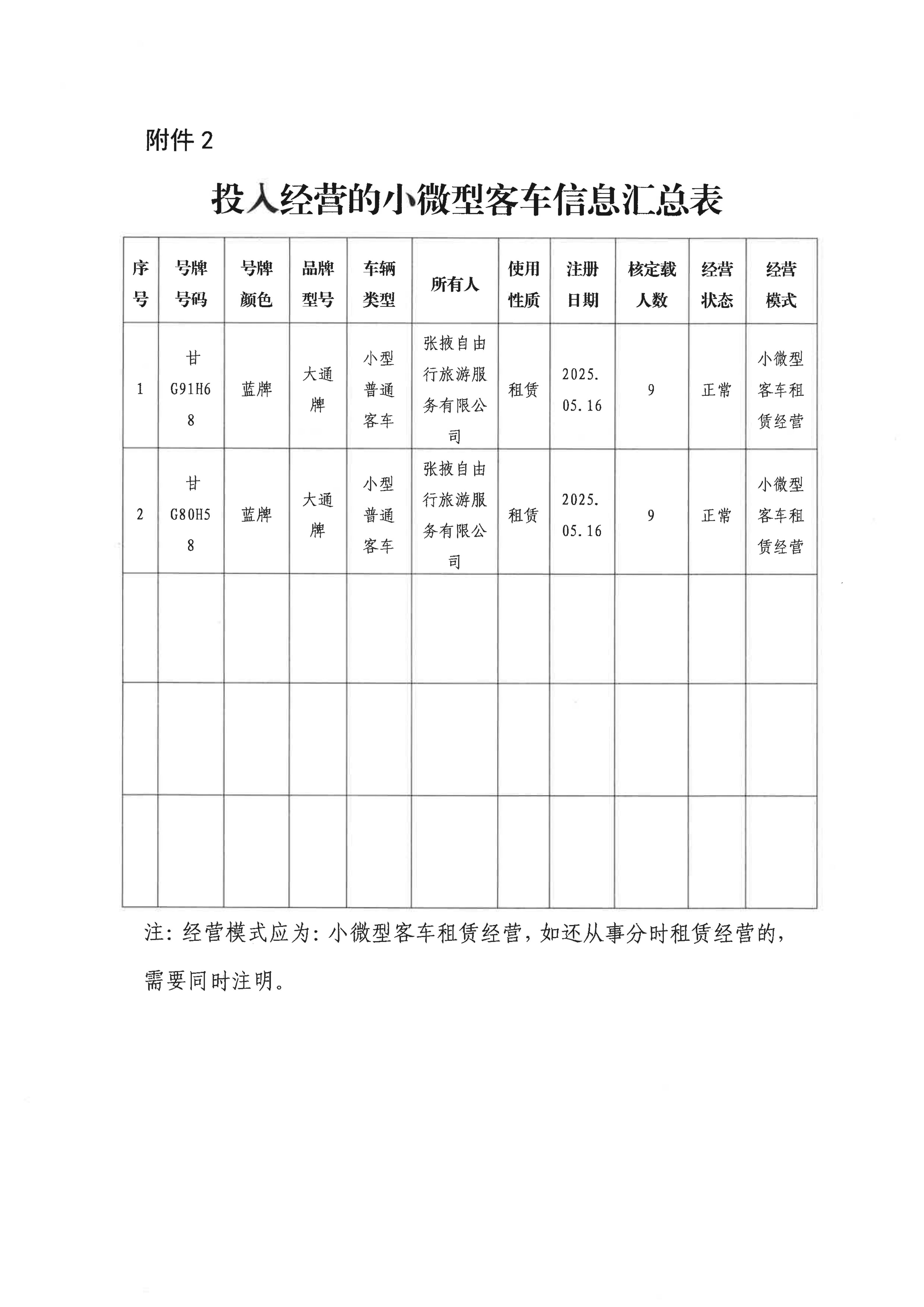甘州区小微型客车租赁经营备案信息的公示(第七批)