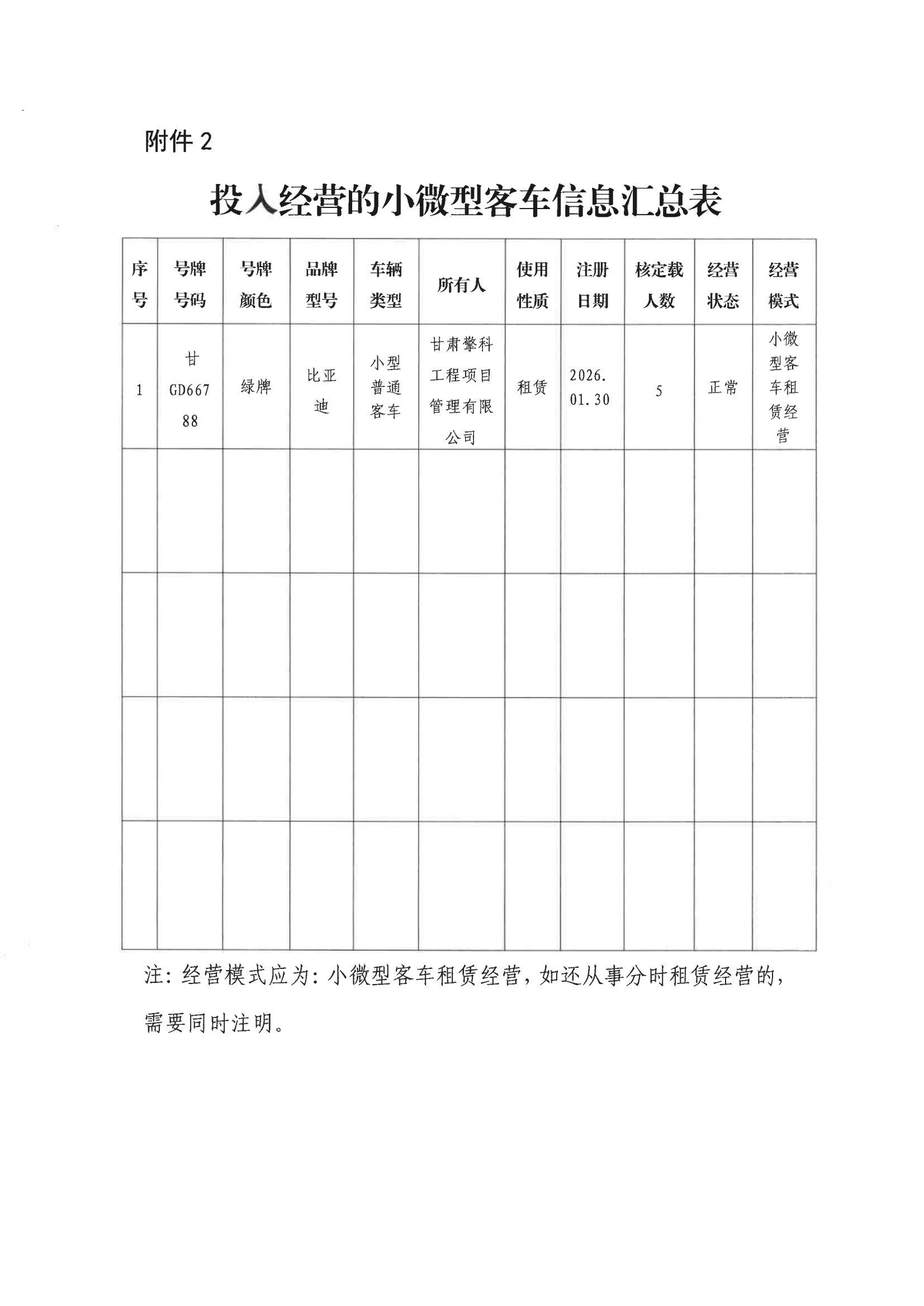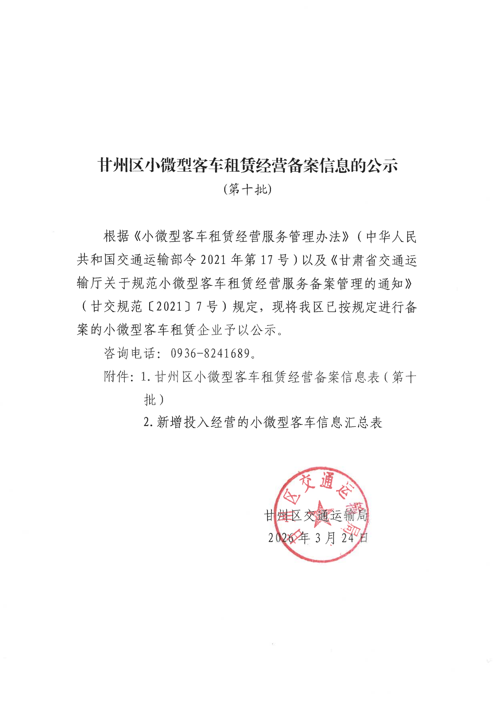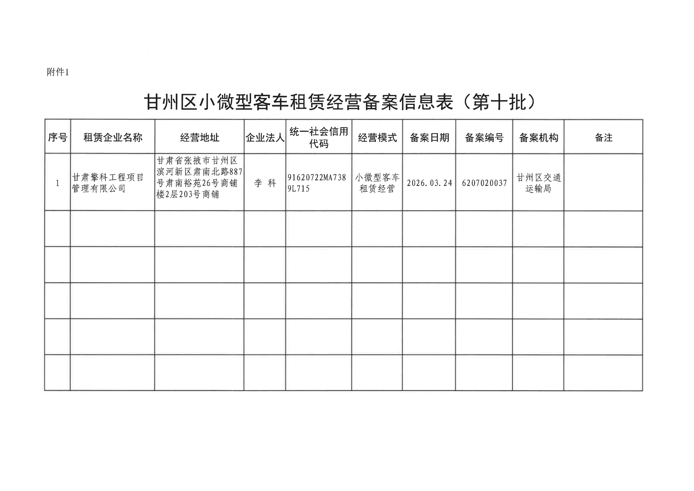 甘州区小微型客车租赁经营备案信息的公示(第十批)