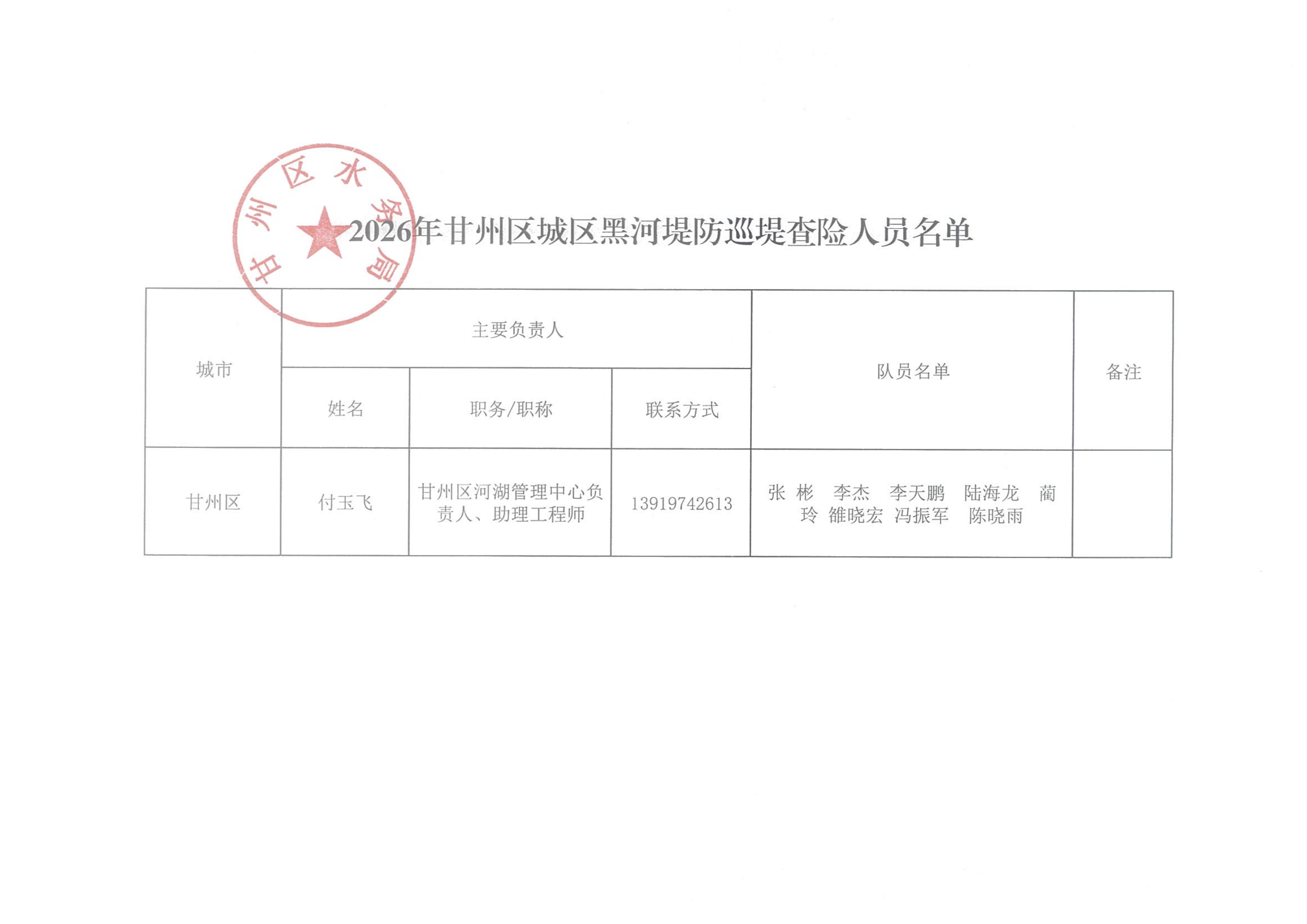 2026年甘州区城区黑河堤防巡堤查险人员名单