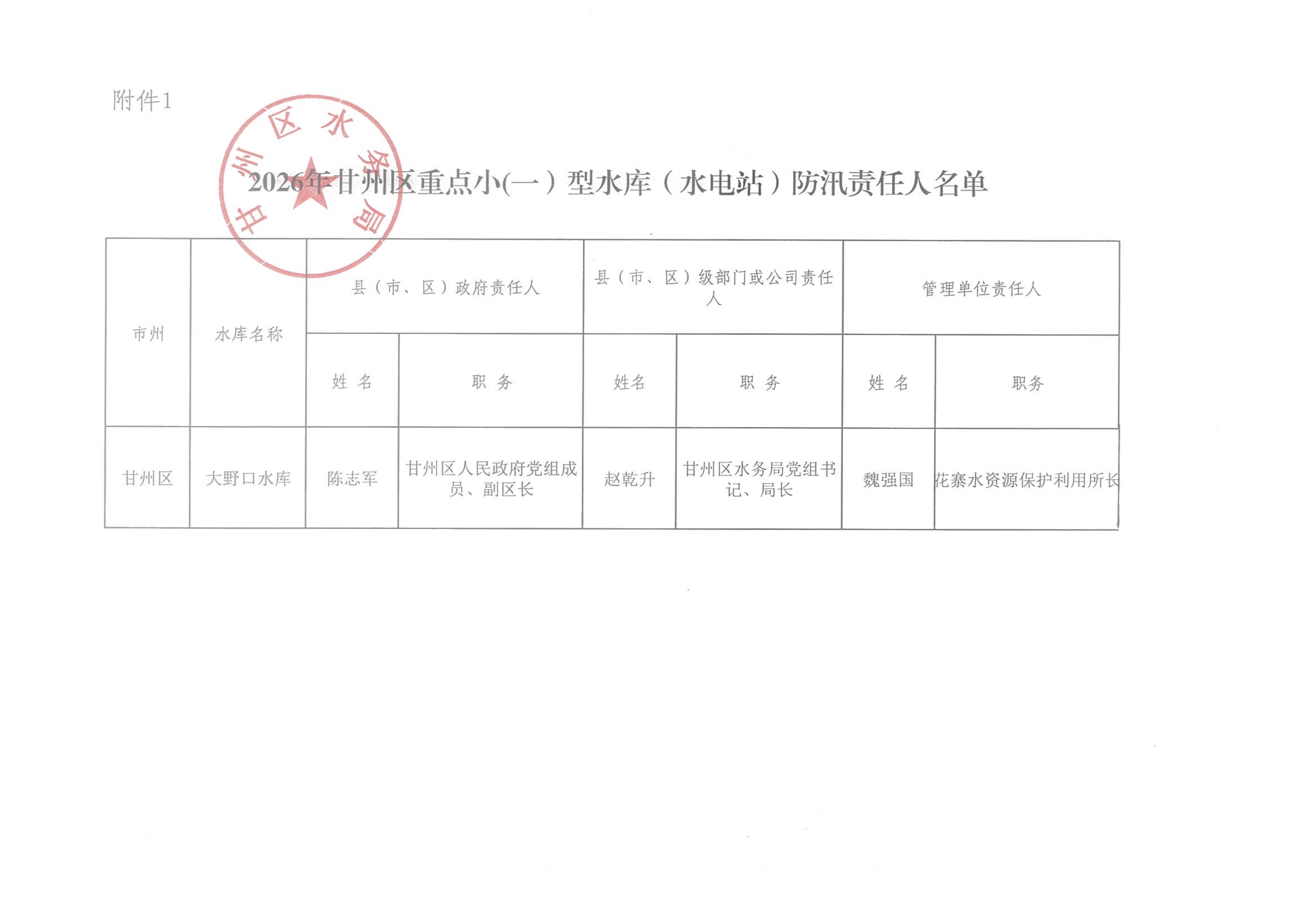 2026年甘州区重点小(一)型水库(水电站)防汛责任人名单