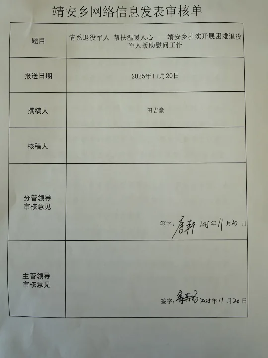 下一步,靖安乡将以此次活动为契机,持续健全退役军人关爱帮扶长效机制,常态化开展走访慰问、政策宣讲、精准帮扶等工作,聚焦退役军人急难愁盼问题,不断提升服务保障水平,切实维护退役军人合法权益,让尊崇军人、关爱退役军人成为全社会的共同风尚,为建设和谐稳定的乡村环境凝聚强大力量。(田吉豪)