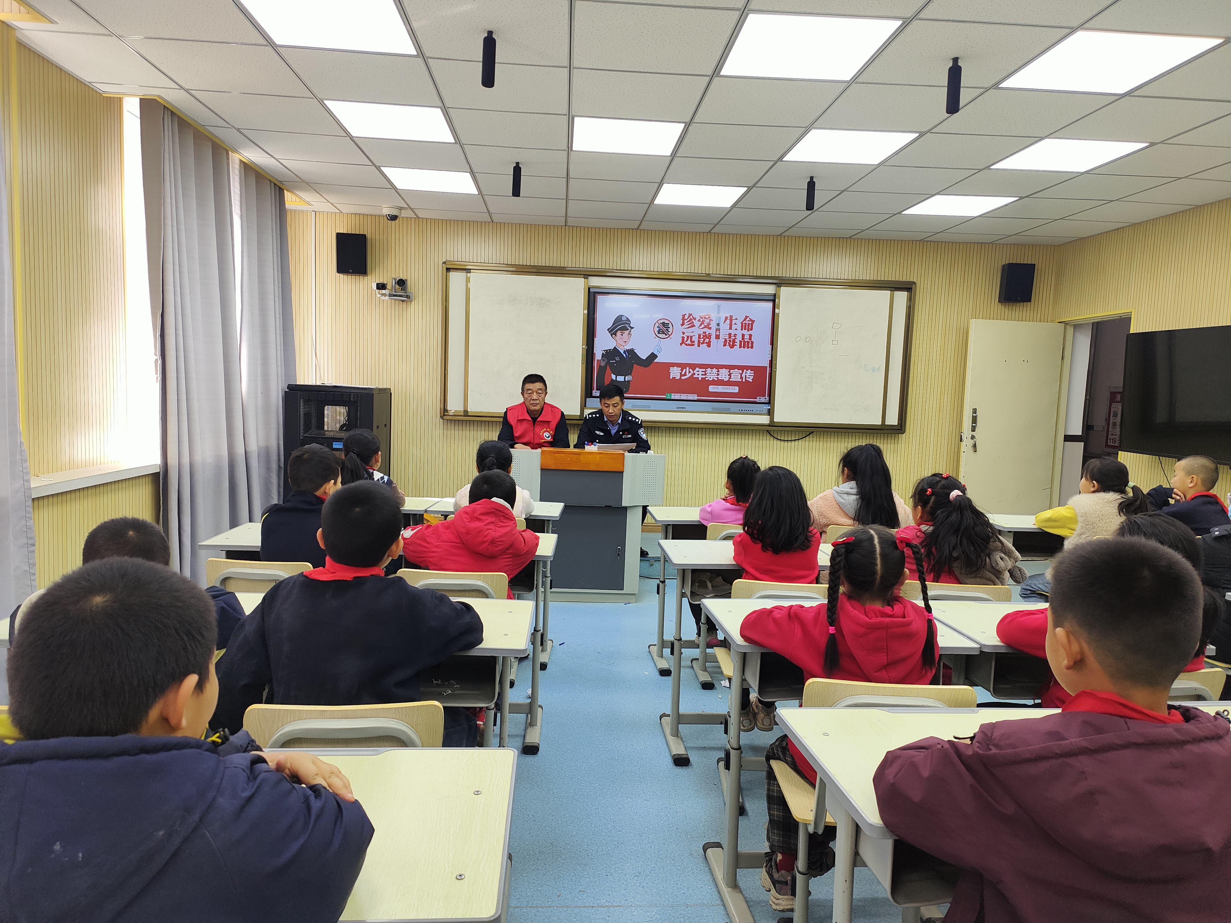 为进一步加强青少年毒品预防教育,增强学生识毒、防毒、拒毒意识和能力,筑牢校园禁毒安全防线,靖安司法所联合派出所走进靖安中心学校,共同开展“禁毒开学第一课”知识讲座,为学生送上一堂生动且深刻的禁毒法治教育课。