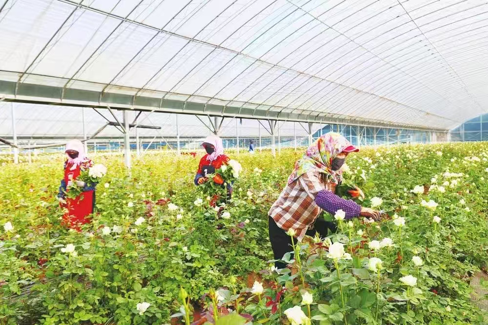 着眼产业融合发展抓“用绿”。聚焦渔业养殖与花卉种植两大特色优势产业,规划建设双河湾生态循环农业产业园、三和智慧农业产业园,搭建“绿产融合”发展平台。构建“渔养花、花促渔”的生态循环体系,形成“资源—产品—废弃物—再生资源”的生态闭环。同时,采用鲜花、西瓜、蔬菜轮作模式,实现“四季有产出、季季有特色”,充分提高土地利用率和种植效益。推广陆基工厂化养殖、无土栽培、循环种养等低碳生产模式,减少资源消耗与环境污染,打造甘州生态农业绿色样板。整合周边有效资源,盘活休闲垂钓、花卉观光摄影、农事体验、品尝绿色农产品等项目,提升消费转化率,实现农旅优势互补。持续释放绿色生态红利,依托“党支部+企业+农户”模式,充分发挥党组织先锋引领、统筹协调、服务保障作用,搭建供需对接平台,吸纳周边大量劳动力就近务工,培育50余名专业技术工人,村民年均增收近4万元。