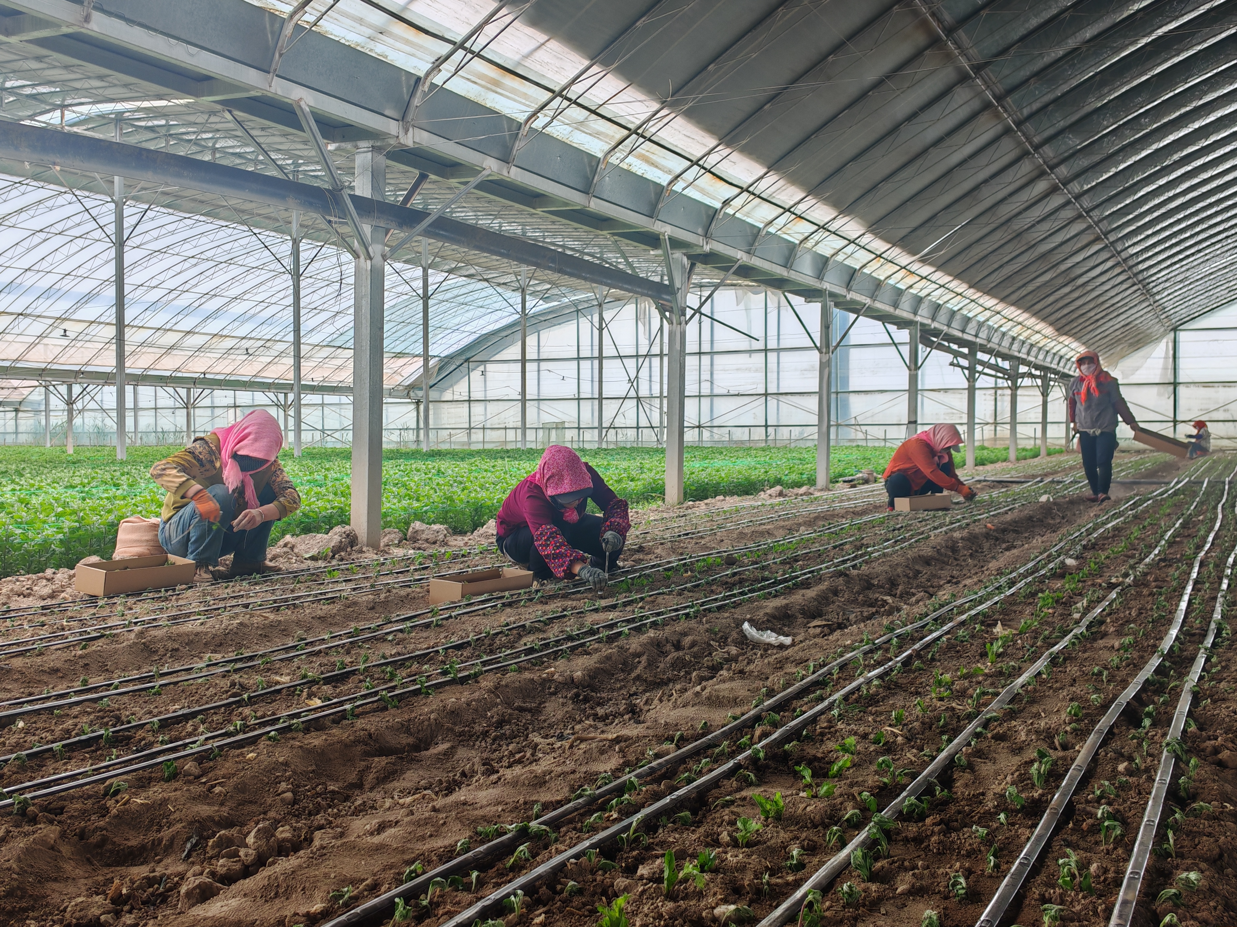 温润的花棚内暖意融融,氤氲着湿润的泥土气息。爱莎、戴安娜、朱小姐、骄傲等玫瑰花品种竞相开放,层层花瓣饱满丰盈,在翠绿枝叶的映衬下娇艳动人。微风拂过,花枝轻轻摇曳,花香四溢,吸引了不少市民游客前来游园赏花、拍照打卡,沉浸式感受田园花海的浪漫气息。与此同时,花农们在一旁整理平整的土地上躬身忙碌,专心栽植菊花幼苗。大家分工协作,松土理畦、扶苗定植、覆土压实、引水浇灌,动作娴熟利落。一株株菊花苗亭亭而立,细茎青嫩、新叶舒展,稳稳扎根在松软沃土之中。