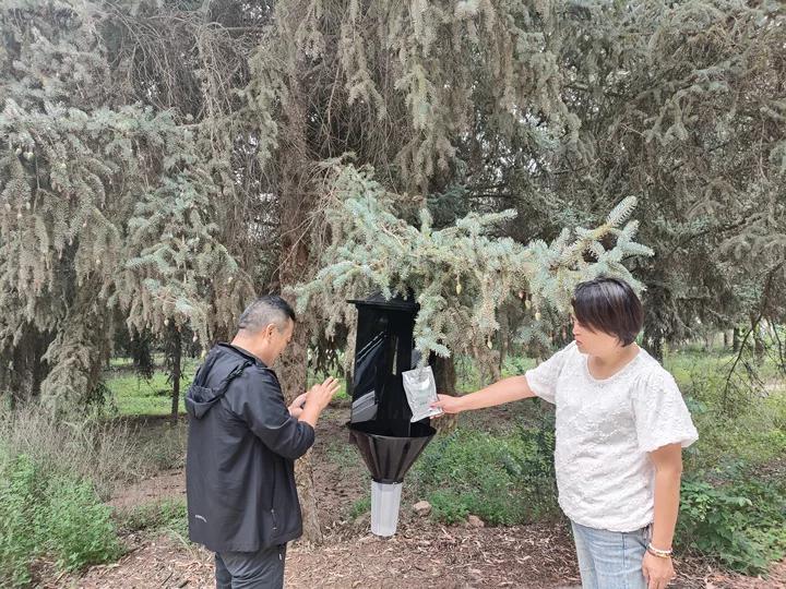 调查工作坚持四个关键举措:一是加强组织领导,科学谋划部署。制定并印发《甘州区松树钻蛀类害虫系统调查工作实施方案》,成立工作指导组,结合历史监测数据和松林分布特点划定调查区域,明确调查重点与技术标准。二是开展专题培训,强化技术支撑。组织召开区级调查推进会暨技术培训班,对害虫识别、调查方案、测报系统操作等内容进行全流程培训,并选派专人参加省级培训,确保调查方法科学、数据可靠。三是细化网格管理,实现全域覆盖。根据松林分布特征科学划分调查网格,重点围绕万亩常青苗木储备林、国家储备林育苗基地等关键区域,将调查任务与日常巡护有机结合,确保不留死角。四是严控调查质量,深入实地踏查。严格按照技术规范,依托松材线虫病疫情监管平台APP,采取“现场踏查+实时录入”模式,同步上传监测数据与影像资料,保障调查结果真实准确。