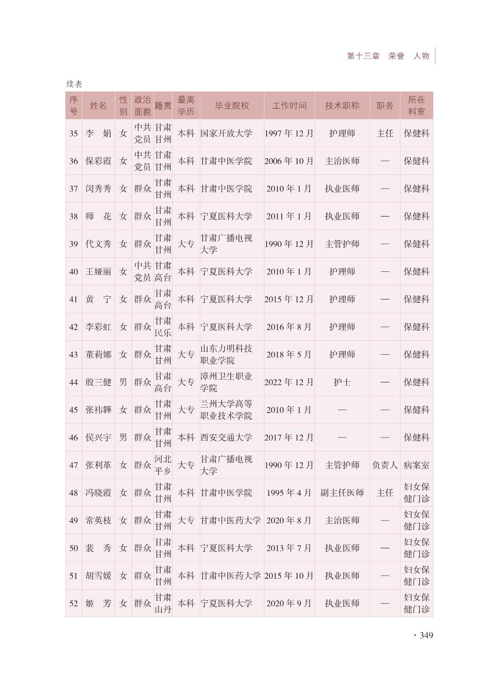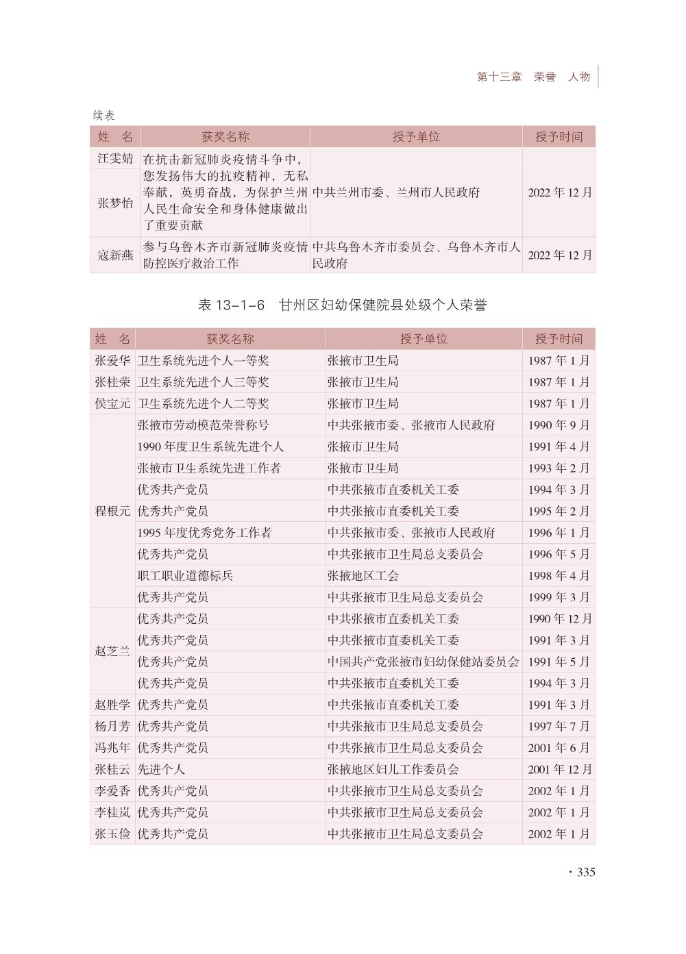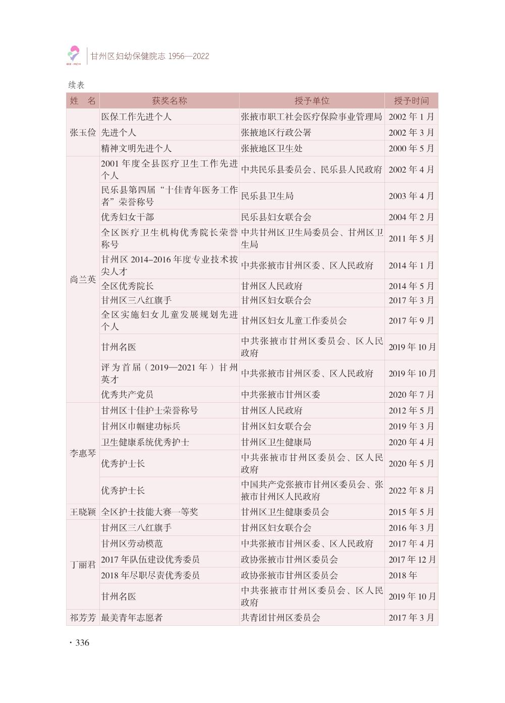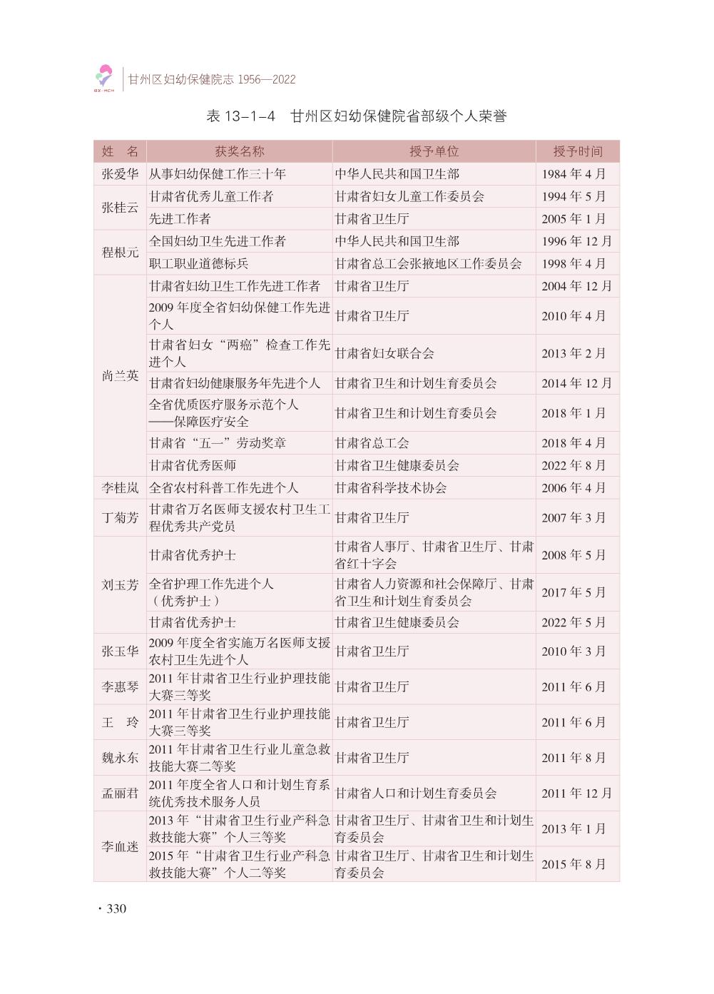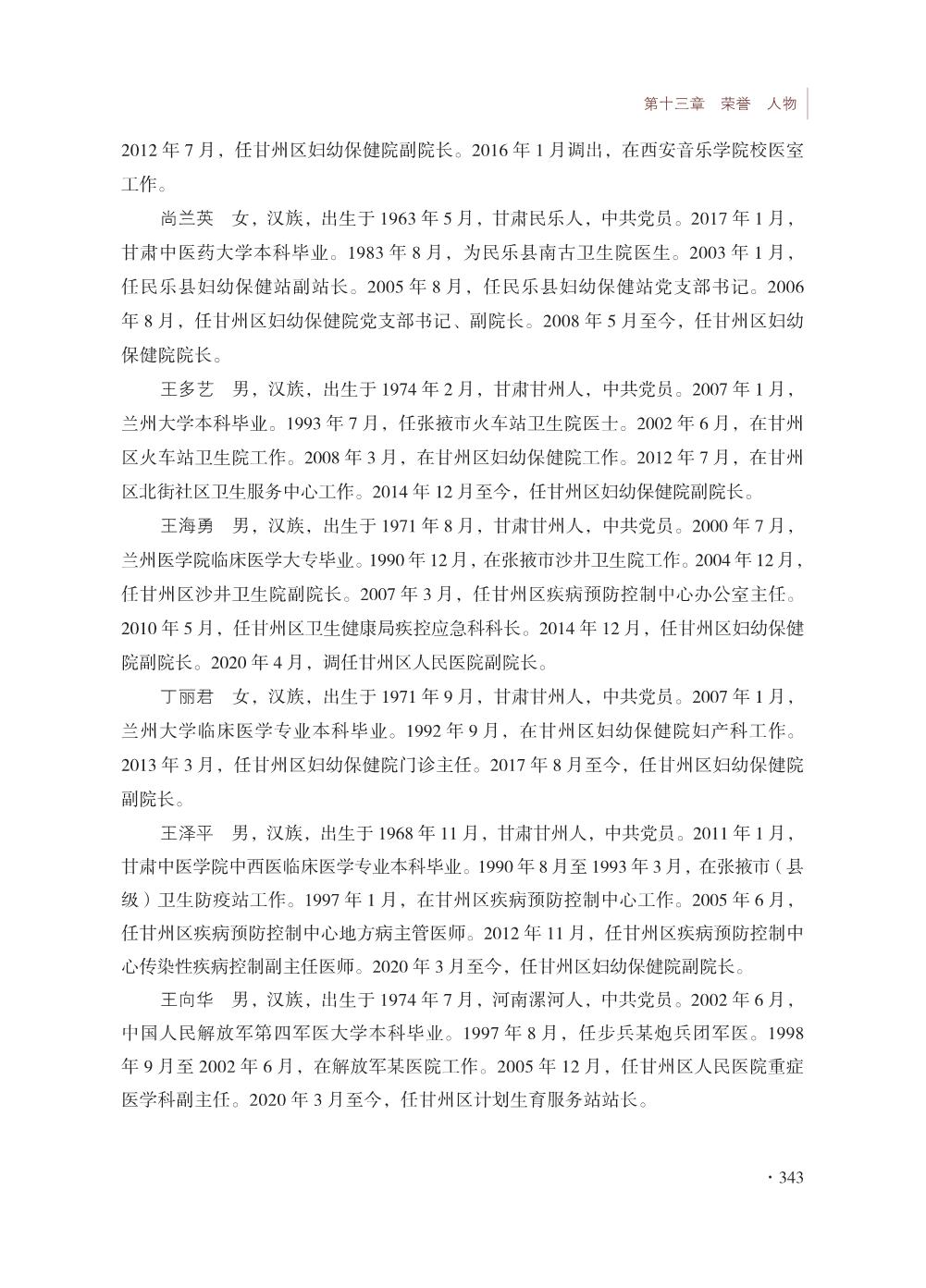 甘州区妇幼保健院志-第十三章 荣誉 人物