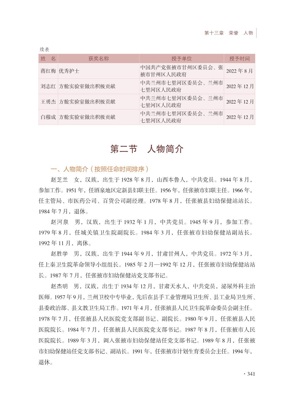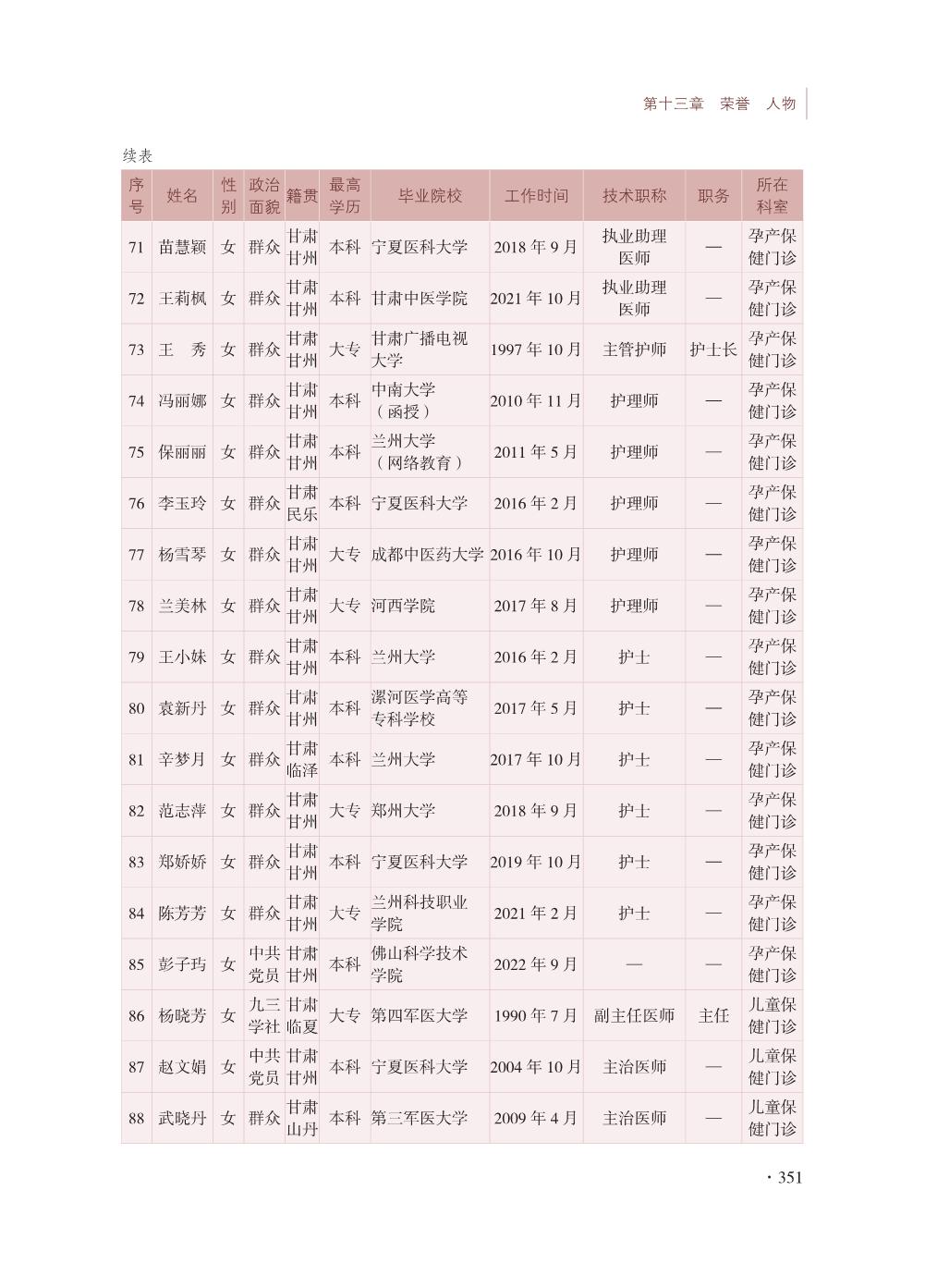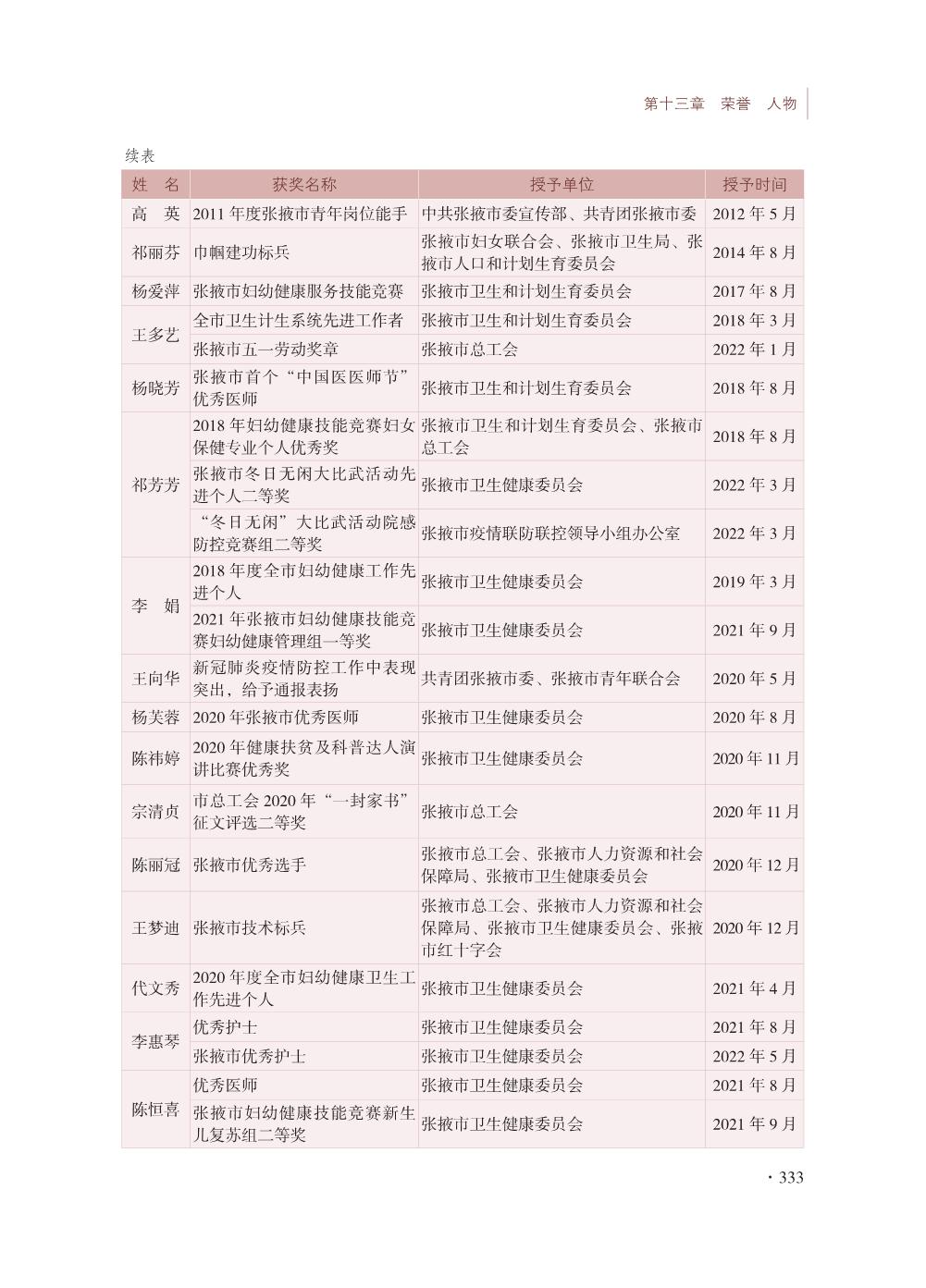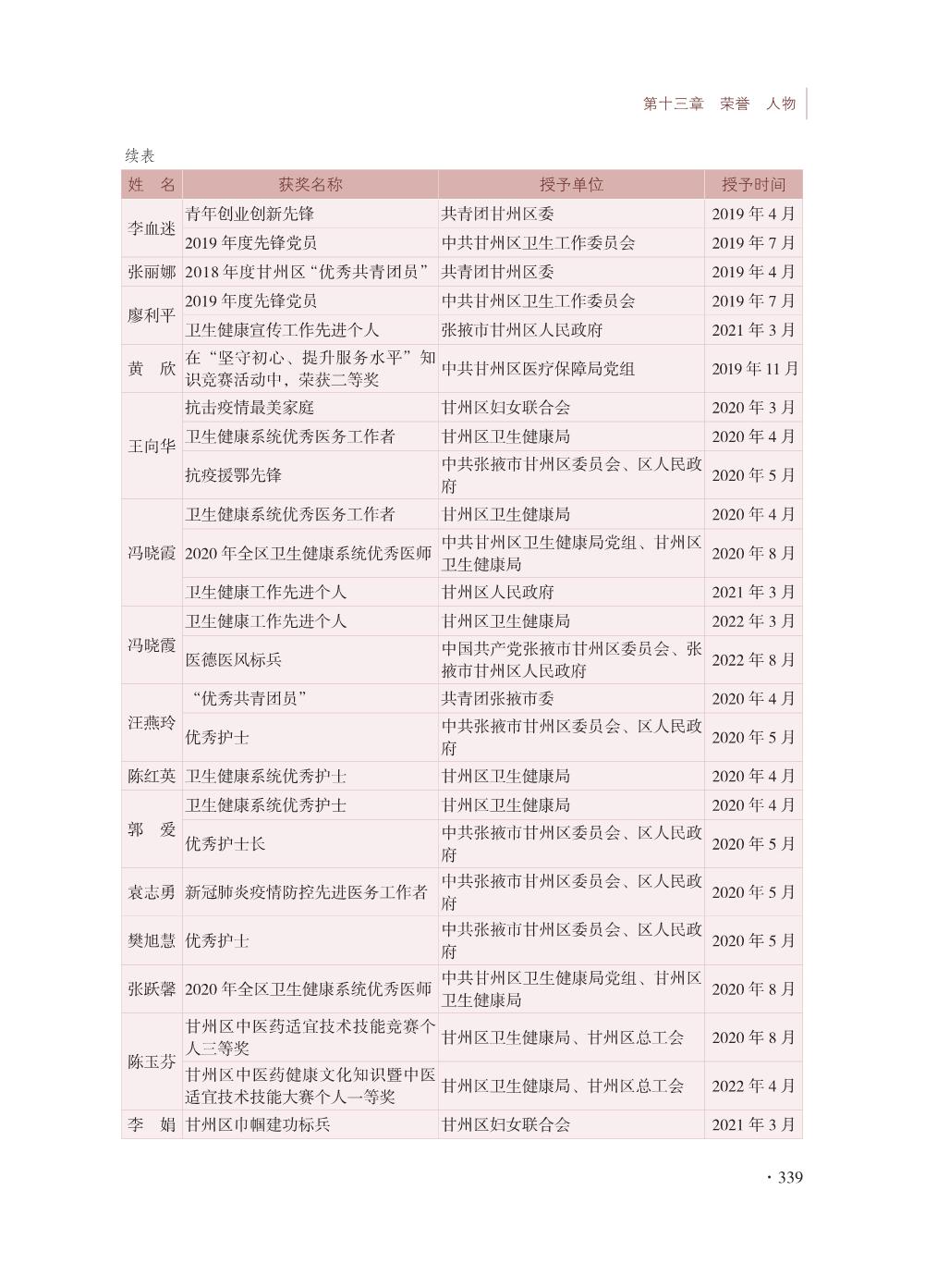 甘州区妇幼保健院志-第十三章 荣誉 人物