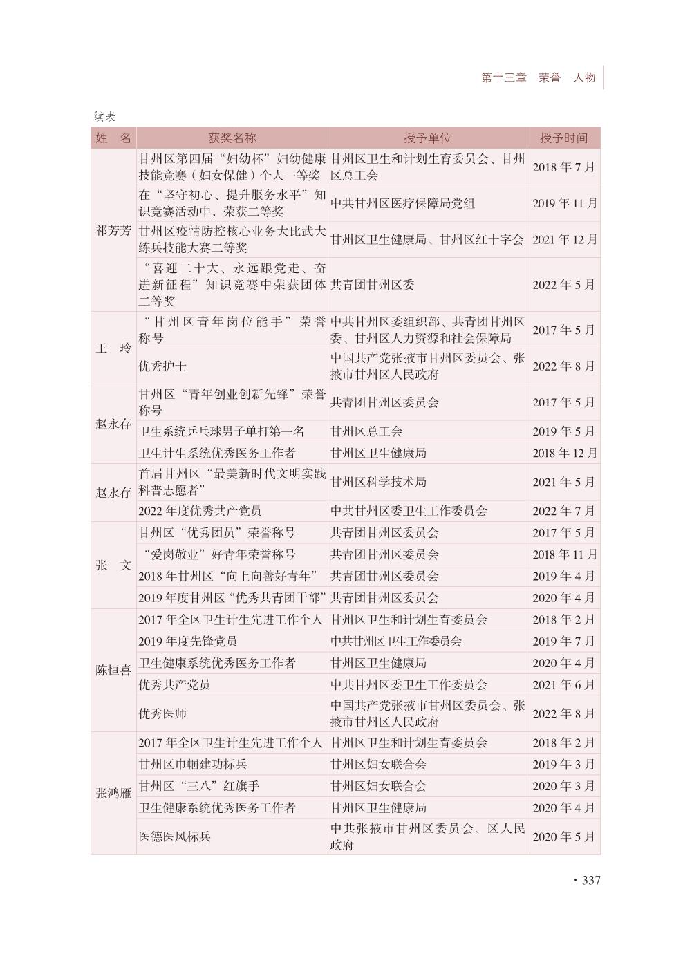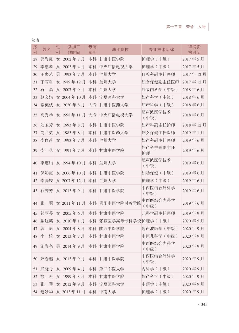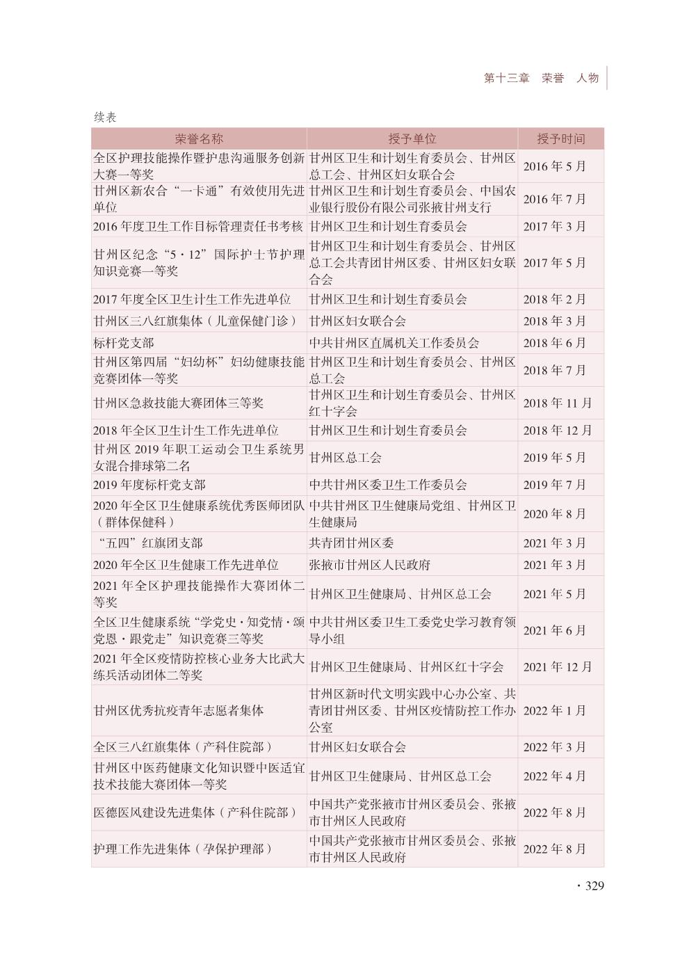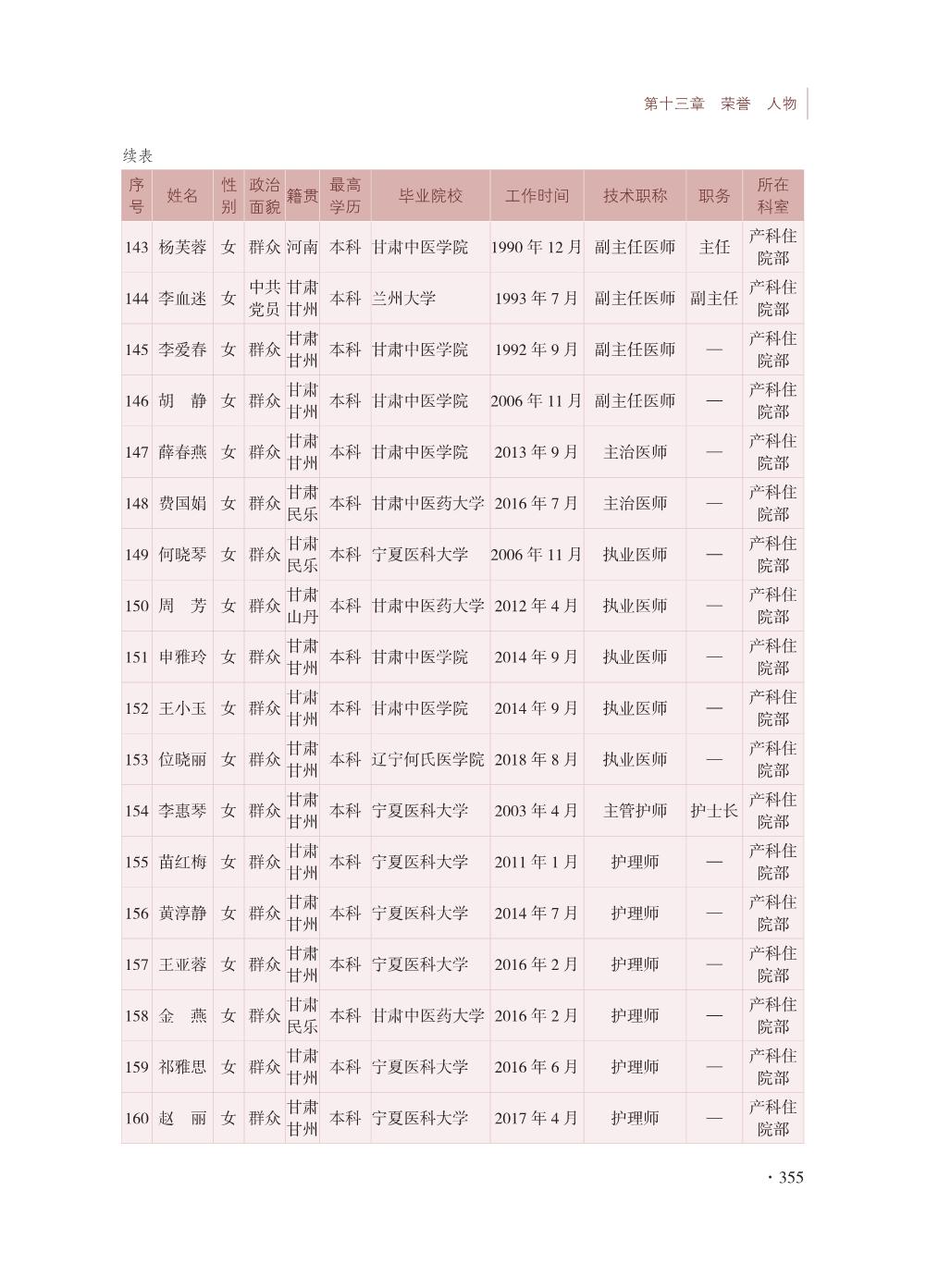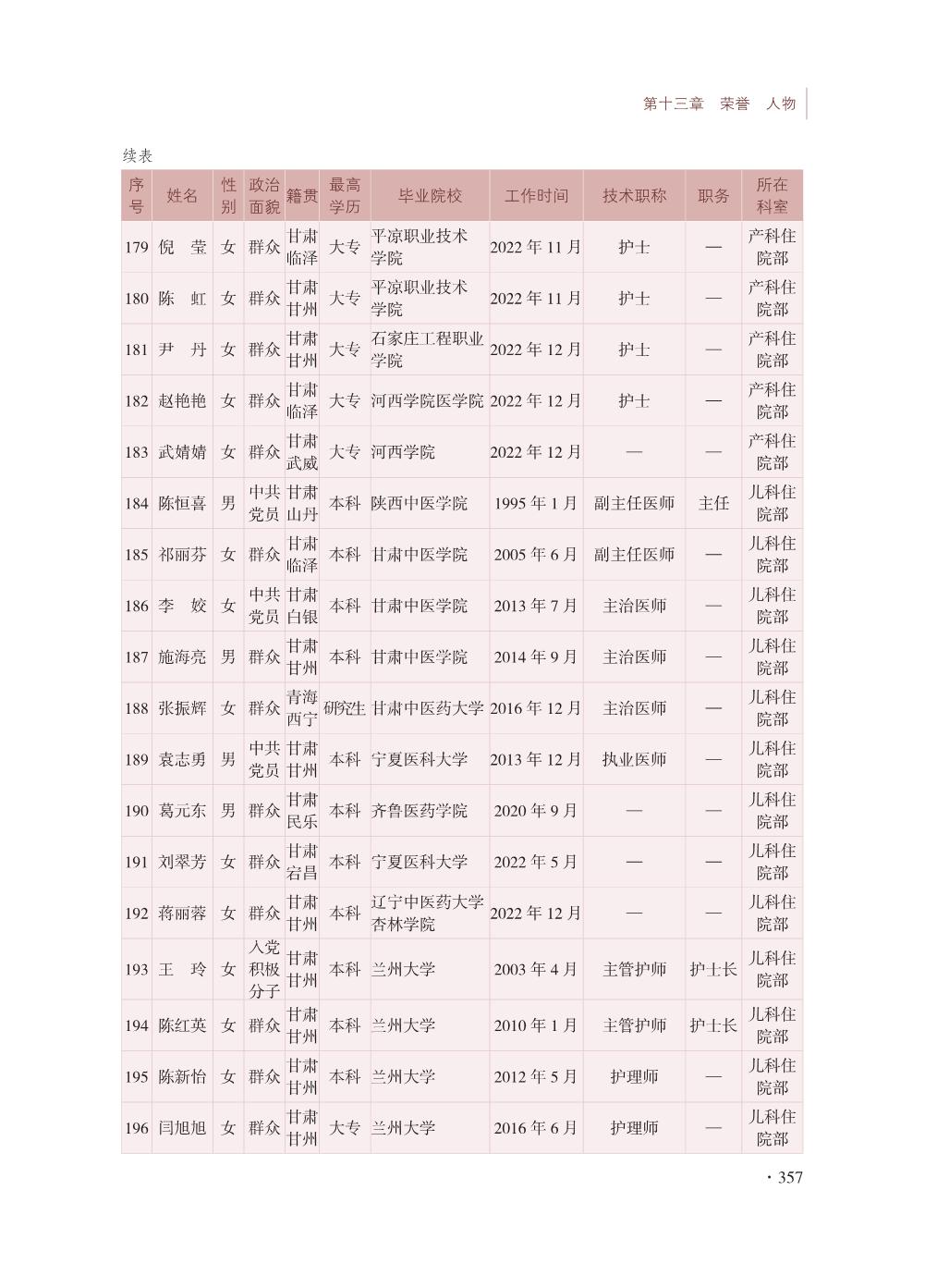 甘州区妇幼保健院志-第十三章 荣誉 人物