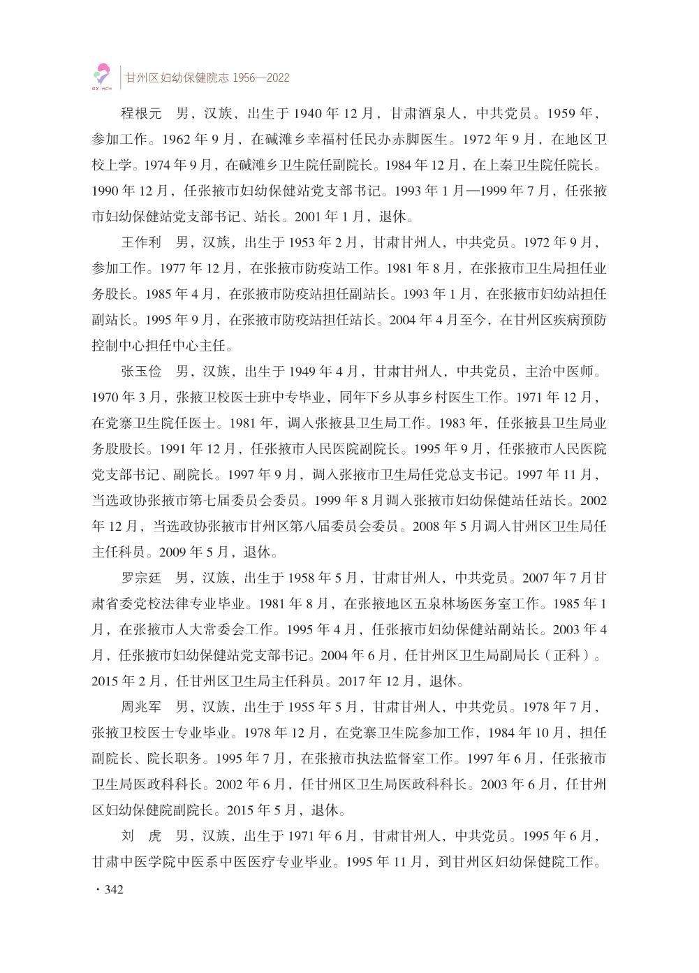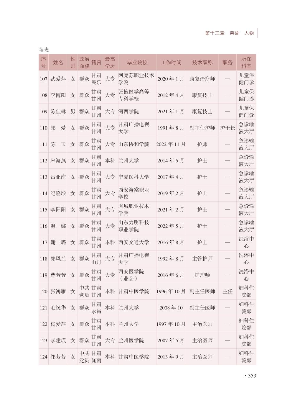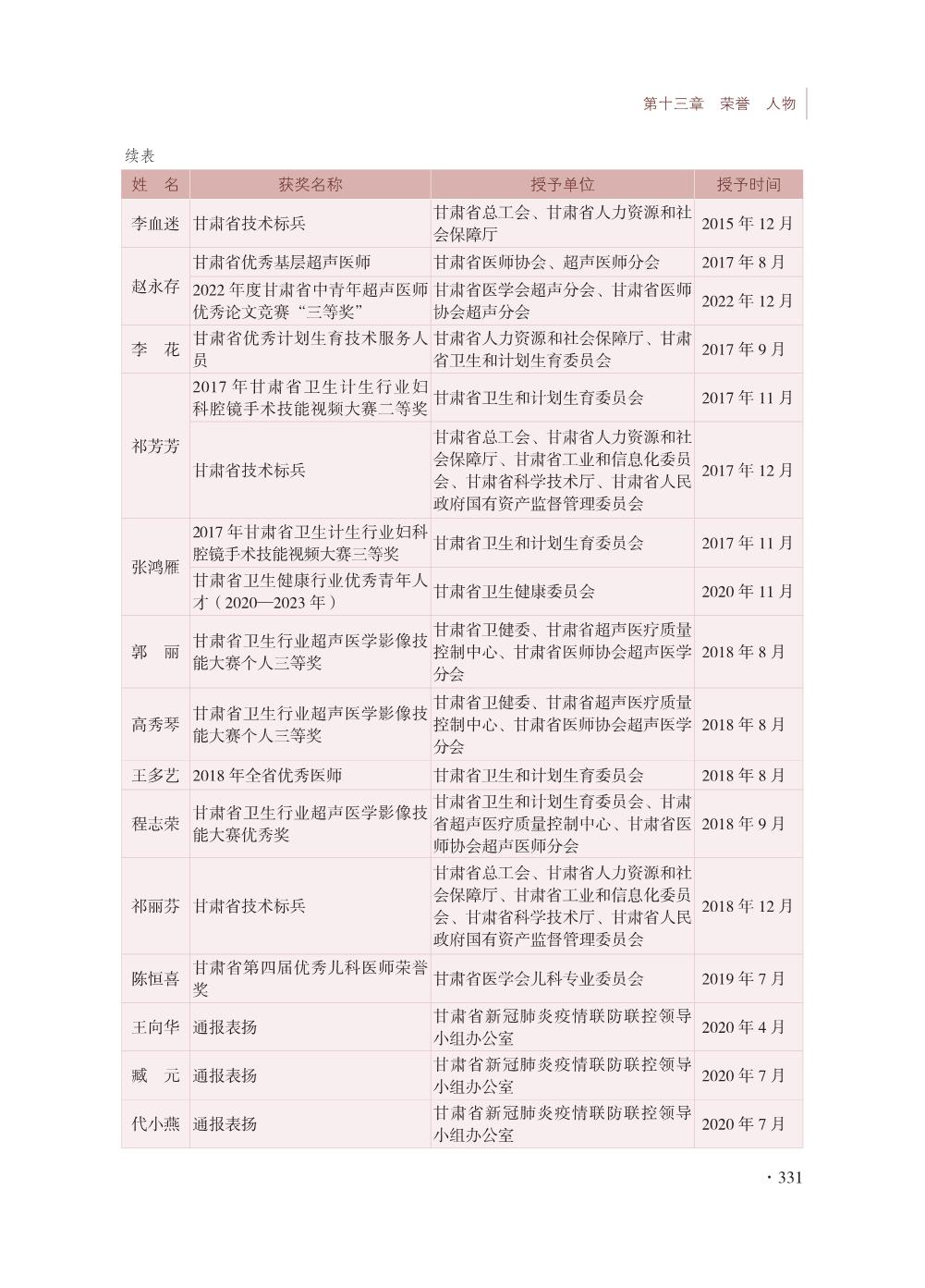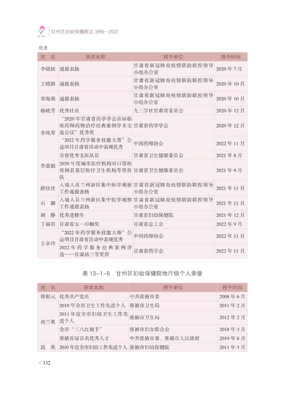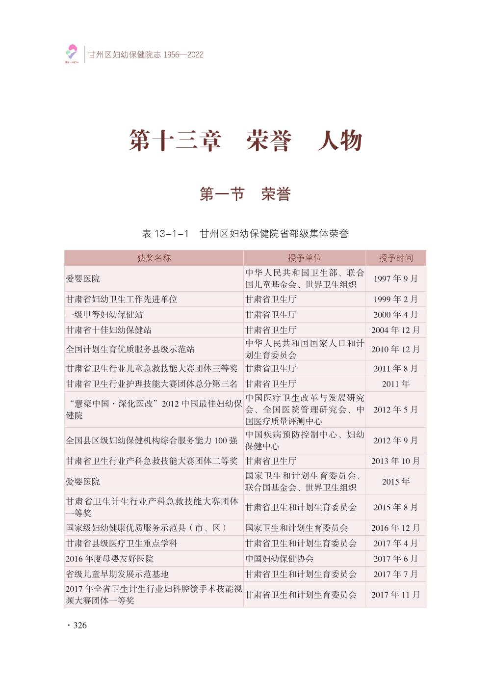 甘州区妇幼保健院志-第十三章 荣誉 人物