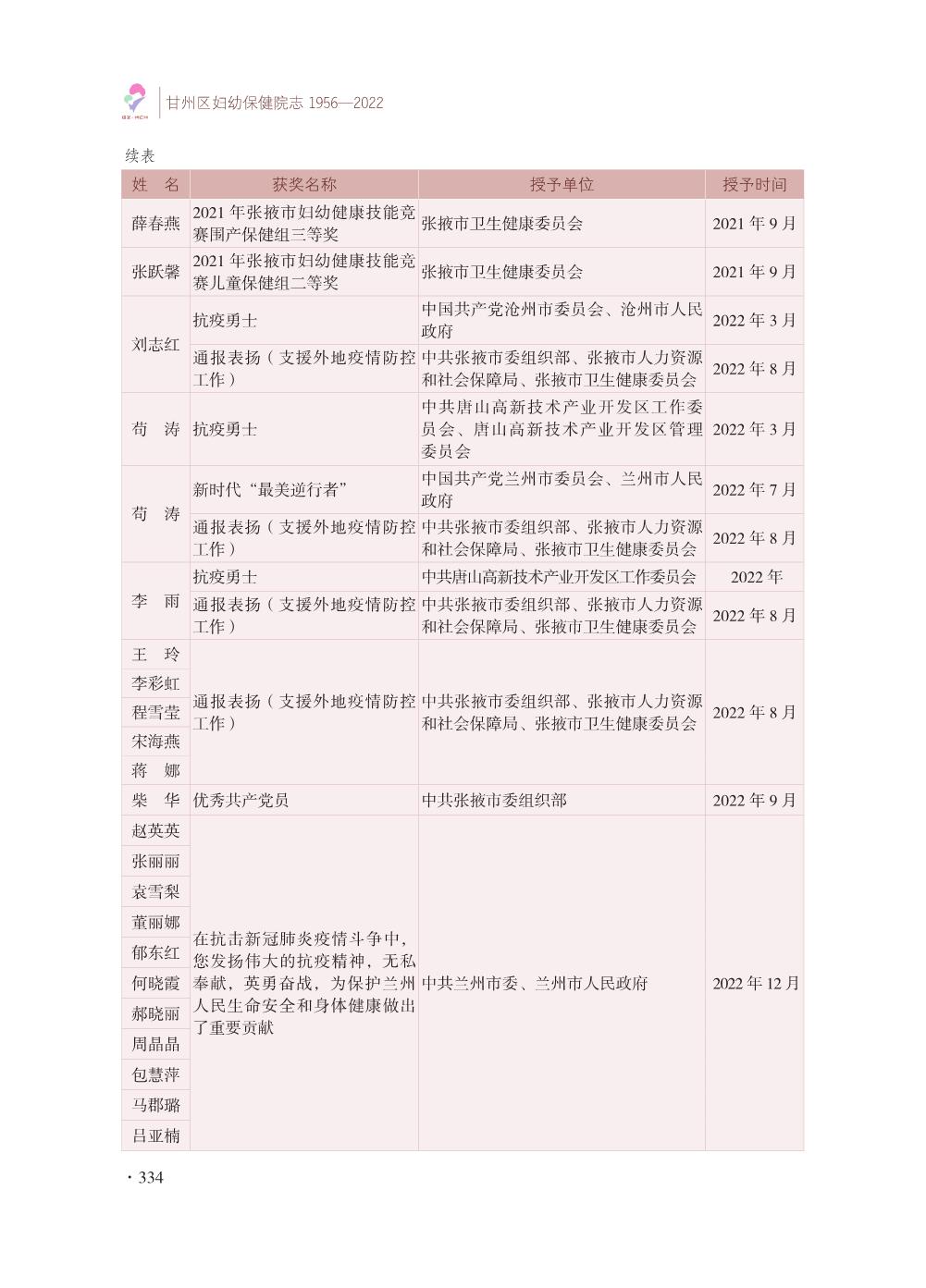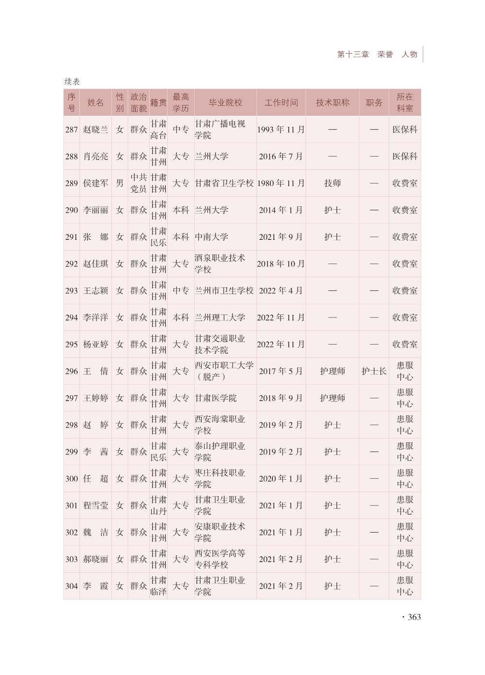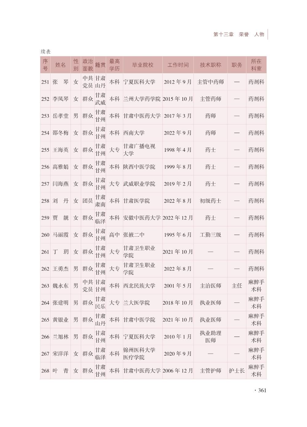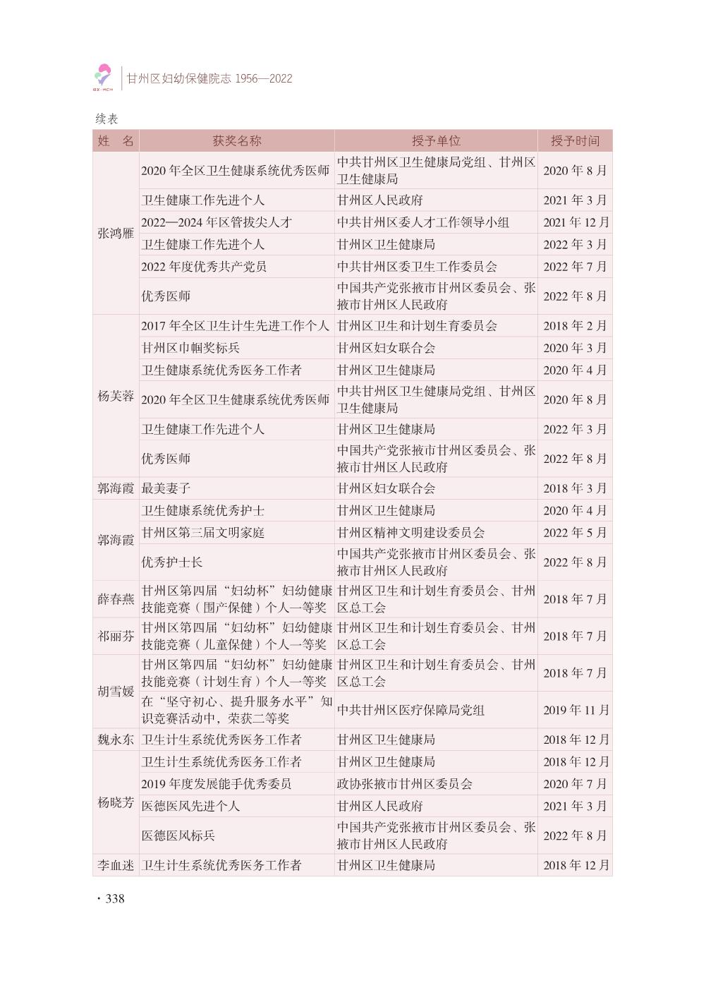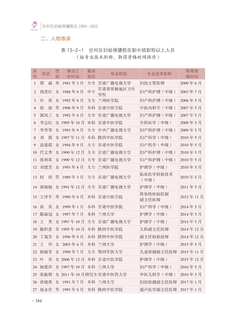 甘州区妇幼保健院志-第十三章 荣誉 人物