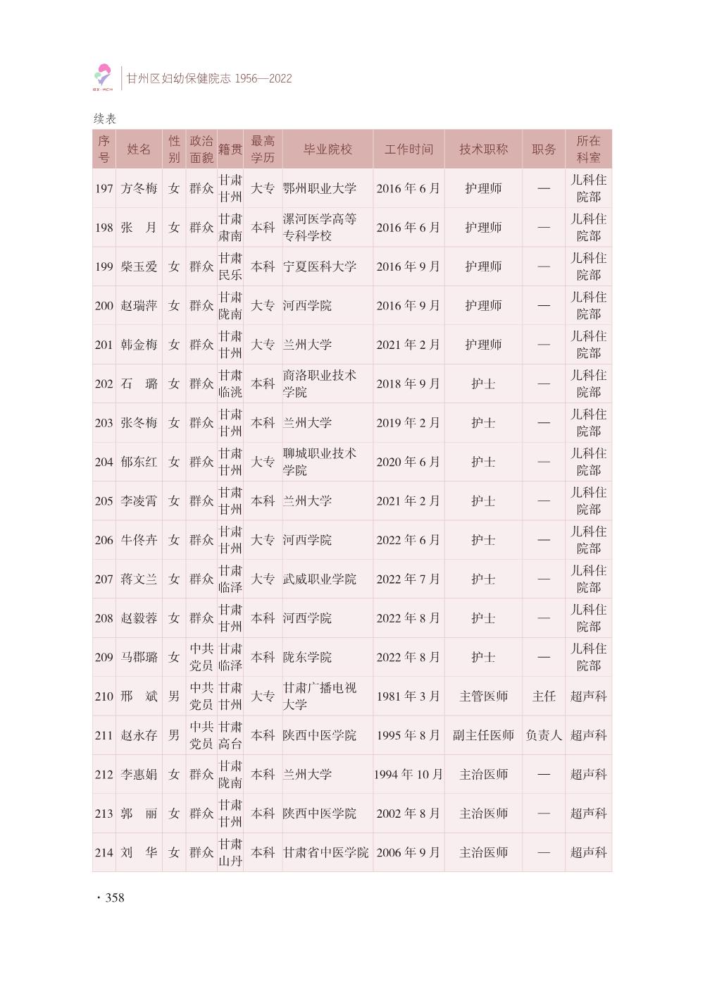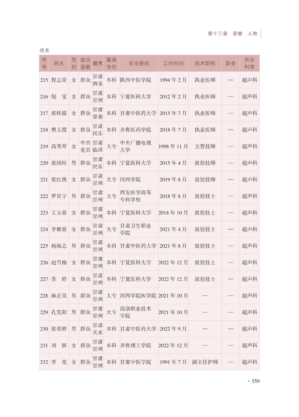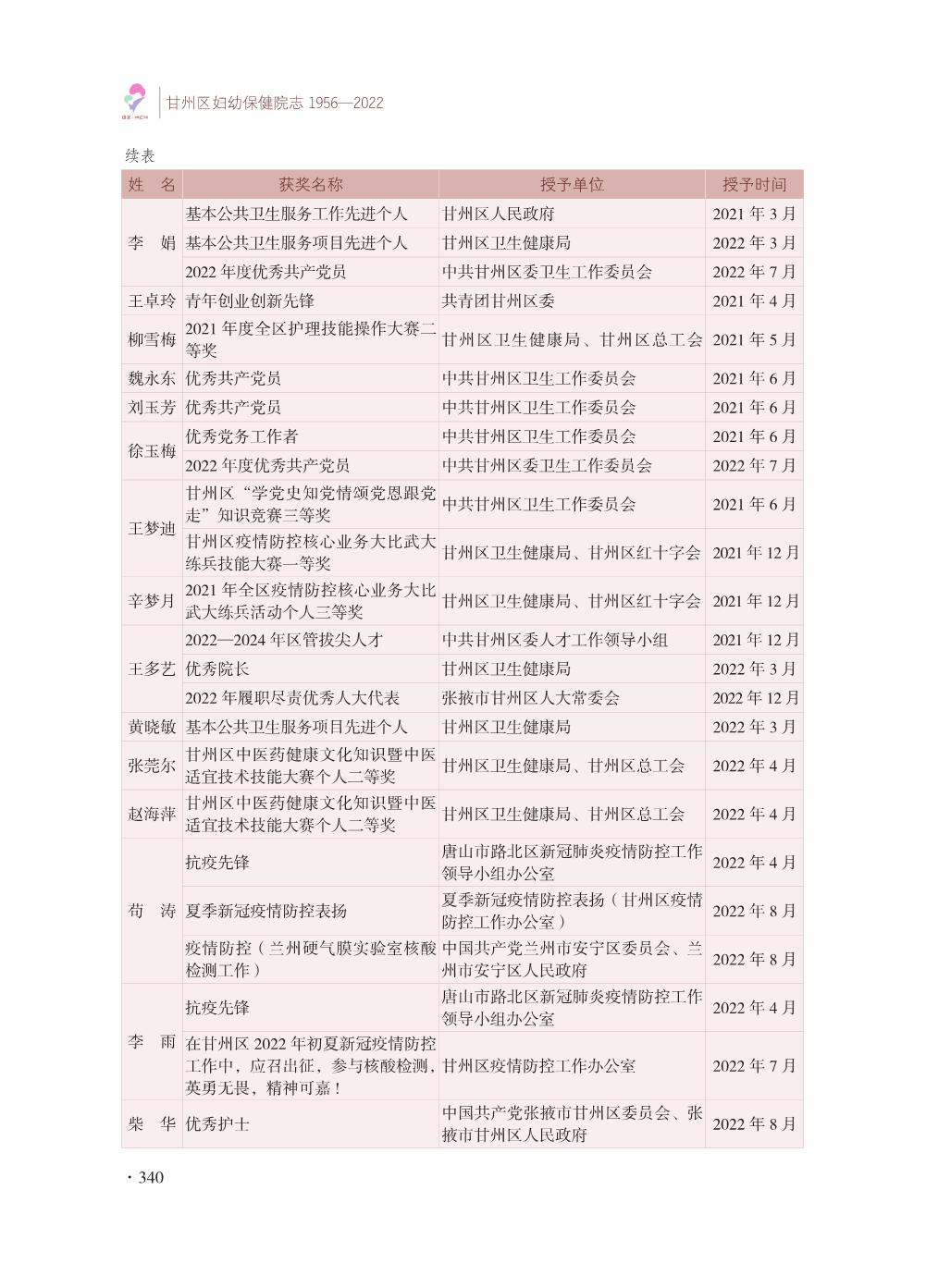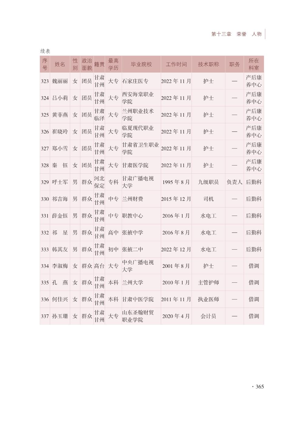 甘州区妇幼保健院志-第十三章 荣誉 人物