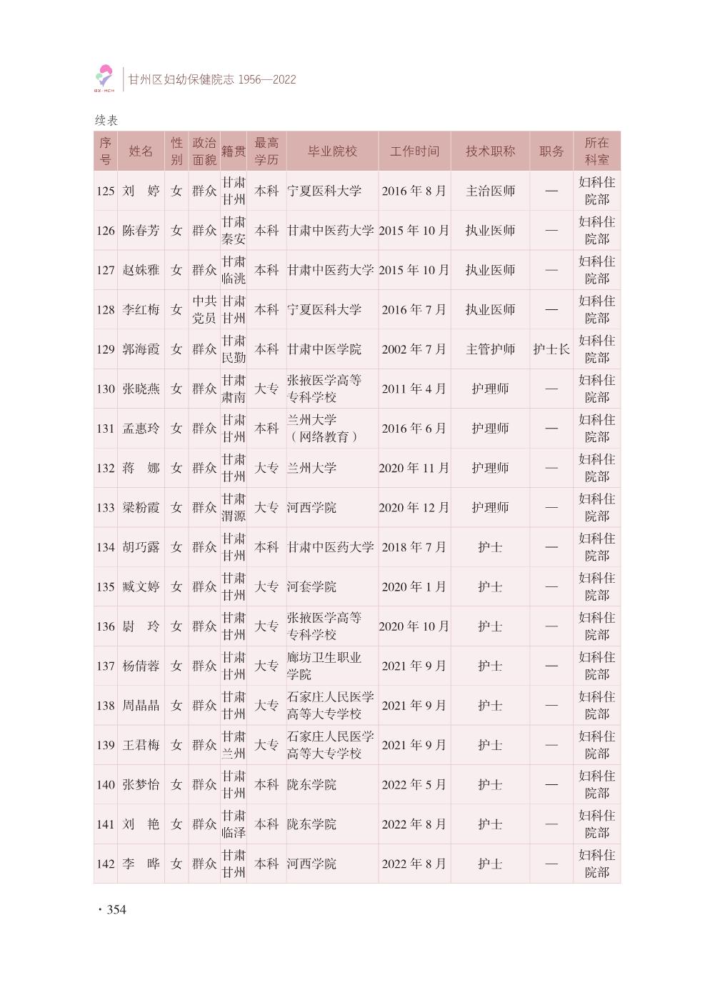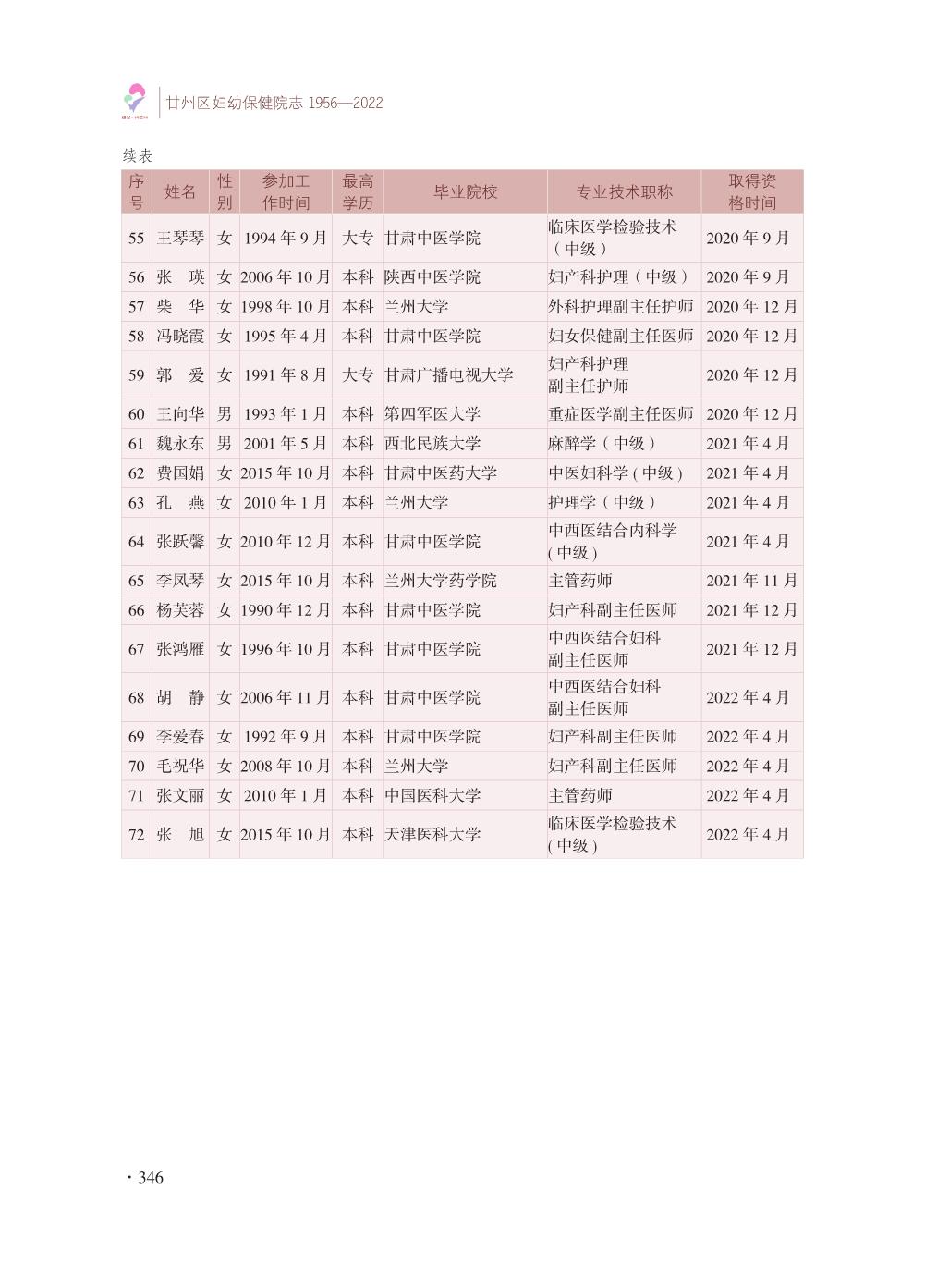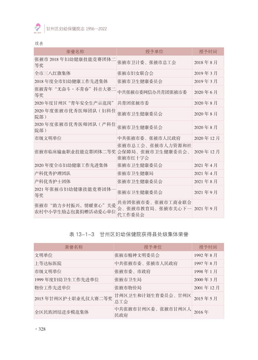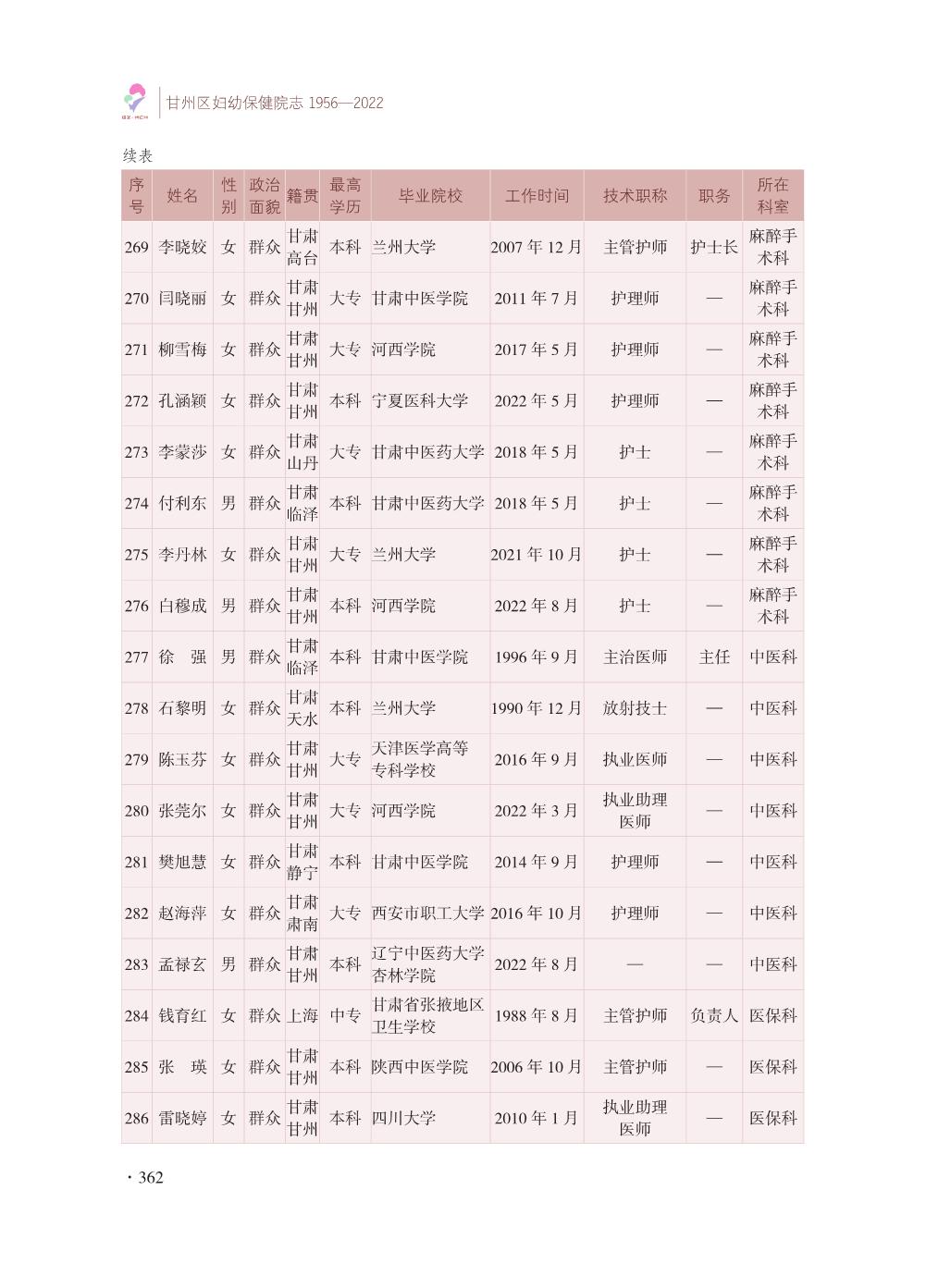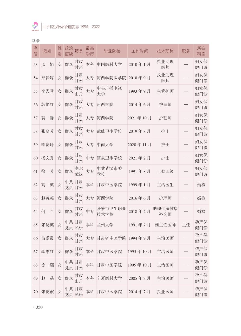 甘州区妇幼保健院志-第十三章 荣誉 人物