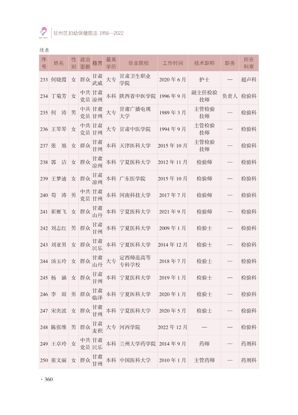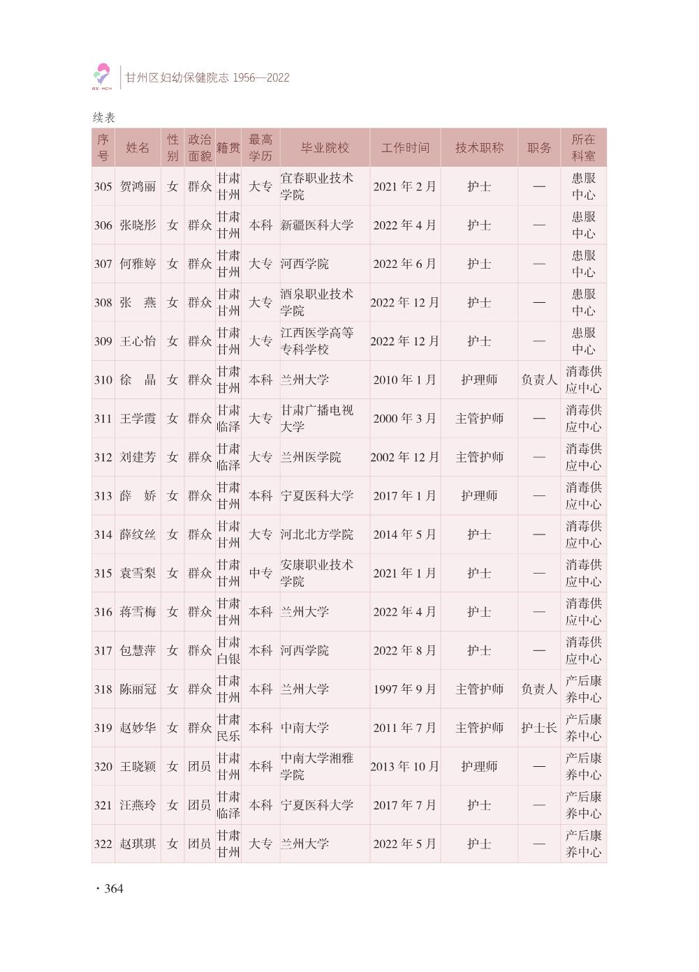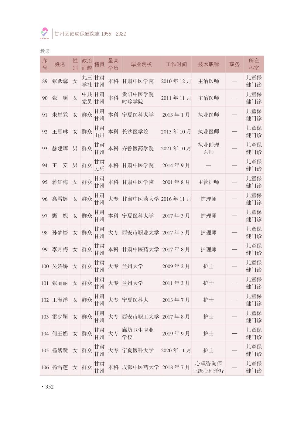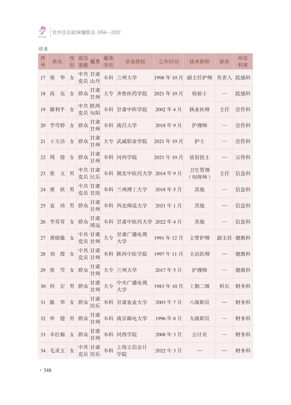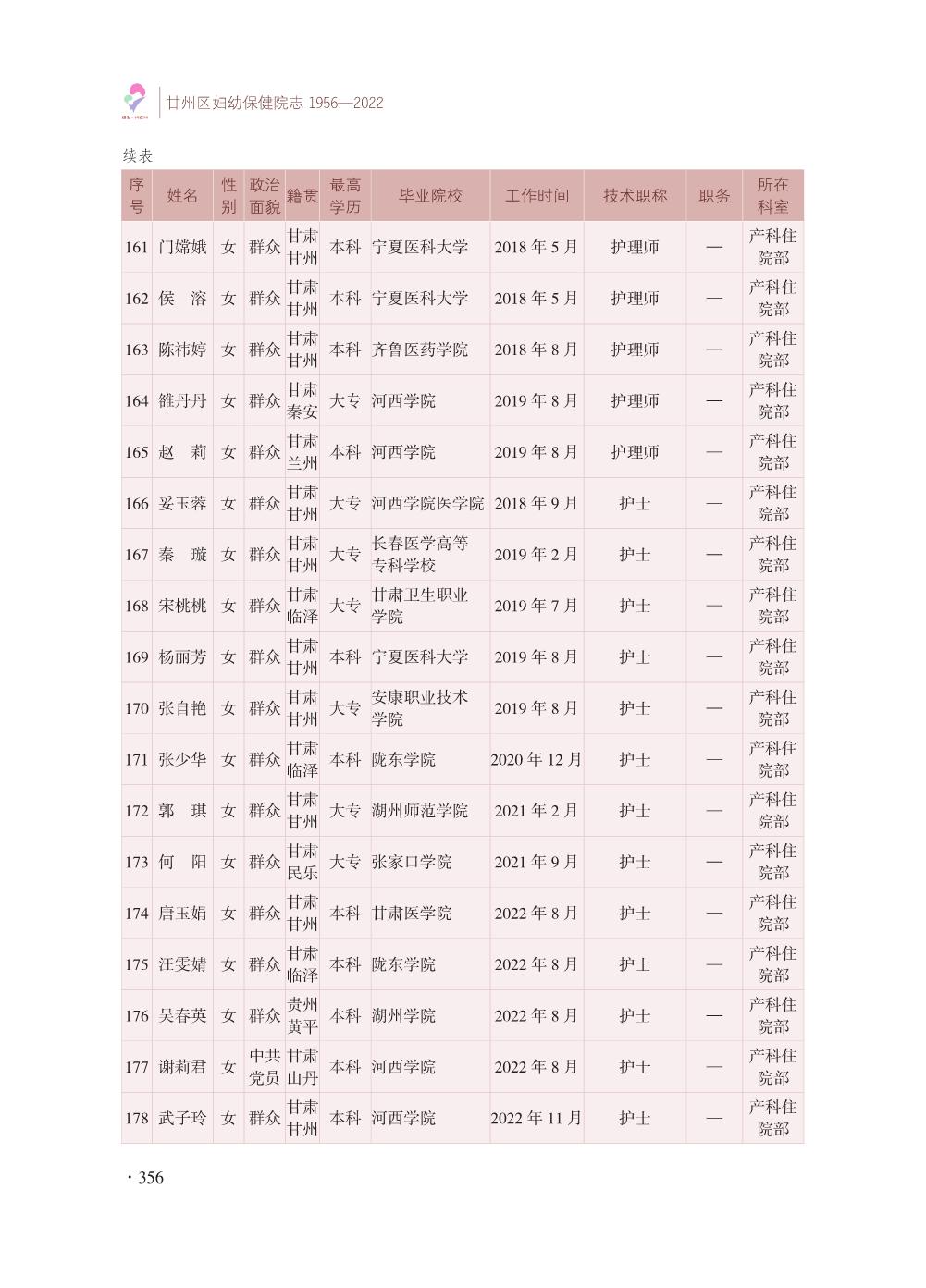 甘州区妇幼保健院志-第十三章 荣誉 人物