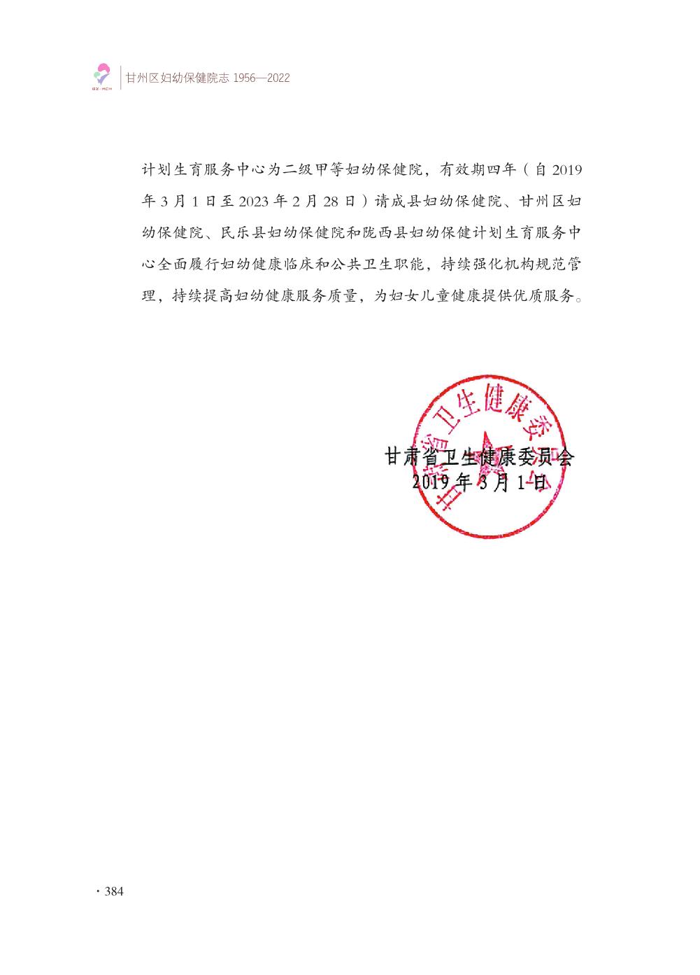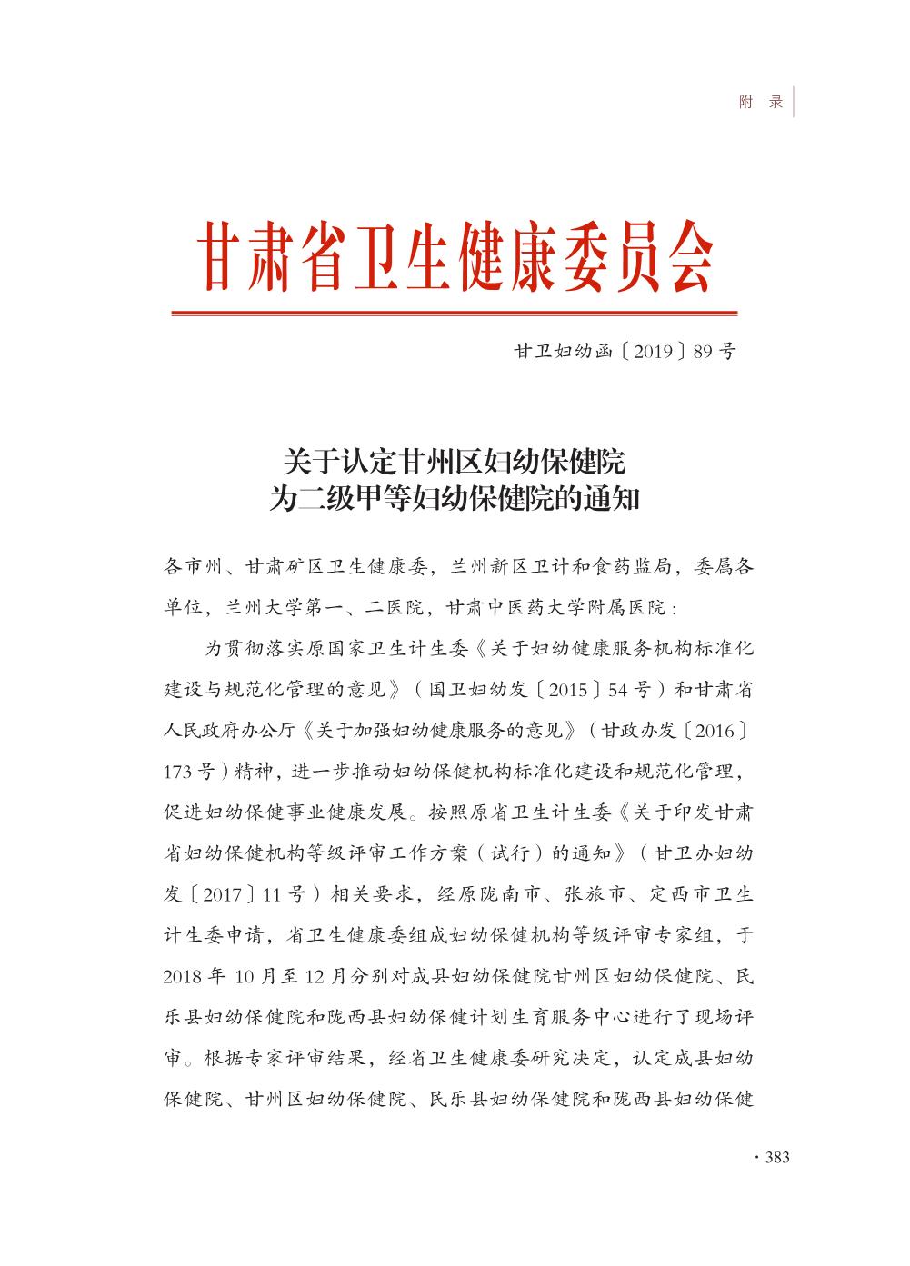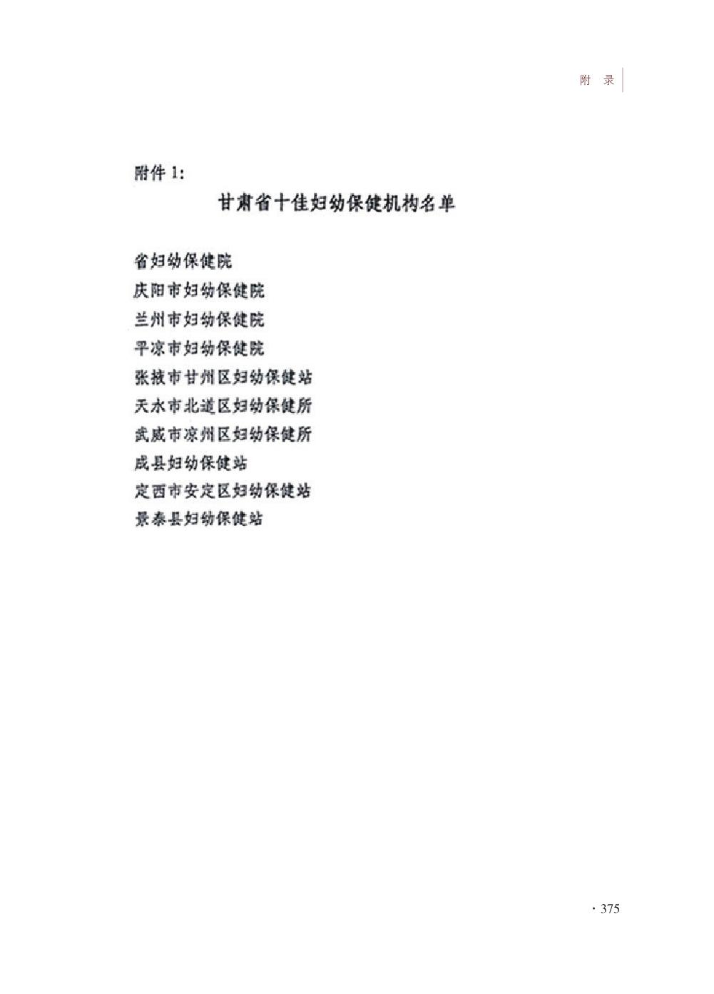 甘州区妇幼保健院志- 附录