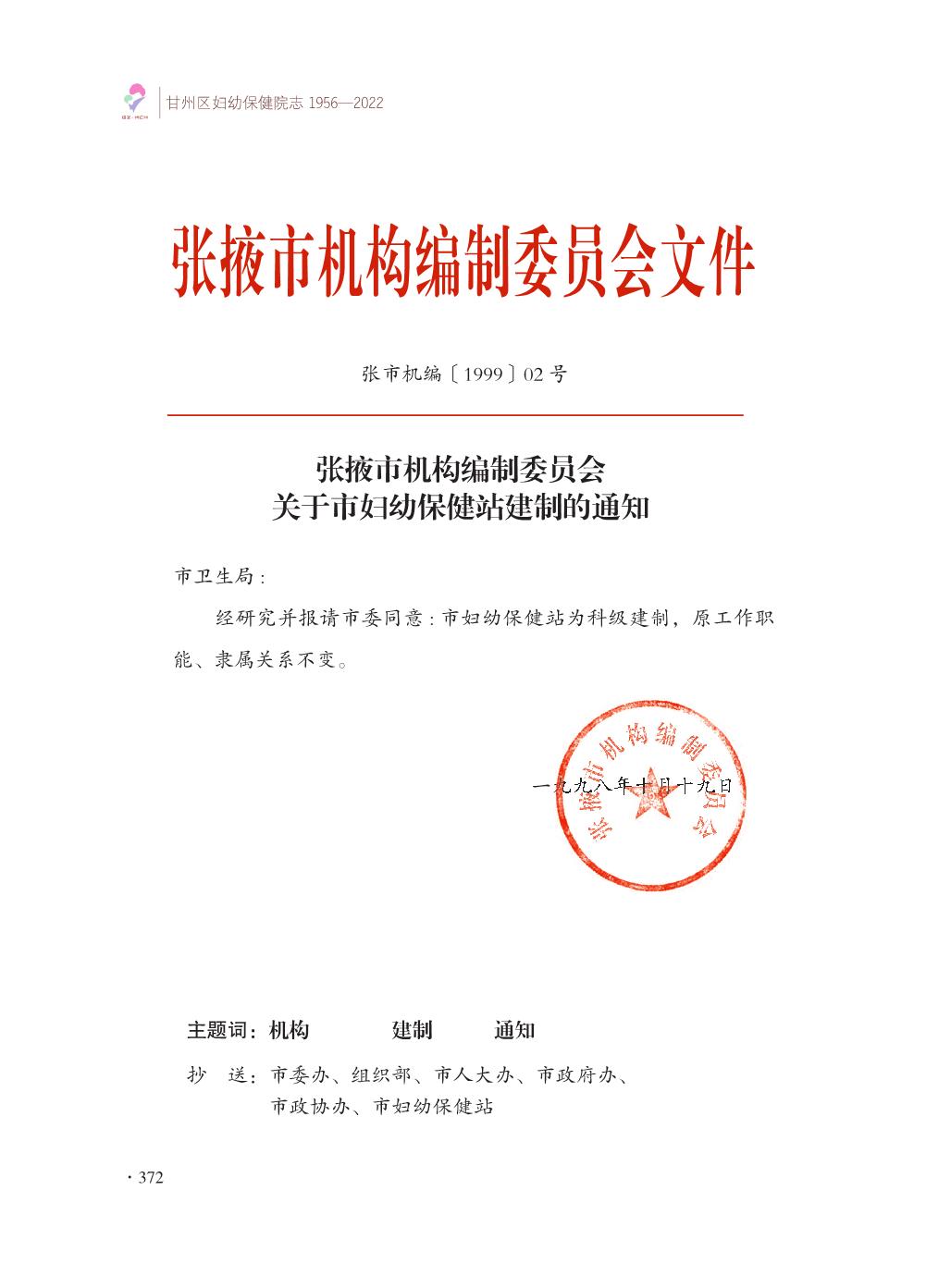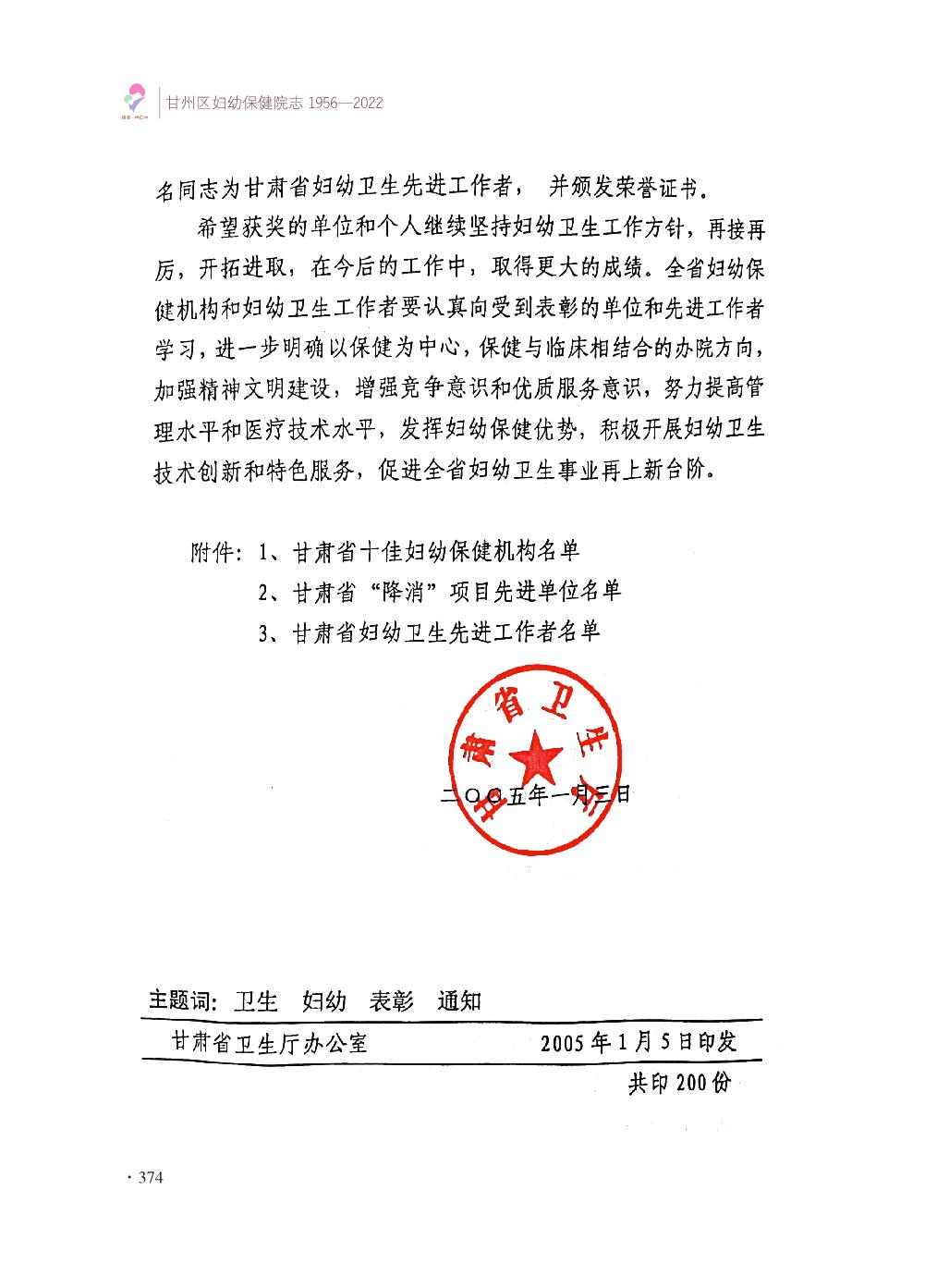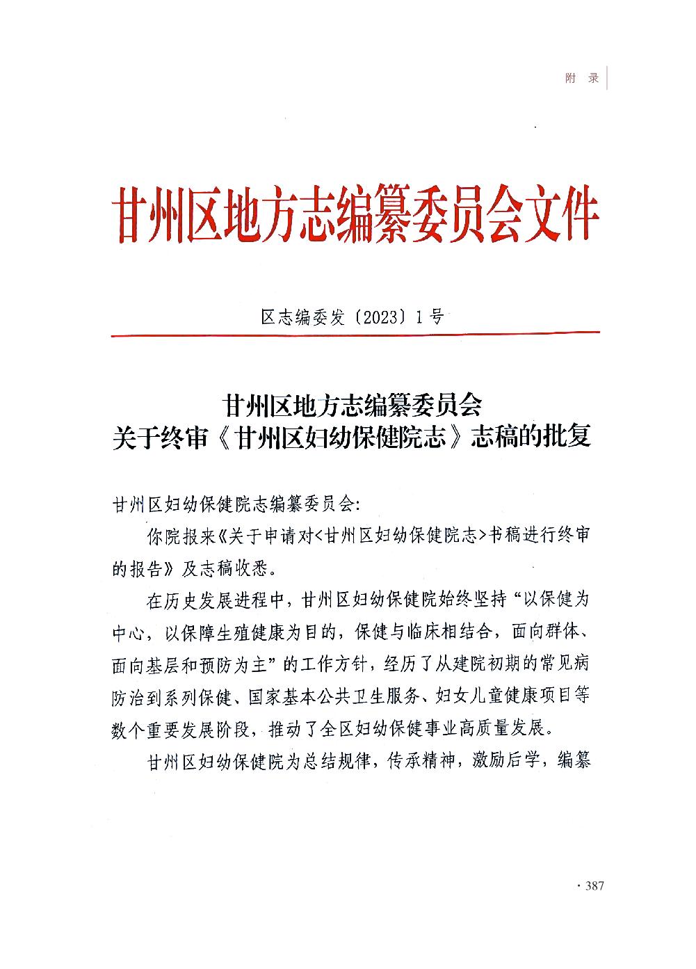 甘州区妇幼保健院志- 附录