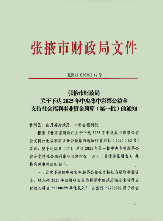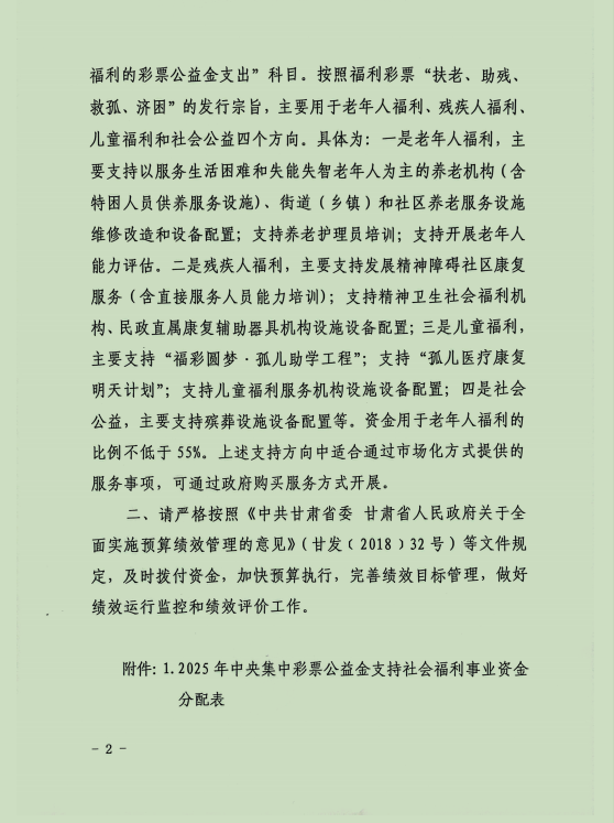关于下达2025年中央集中彩票公益金支持社会福利事业资金预算(第一批)的通知