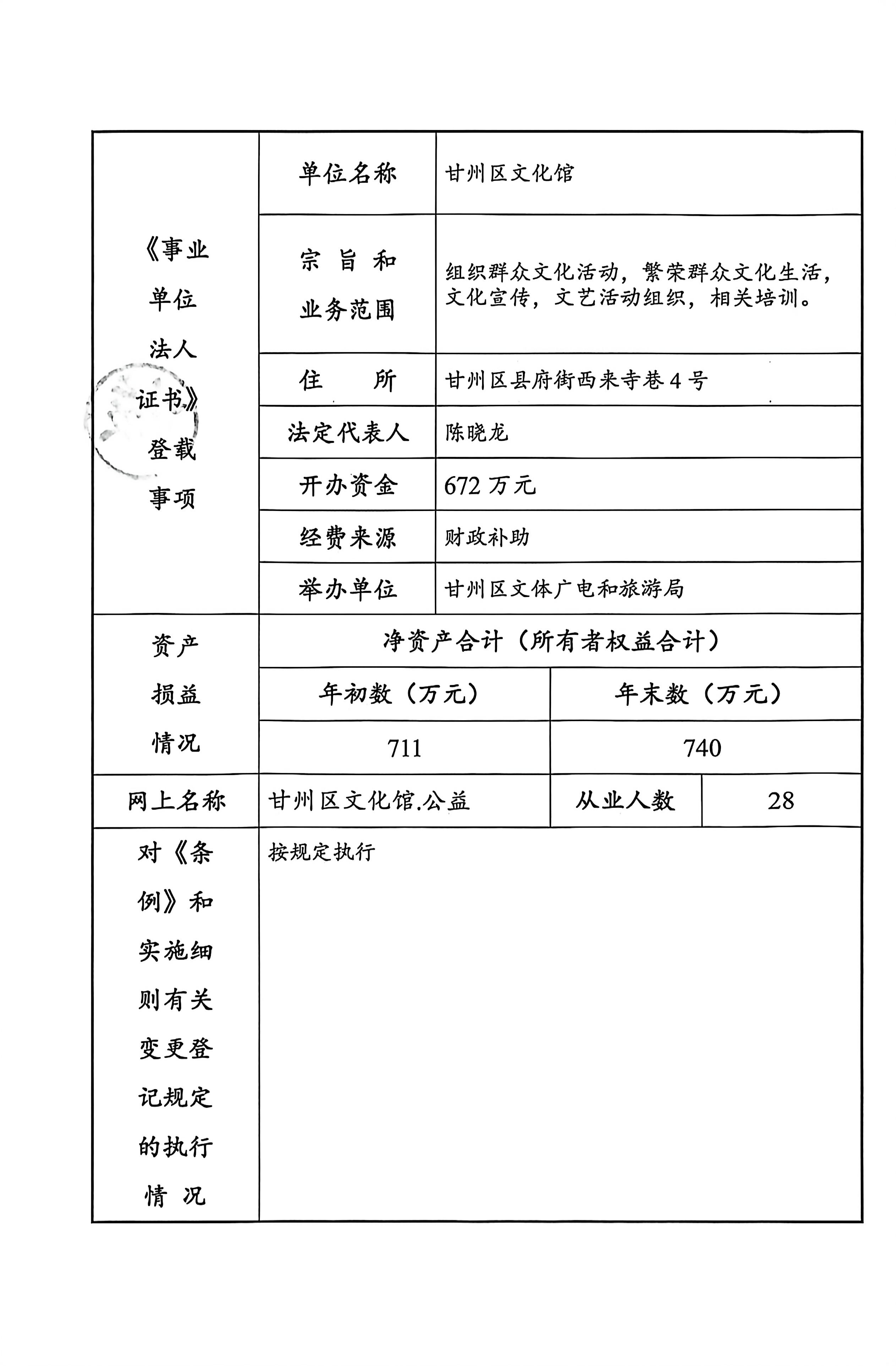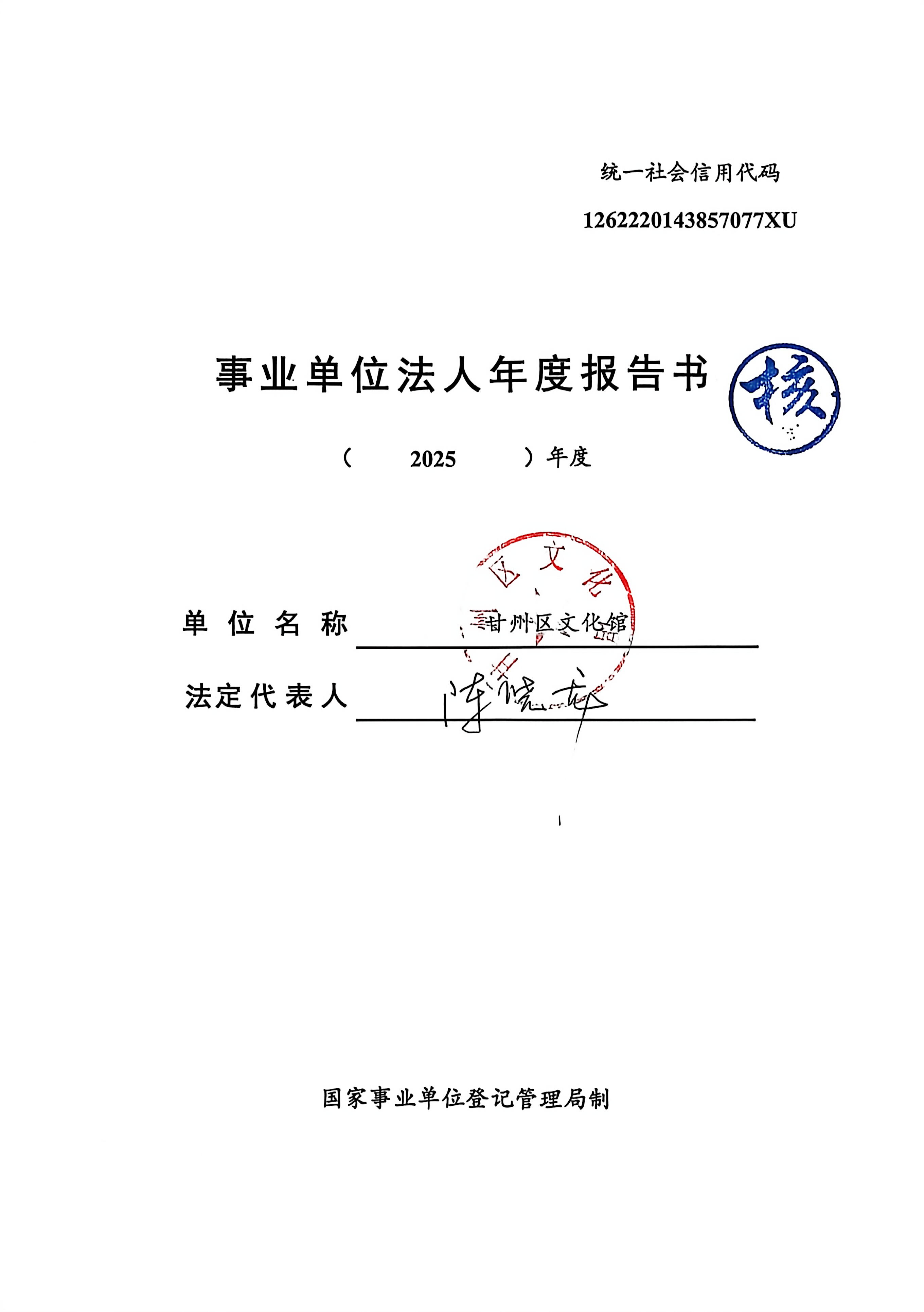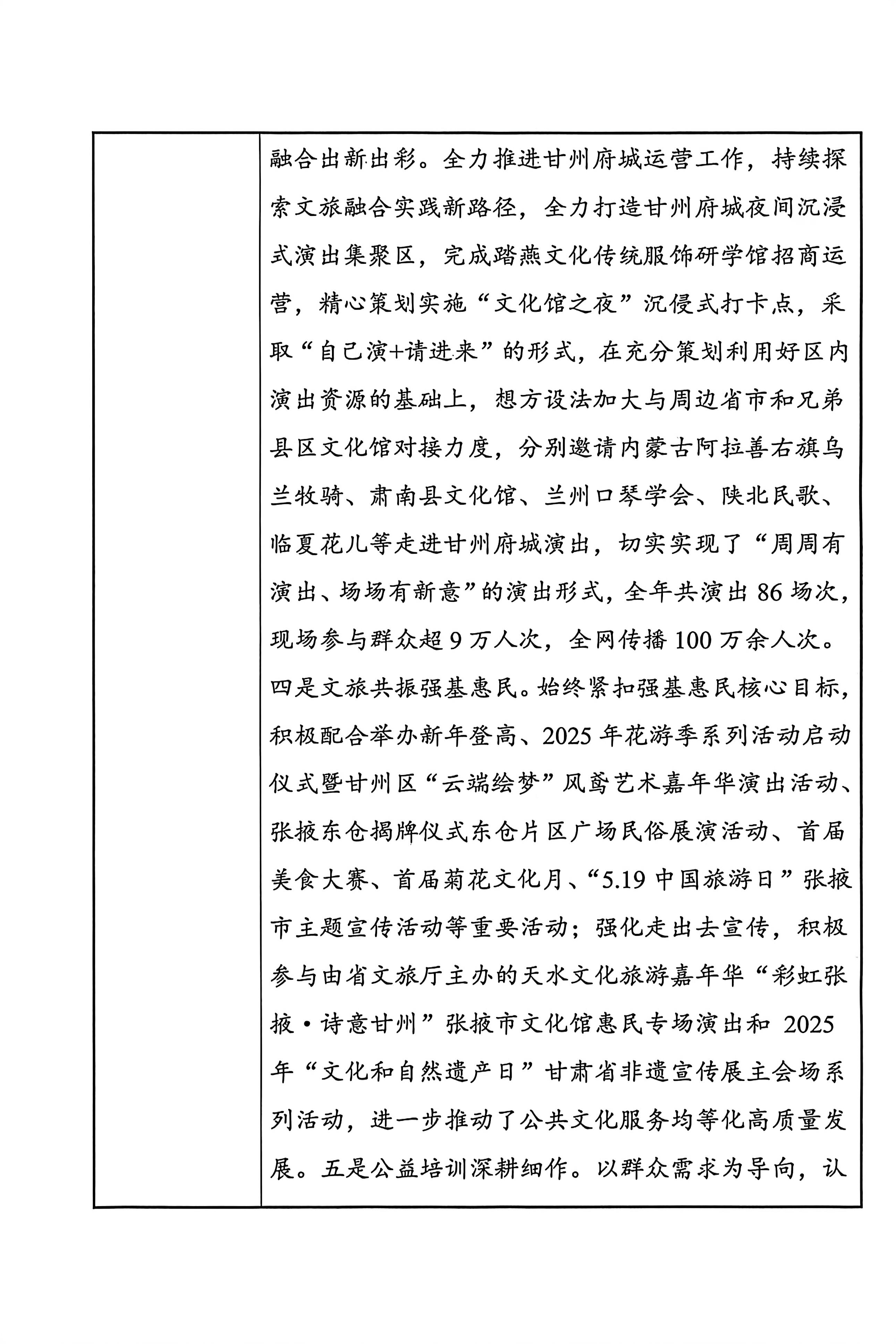 甘州区文化馆2025年度事业单位法人年度报告书