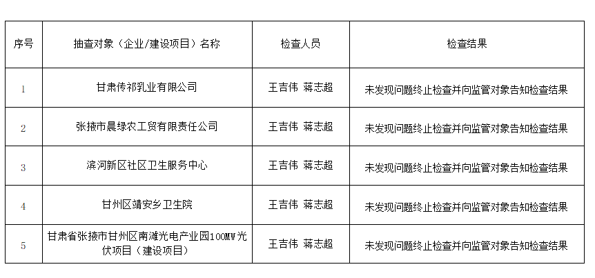 张掖市生态环境局甘州分局2025年9月“双随机、一公开”抽查检查结果公示(生态环境综合执法一体化管理平台)