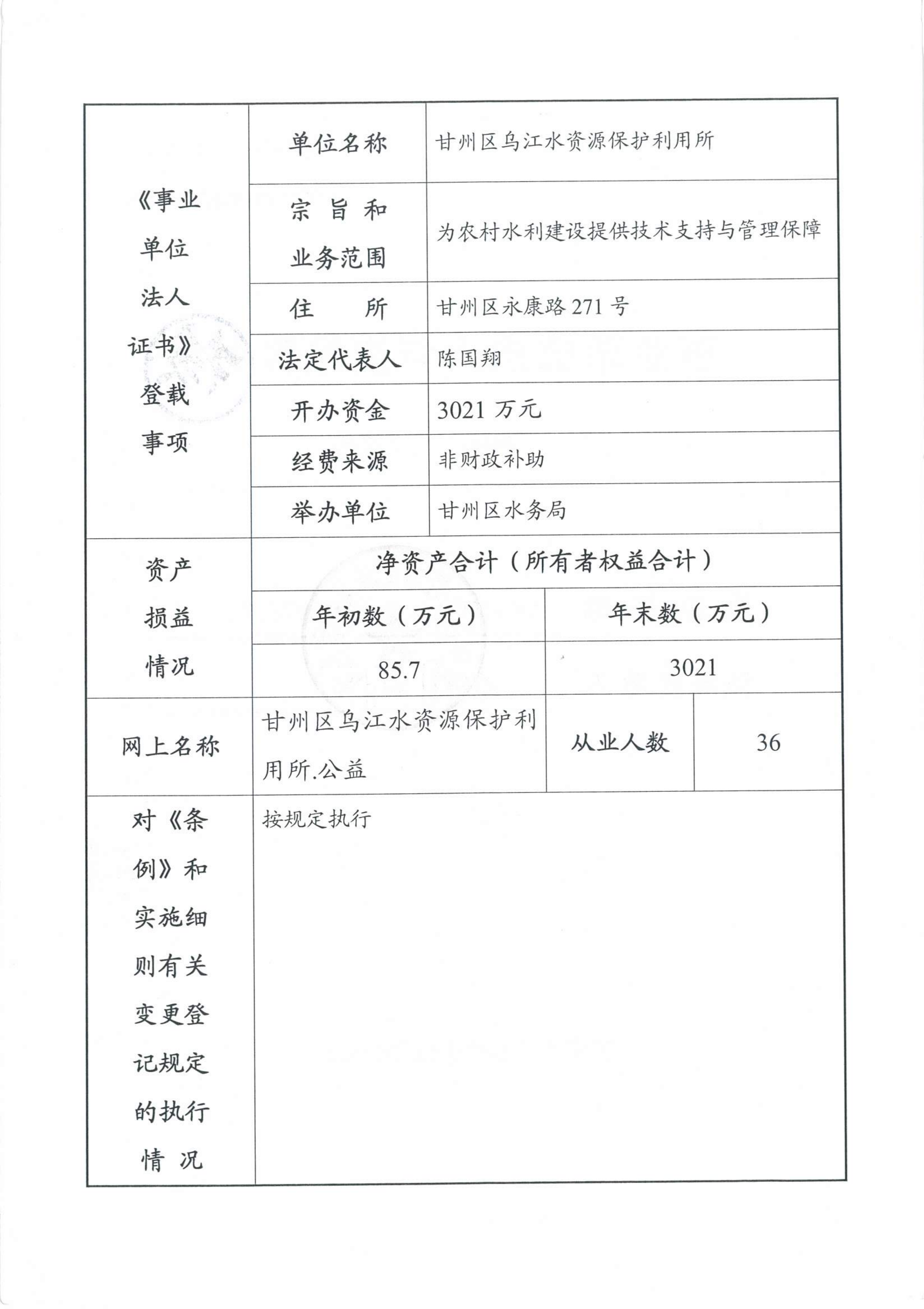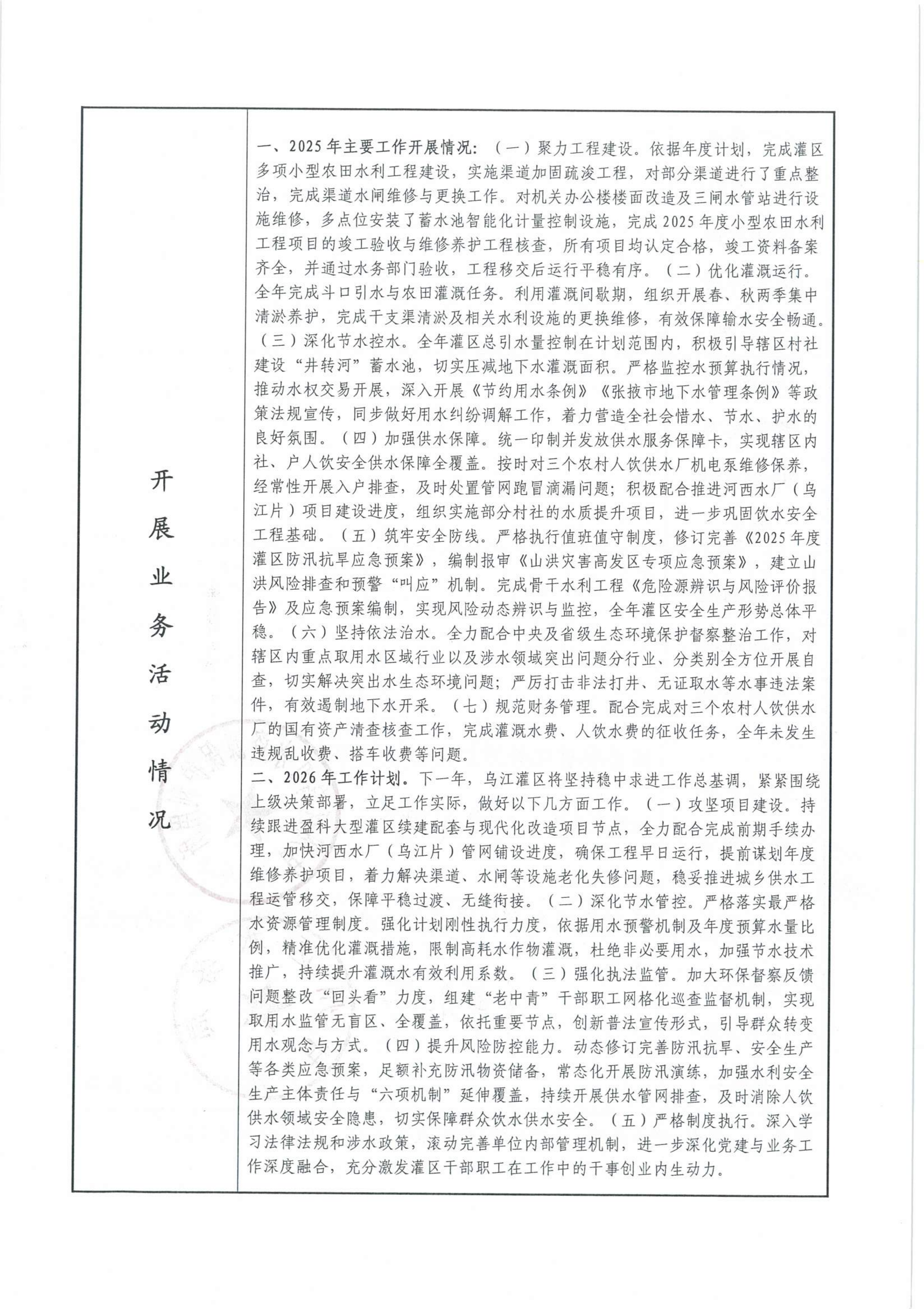 (甘州区乌江水资源保护利用所)2025年度事业单位法人年度报告书