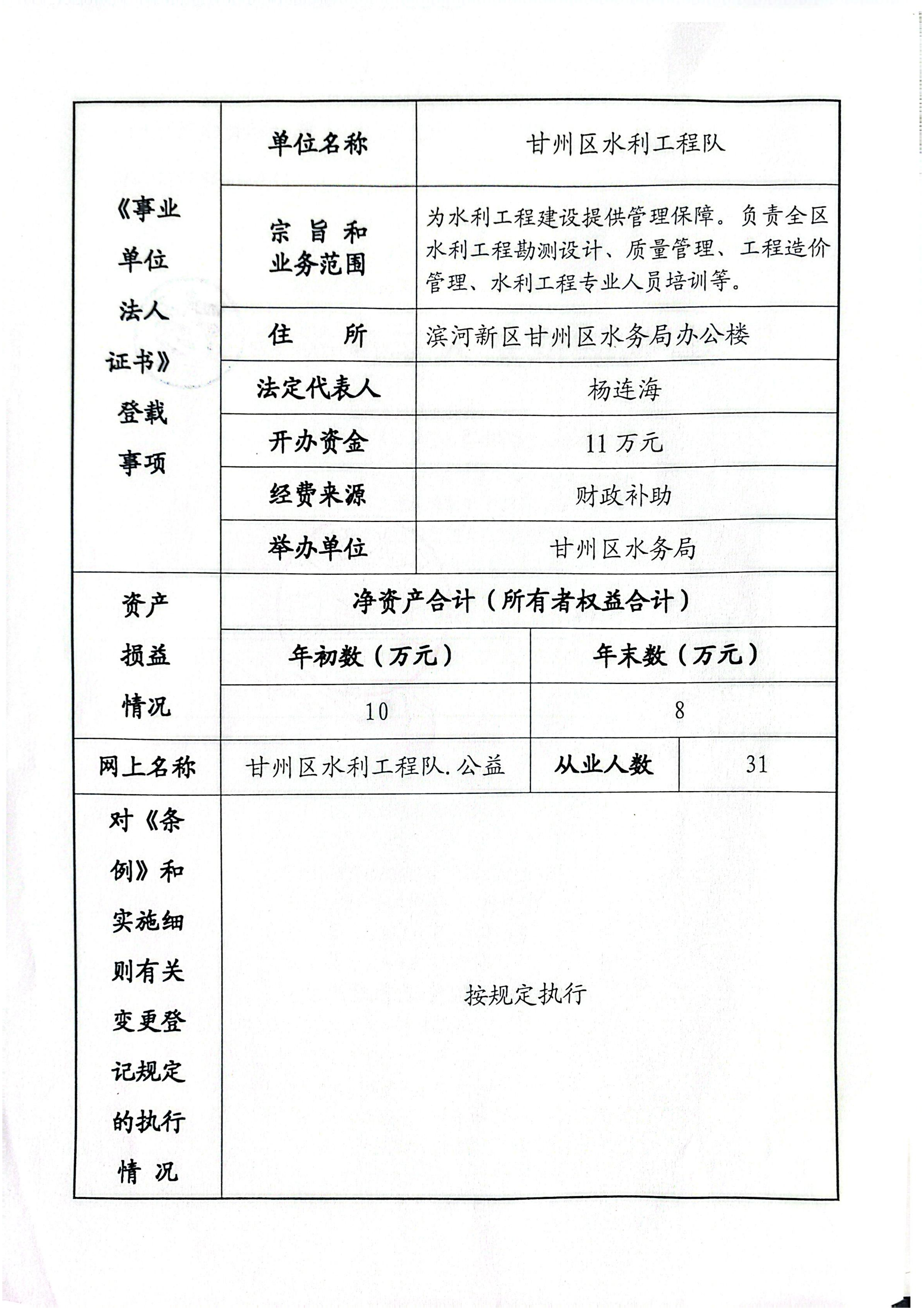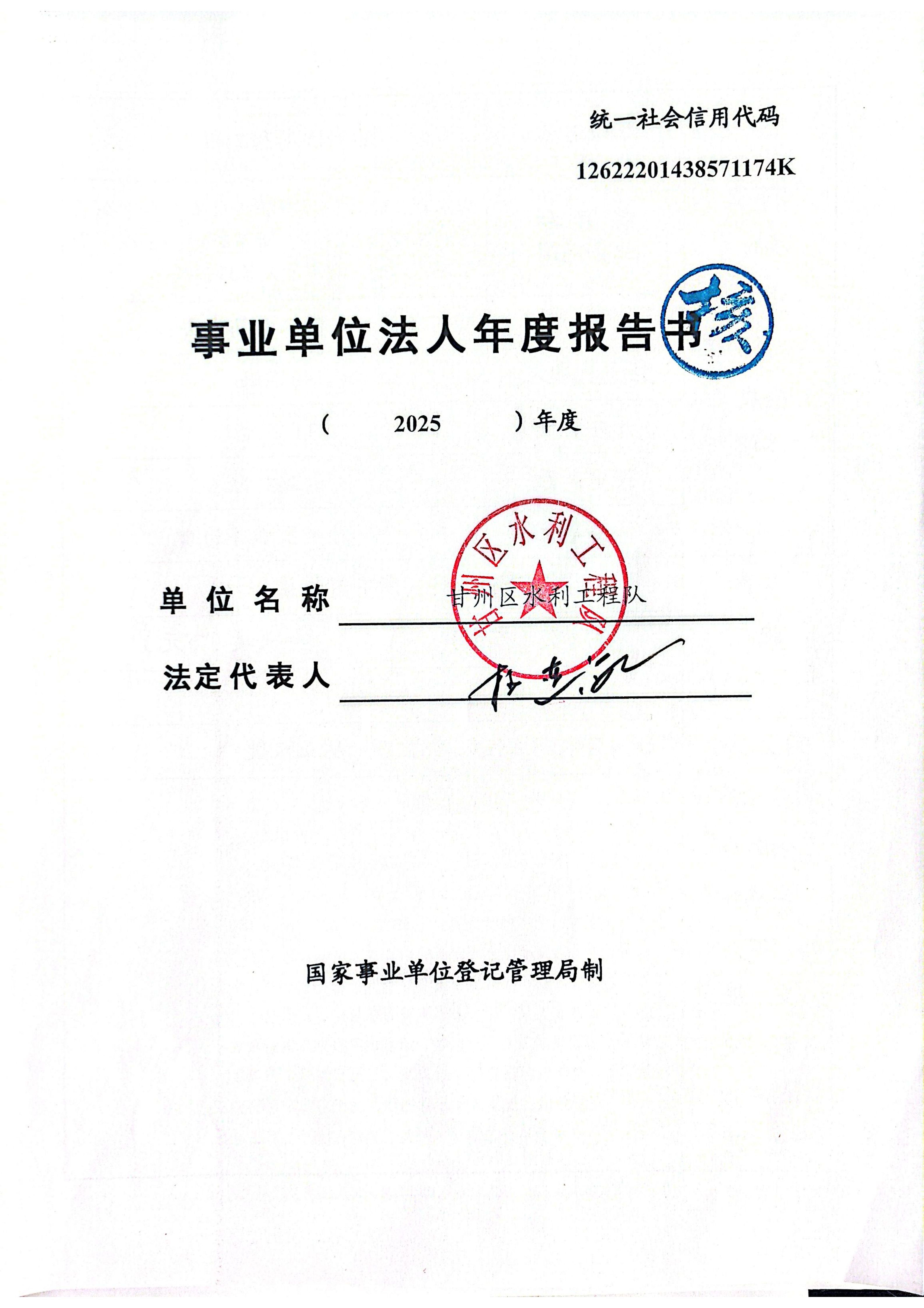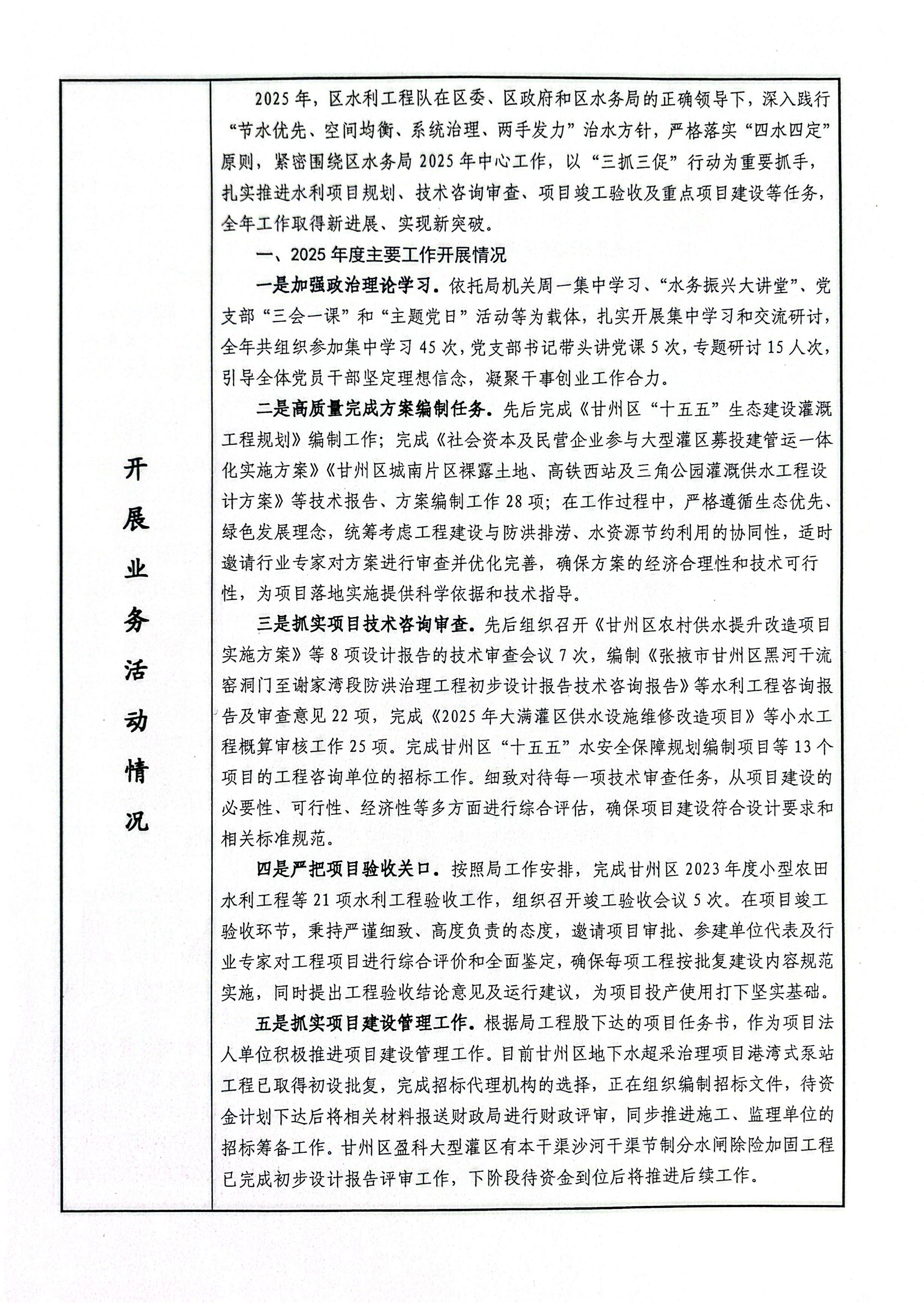 (甘州区水利工程队)2025年事业单位法人年度报告书