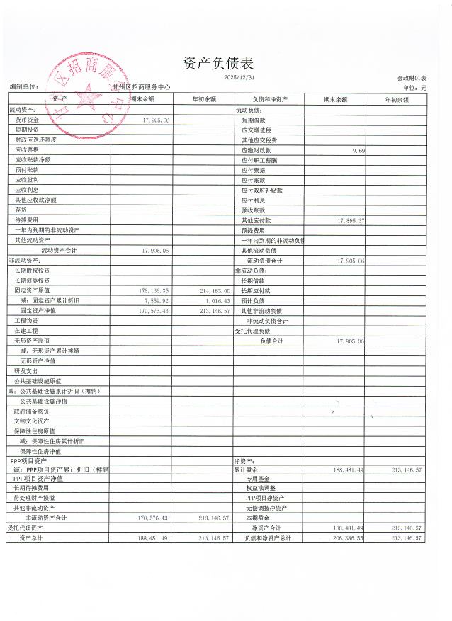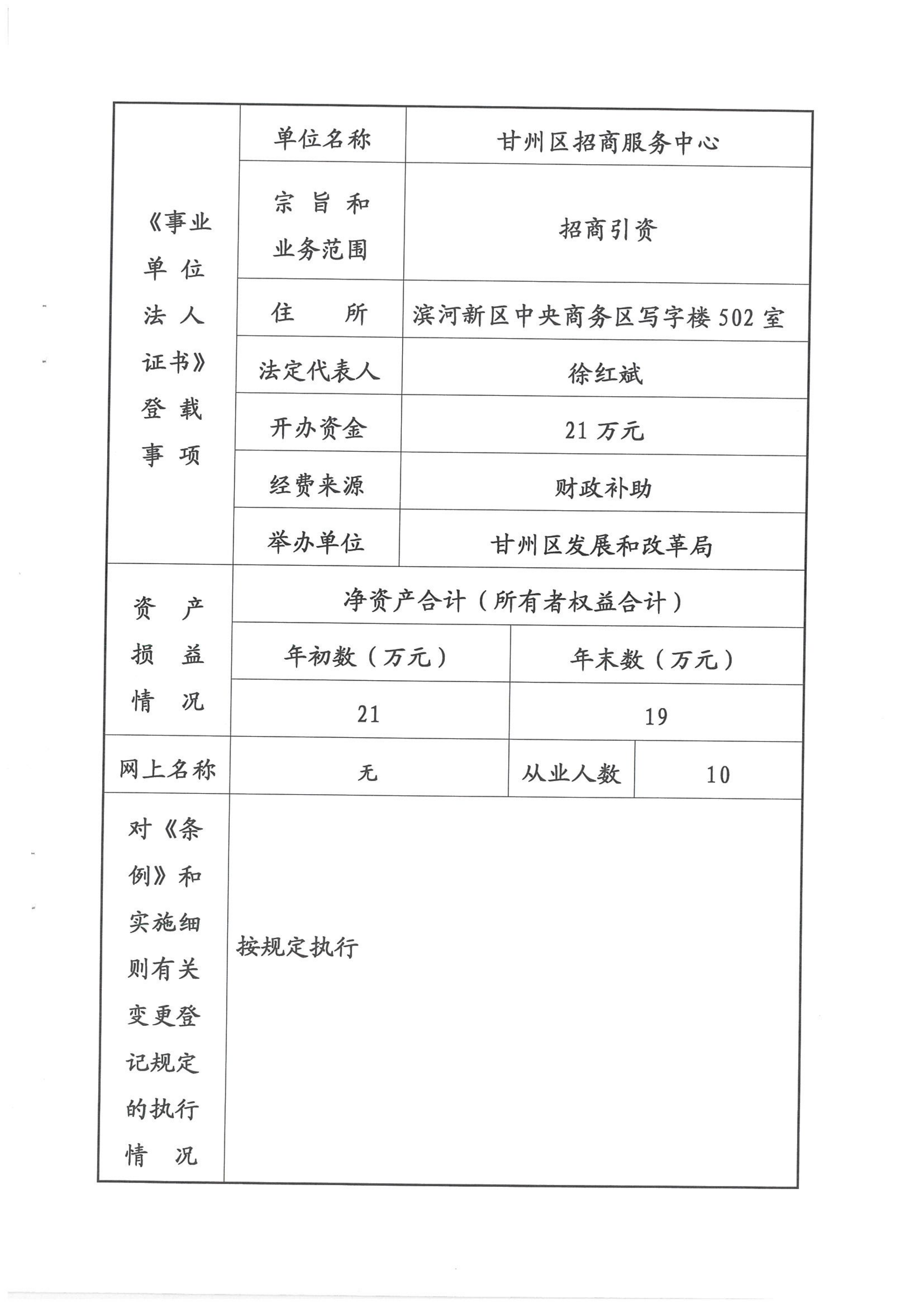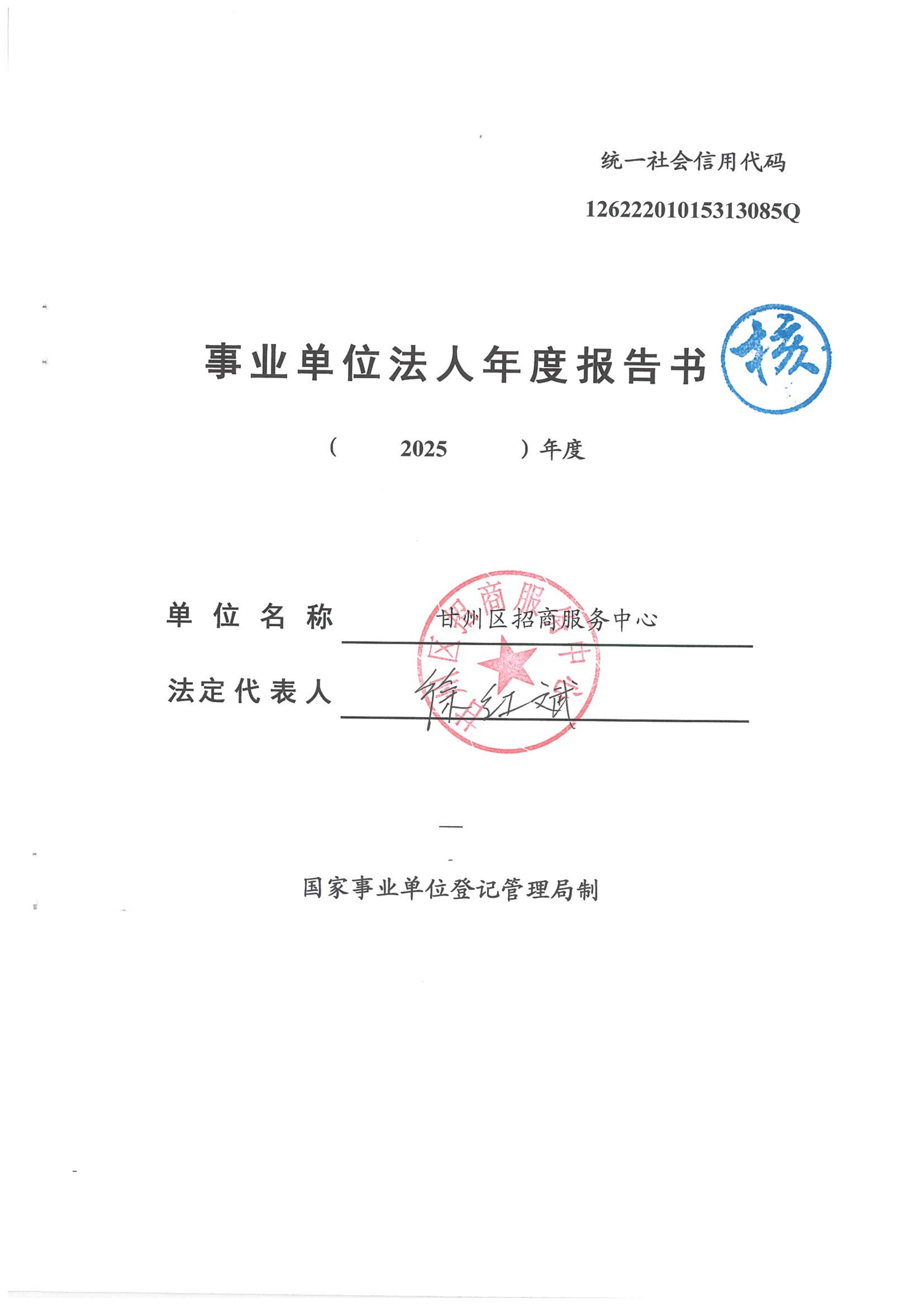 甘州区招商和服务中心事业单位法人年度报告书(2025年度)
