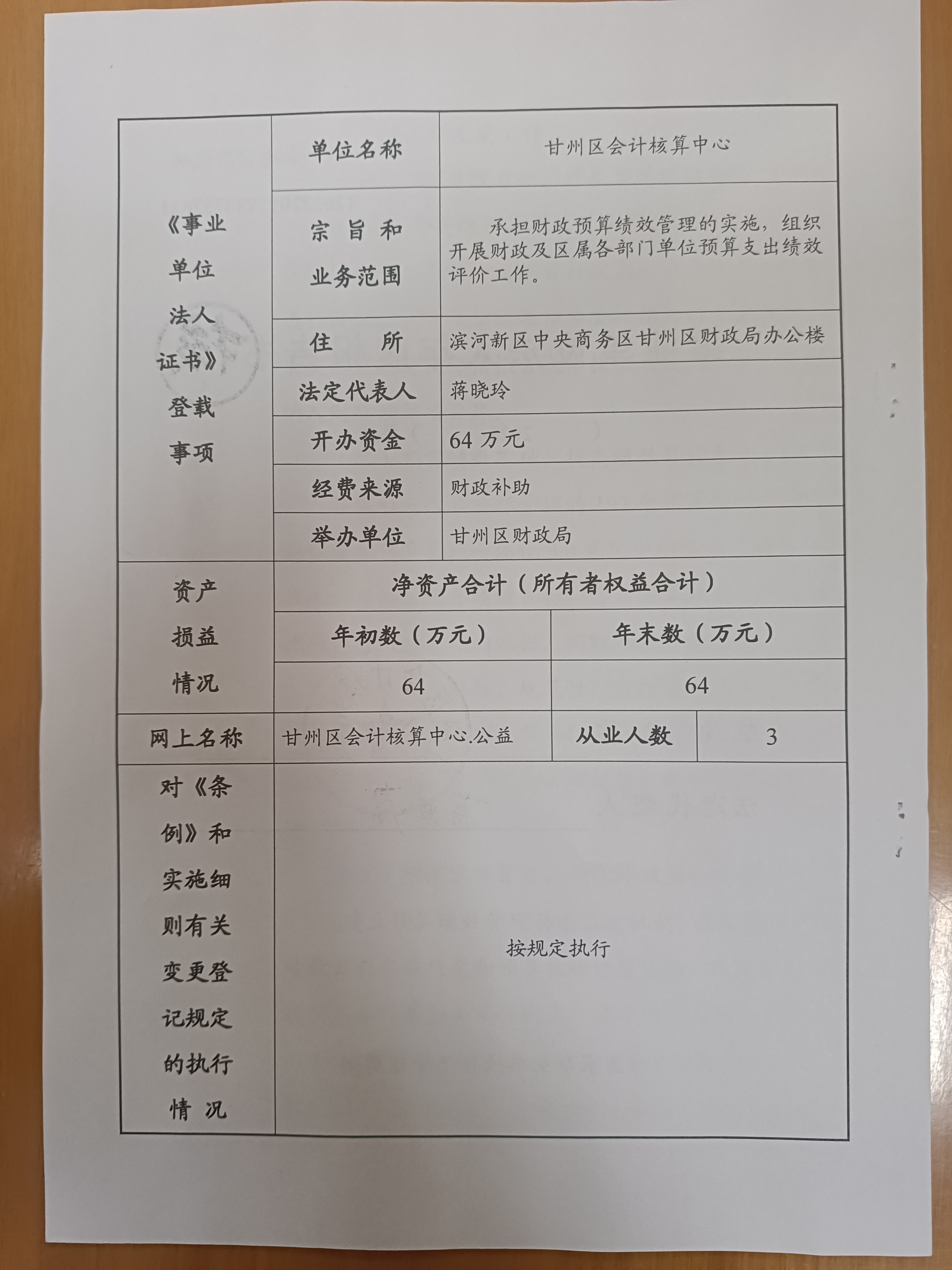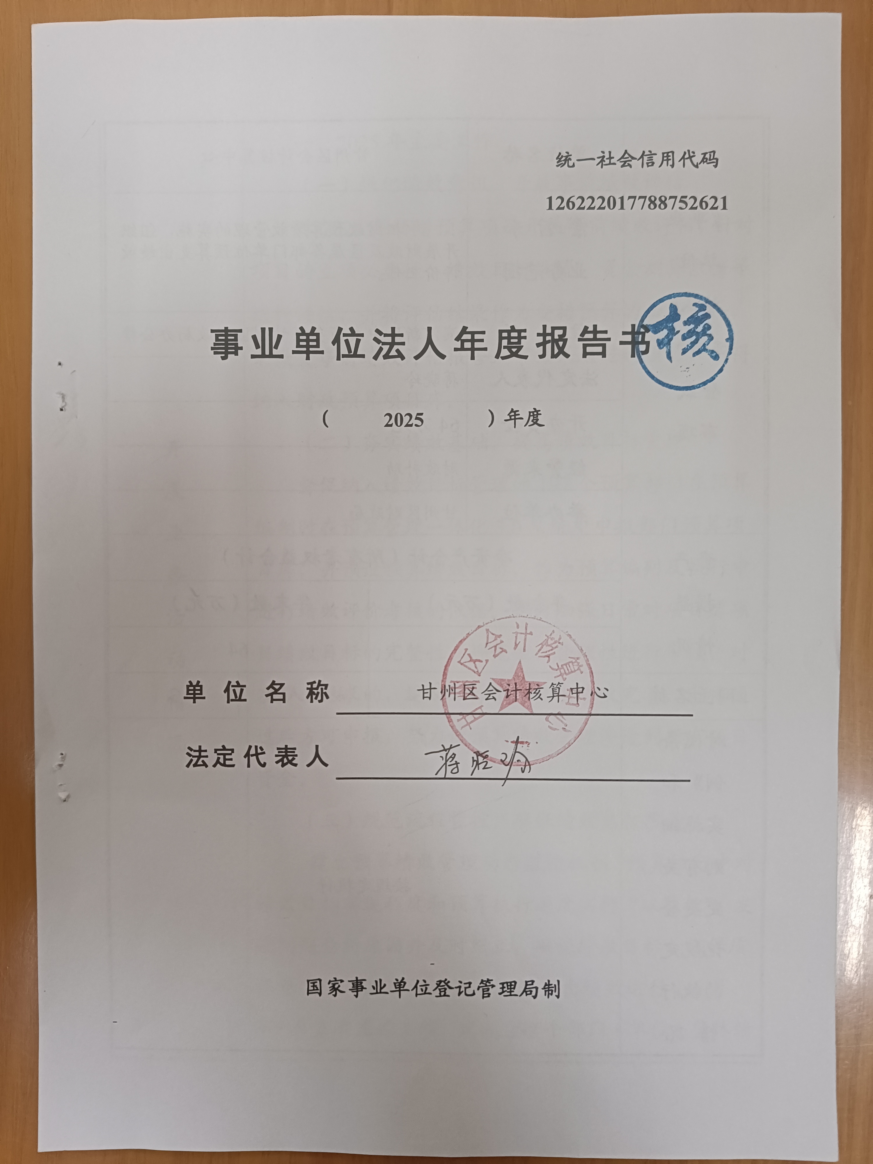 甘州区会计核算中心2025年度事业单位法人年度报告书