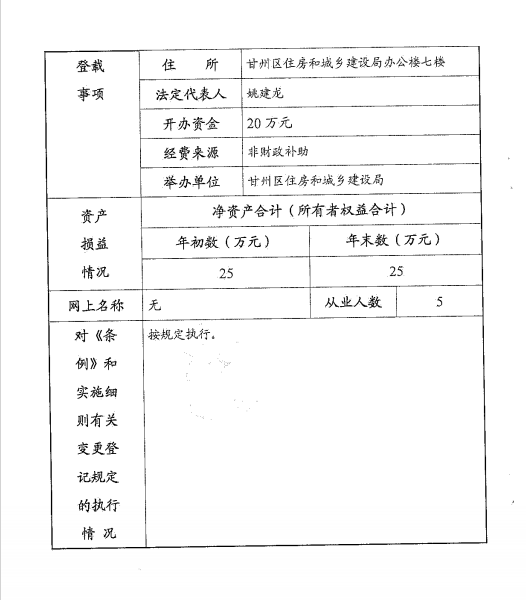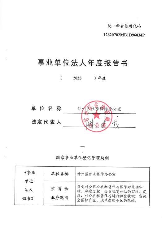 甘州区住房和保障办公室事业单位法人年度报告书