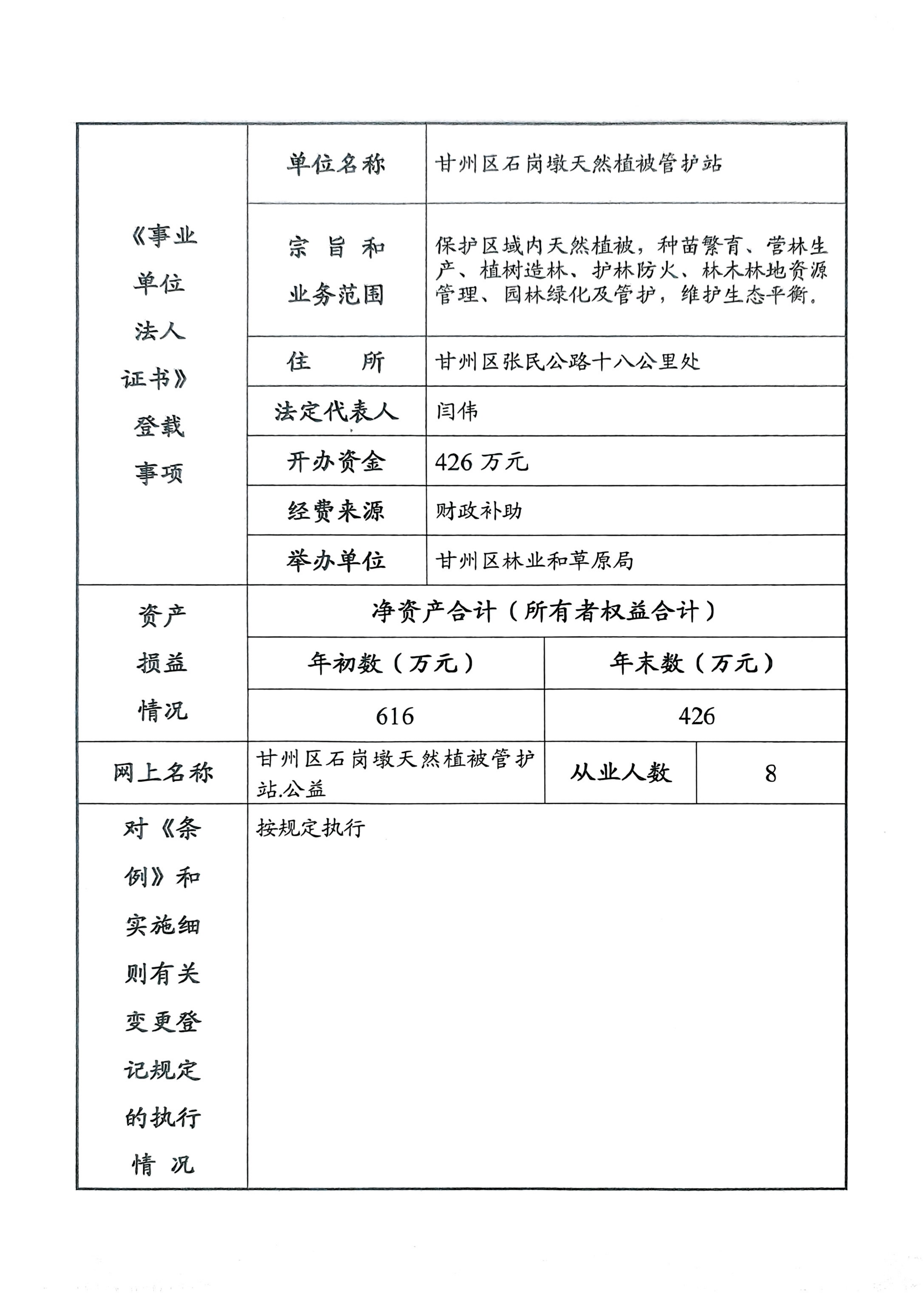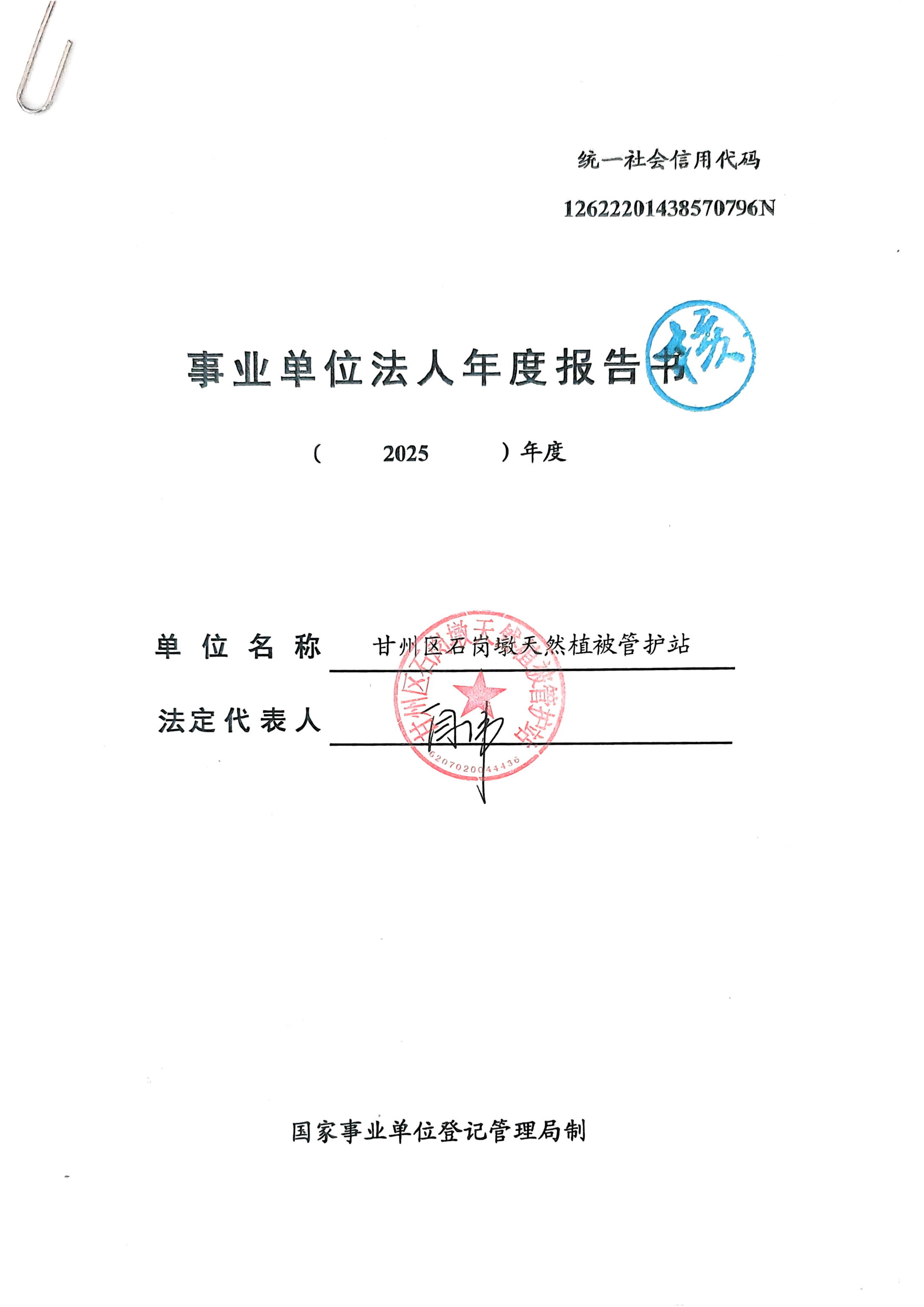 甘州区石岗墩天然植被管护站2025年度事业单位法人年度报告书