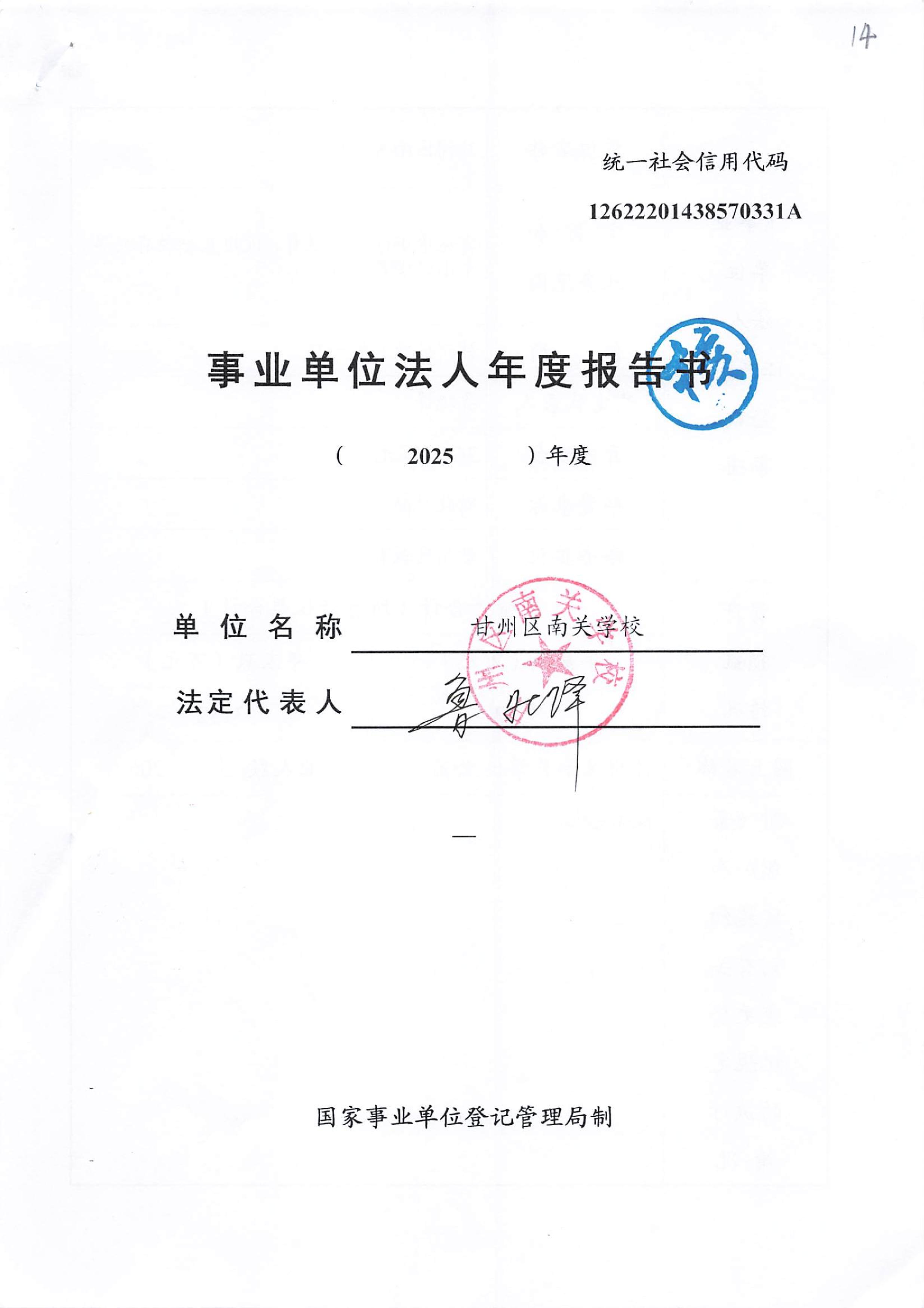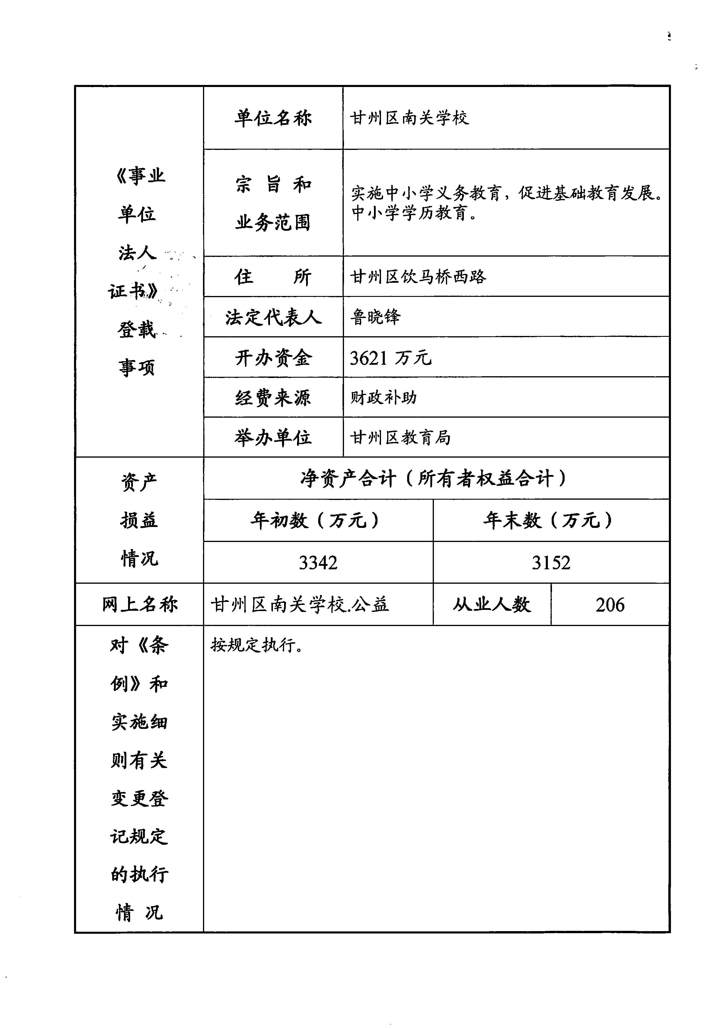甘州区南关学校2025年度事业单位法人年度报告书