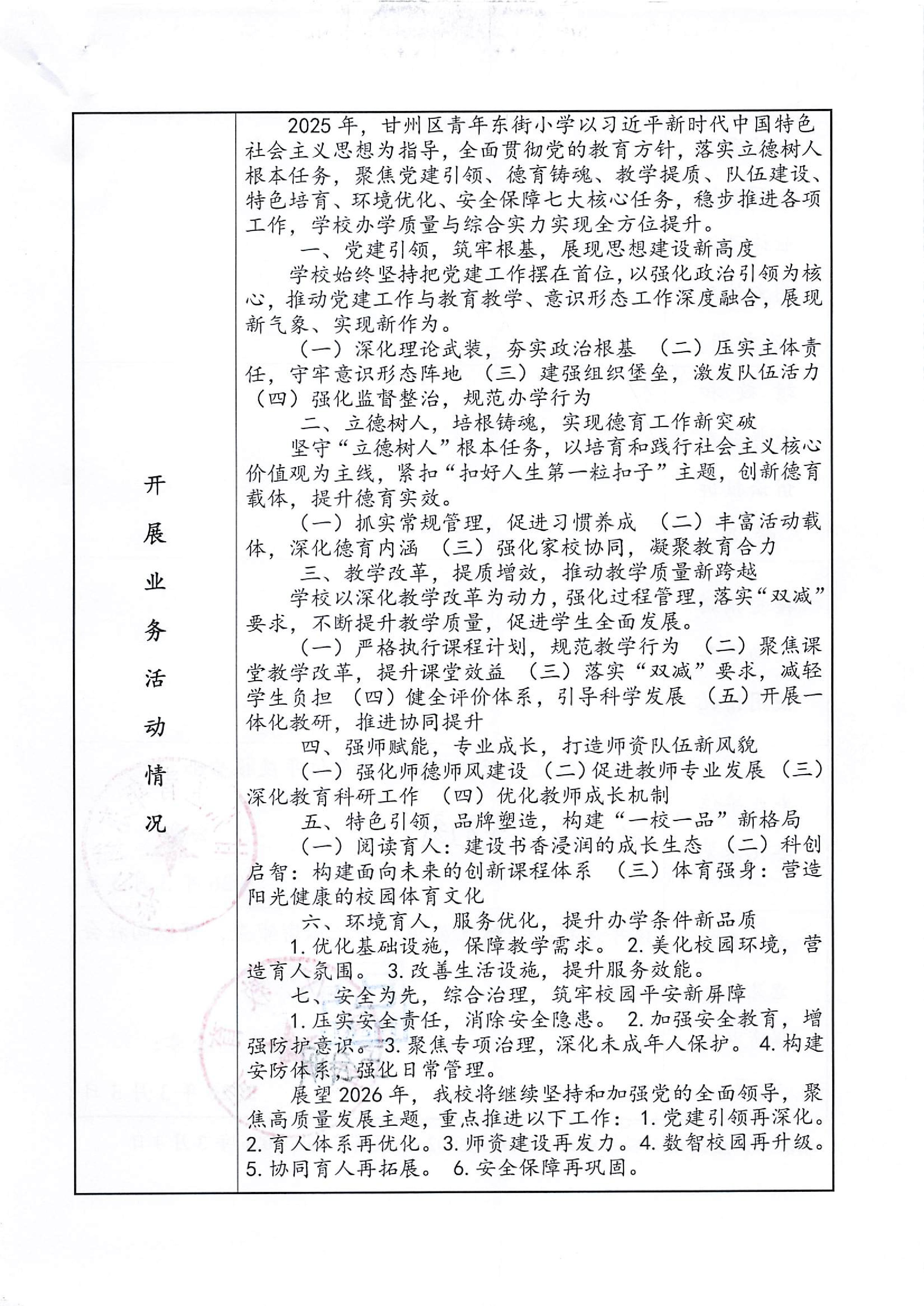 甘州区青年东街小学2025年度事业单位法人年度报告书